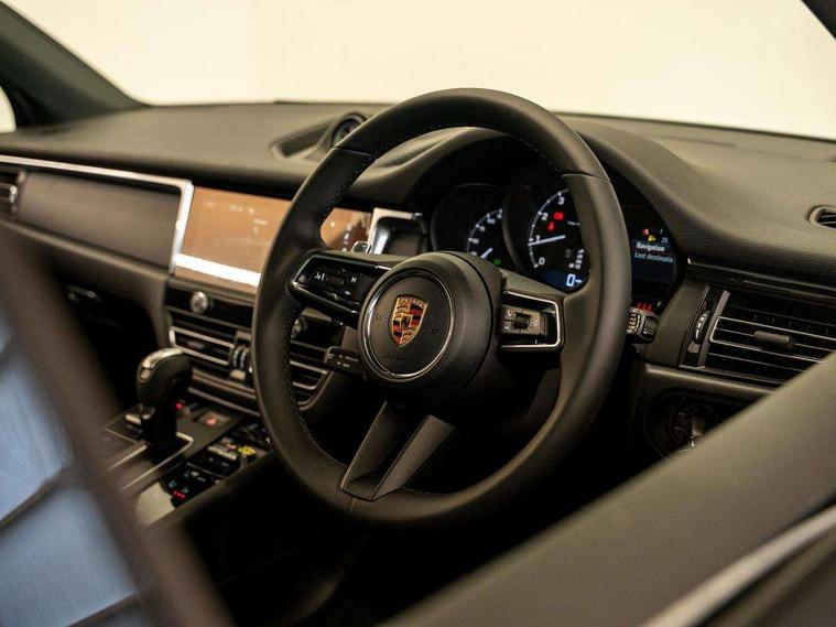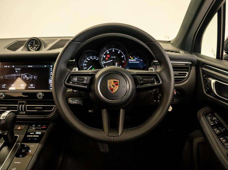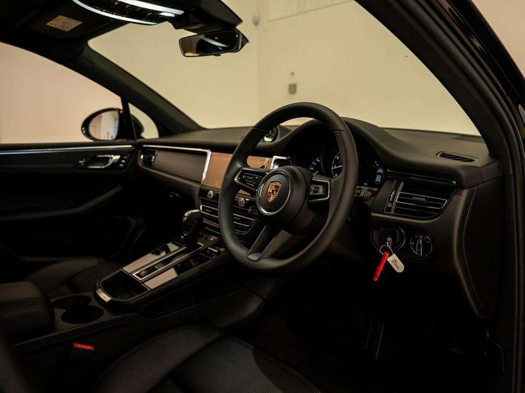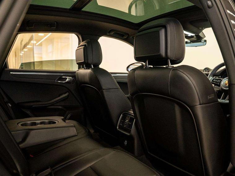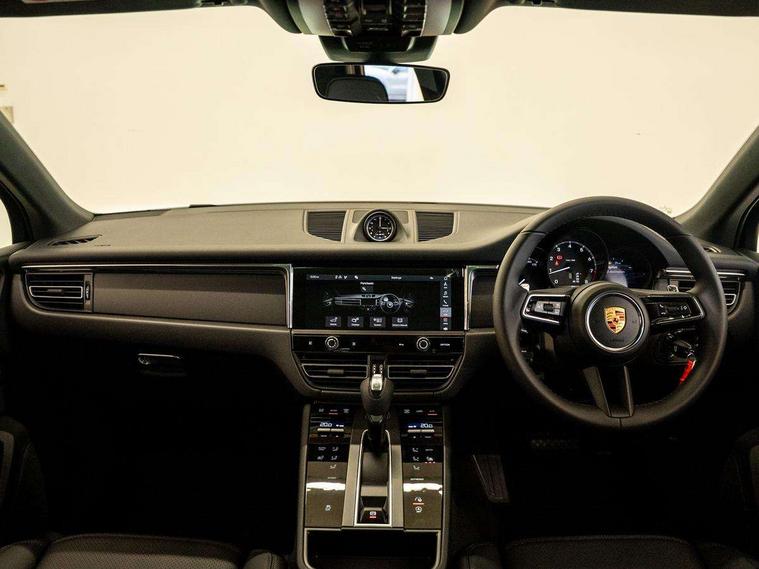 Analogue clock on dashboard, Automatic start/stop system, Automatic tailgate, Cruise control + speed limiter, eCall emergency call system, Instrument cluster with high resolution 4.8-inch TFT display, gear indicator for PDK, service interval display, external temperature indicator, fuel gauge, Off-road button, On board computer, Porsche Communication Management (PCM) including online navigation module, mobile phone preparation, audio interfaces and voice control system, Sports button in centre console, 7-Speed Porsche Doppelkupplung (PDK) with automatic mode and manual controls (gearshift paddles) on steering wheel, Direct fuel injection (DFI), Gasoline particulate filter, VarioCam camshaft control for inlet and exhaust valves, 2 USB sockets in rear centre console, Apple CarPlay with Siri voice recognition, Connect Plus including online navigation, LTE communication module with SIM card reader, wireless internet access, Porsche Car Connect services, DAB Digital radio, Porsche Vehicle Traking System Plus (PVTS Plus), Smartphone compartment with wireless charging, Two USB C charging and connectivity ports in the front centre console storage compartment, Active radiator grille shutters, Automatic headlight activation including welcome home lighting, Bumper system with high strength cross members and two deformation elements + One threaded fixture point for towing eye contained in onboard tool kit, Dynamic cornering lights, speed-sensitive headlight and dynamic range control, adverse weather function, four-point LED daytime running lights, Electric front and rear windows with remote closing function + anti trap + one touch, Electrically folding and heated exterior mirrors, Front light modules with LED position lights and direction indicators, Front windscreen wipers with two speeds, intermittent wipe and rain sensor, Front with integrated cooling air intakes, Fully galvanised body, Heated rear window with automatic switch off, High level 3rd LED brake light integrated into roof spoiler, Loading edge protection in aluminium, Rear side wing doors, Rear window wiper with intermittent function and washer jet, Roof spoiler in high gloss black, Towbar preparation, 3 adjustable rear headrests, 3 rear seats, 3 zone auto climate control separate temperature setting+air recirculation include quality sensor, airflow regulation+AC MAX button+humidity sensor, 4 way adjustable front head restraints, 40:20:40 split folding rear bench seat, Cloth hook b-pillar, Fold up centre console armrest with fore/aft adjustment, Front and rear bottle holders in door panels, Front passenger seat, Glove compartment, Isofix fastening system for child seats on outer rear seats, Luggage compartment cover, Particle/pollen filter with active carbon filter, Rear armrest with 2 cupholders, Storage bin in centre console, Storage compartment in side of luggage compartment and storage compartment in spare wheel recess, Storage pocket in front and rear doors, Two integrated cup holders in front with variable diameter, Two socket 12V power outlets in front console and luggage compartment, Uncovered storage compartment in centre console, Ambient comfort lighting pack - Macan, Lower exterior trim package in black - Macan, 3-point automatic seatbelts with front and outer rear seats pretensioners and force limiter + manually height adjustable seatbelt + reminder warning, Auto hold function, Black painted brake calipers, Child locks on rear doors, Curtain airbags along entire roof frame and side windows from A pillar to the C pillar, Electronic parking brake, Front passenger airbag deactivation facility for installation of child seats indicator in overhead console, Front side airbags integrated into seat, Full size driver and passenger airbags, Internally vented brake discs with diameter of 350mm at front and 330mm at rear, Multi-Collision braking, Porsche hill control (PHC), PTM(Porsche Traction Management) and All-wheel drive with map-controlled multi-plate clutch, Roll over sensor for curtain airbag and seatbelt pretensioners, Side impact protection in doors, Tyre pressure monitoring system, Vehicle stability system, Porsche stability management (PSM) including ABS, ASR, ABD, MSR and trailer stability management, Vented discs brake with 4 piston aluminium monobloc fixed caliper at front, Vented discs brake with combination floating calipers at rear, Alarm system with ultrasonic interior surveillance, Dashcam prep, Engine immobiliser with key transponder, Remote control central locking, Accent trims with silver coloured finish,