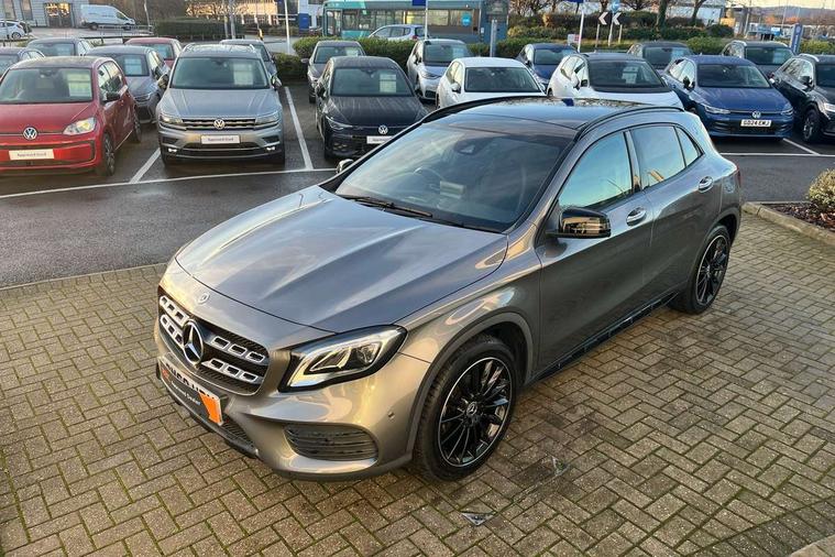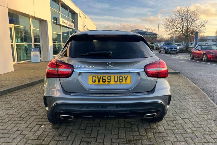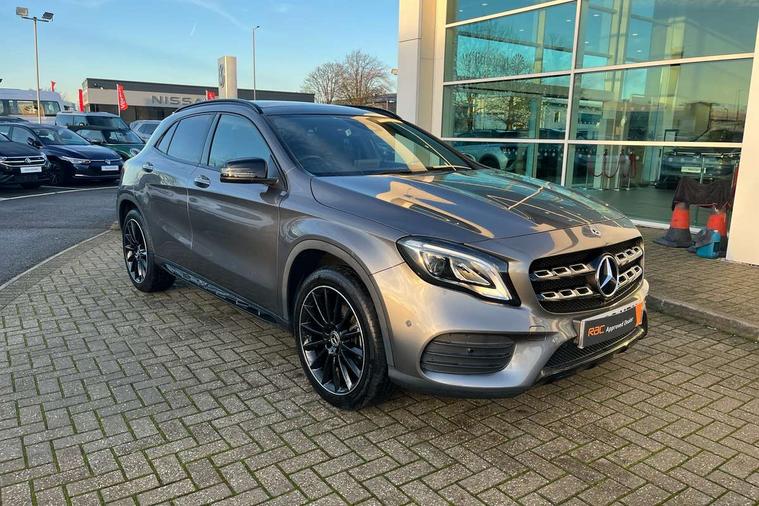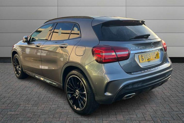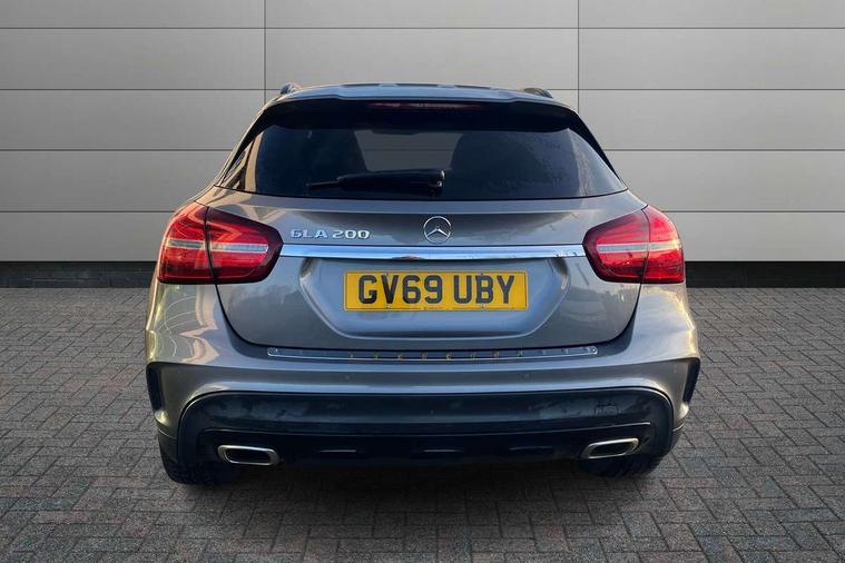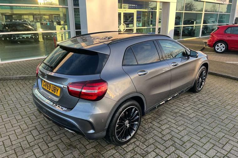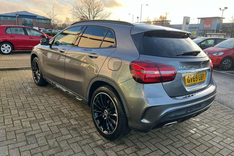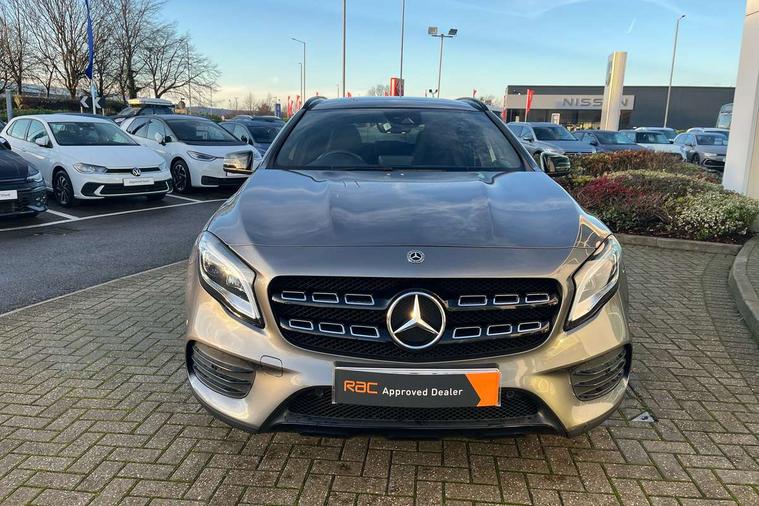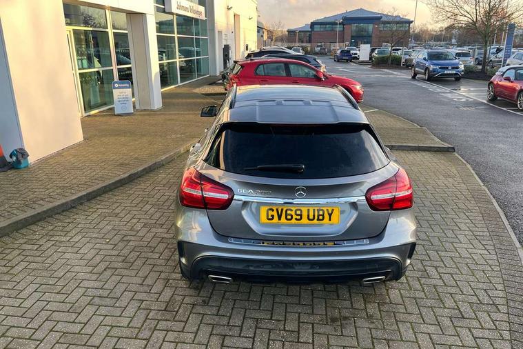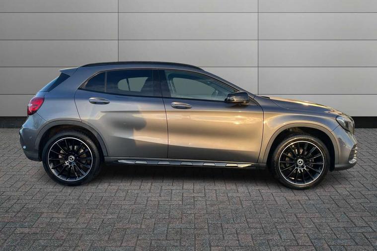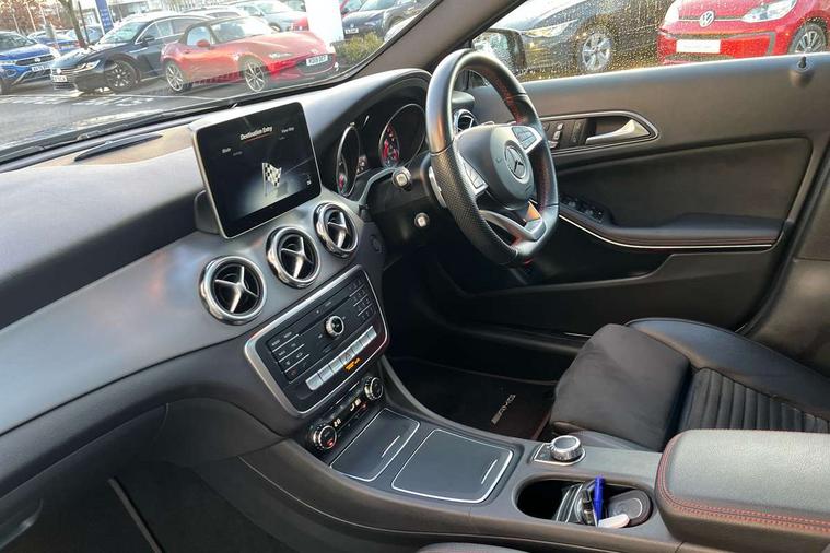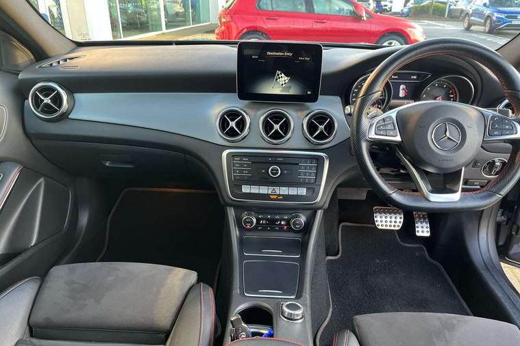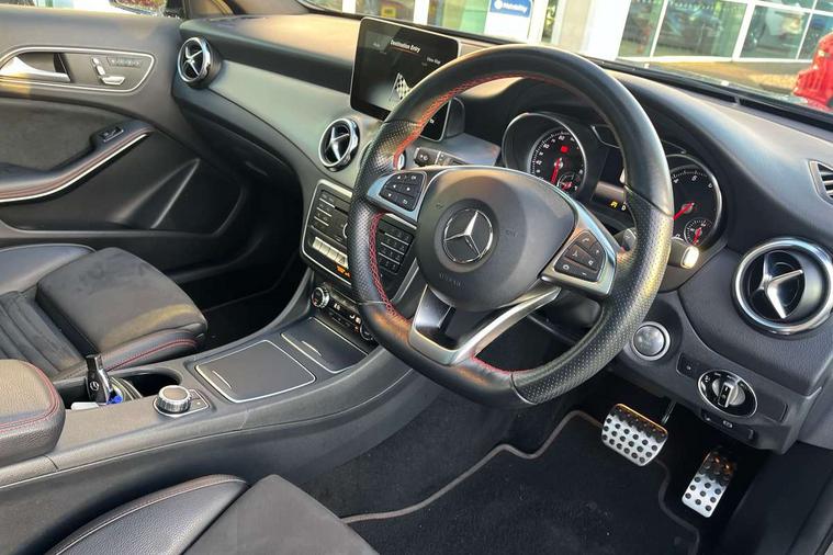 180 degree reversing camera with parking guidelines, 4 analogue dials and needles suspended in six o'clock position, Attention assist, DYNAMIC SELECT with a choice of driving modes (ECO, Comfort, Sport and Individual), Easy-pack tailgate - Powered opening/closing automatically, ECO start/stop function, Fluid level warning indicator for fuel, oil, coolant and washer fluid, Instrument cluster, Mercedes me connect including emergency call system, accident recovery, breakdown management and maintenance, Multi function trip computer, Outside temperature gauge, Parking pilot with front and rear parking sensor and steering assist, Service indicator (ASSYST), Smartphone integration with Apple CarPlay and Android auto, Sports speed sensitive direct steer system with servo assistance, Off road comfort suspension, 8" media display touchpad, Audio 20 radio/single CD/MP3, 6 speakers, telephone keypad, twin radio tuner, Bluetooth, 2 USB ports, SD card slot and Garmin Map pilot nav system, Media interface, Adaptive brake lights, Automatic headlamp activation, Body colour door handles with chrome inserts, Body coloured bumper with front and rear apron trim in matt titanium grey, Chrome beltline strips, Electric front windows, Electrically adjustable and heated door mirrors, Front door sills with Mercedes-Benz lettering, Front fog lights, Full LED tail lamps, Heat insulating dark tinted privacy glass from the B-pillar backwards, Heated glass rear windscreen + timer control, LED High performance headlamps with adaptive highbeam assist, LED third brake light, Panoramic sliding sunroof, Rain sensor windscreen wipers with two sensitivity stages, Rear windscreen intermittent wiper with automatic activation when reversing, Roof mounted radio aerial, Two pipe visible exhaust system with chrome tailpipe tips, 1/3 to 2/3 split folding rear seats, 12 colour Ambient lighting, 12V power socket in centre console, 12V socket in luggage compartment, 3 spoke and 12 button flattened bottom multifunction steering wheel trimmed in nappa leather with perforated leather grip area, Air conditioning - Two zone thermotronic luxury automatic climate control with display, Air vents with chrome surround and cruciform nozzles, Ambient lighting in front headrests, AMG brushed stainless steel sports pedals with rubber studs, AMG floor mats with AMG lettering and stiched edging, Artico man-made leather/Microfibre Dinamica upholstery with red contrast stitching, Auto Mercedes-Benz child seat recognition sensor, Black roof lining, Electrically adjustable front memory seats with four way lumbar support, Front centre armrest with stowage, Front footwell lights, Front seat cushion length adjustment, Gearshift paddles, Heated front seats, Illuminated door sills, Illuminated glove compartment stowage, Interior door handle illumination, Luggage compartment cover, Manually height and reach adjustable steering column, Rear footwell lights, Rear Reading Lamps, Sports seats with integrated head restraints, Stowage compartment beneath load compartment floor, Stowage compartment lighting, Sunvisors with illuminated vanity mirrors, Twin front cup holders, Two outer rear seat isofix and top tether child seat fixing points, White courtesy and red warning lights in front doors and boot lid, Comfort seat pack - GLA Class, Keyless go comfort pack - GLA Class, Mirror pack - GLA Class, 3 rear three point seatbelts, Active bonnet pedestrain safety measure which detects an impact and raises bonnet by 65mm, Active brake assist, Adaptive brake assist with hold function and hill start assist, Anti-lock braking system (ABS), Black seat belts, Childproof locks manually operated for rear doors and electrically operated for rear power windows, Crash responsive emergency lighting, Drivers knee airbag, Dual stage driver and front passenger airbags, Electronic parking brake, Electronic stability programme with acceleration skid control, Front and rear seatbelt reminder, Front passenger seat occupancy sensor, Front side airbags, Tyre pressure monitoring system, Warning triangle and first aid kit, Window airbags, Anti-theft alarm system/interior protection with tow-away protection and interior monitoring systems, Chrome surround electric key, Remote central locking, Light aluminium with longitudinal grain interior trim, Run flat tyres,