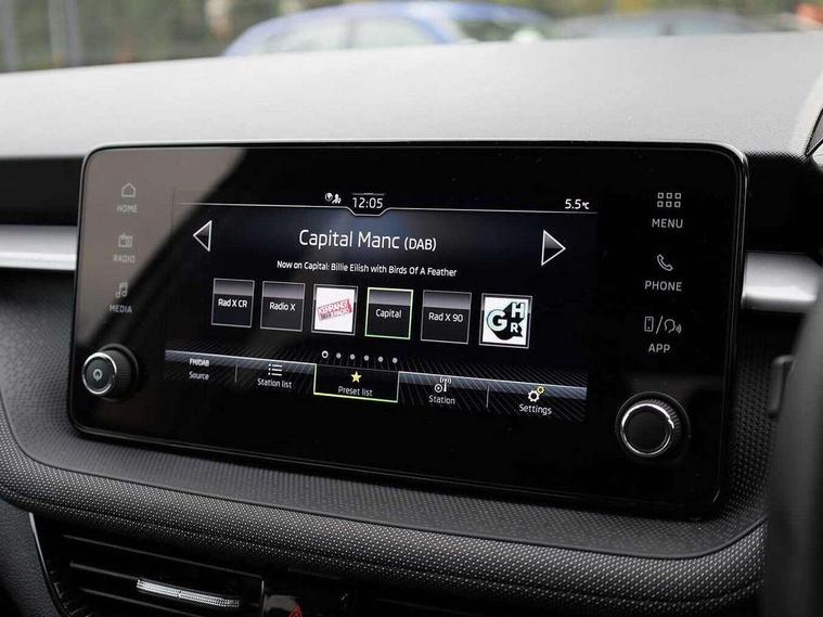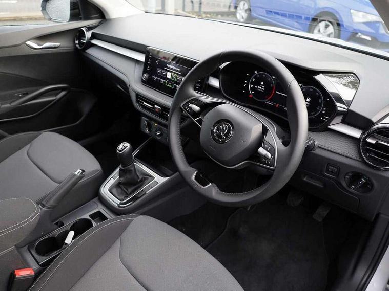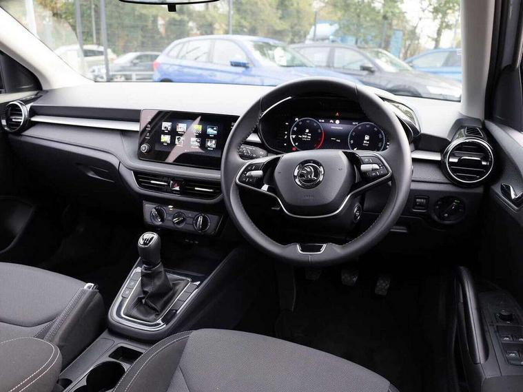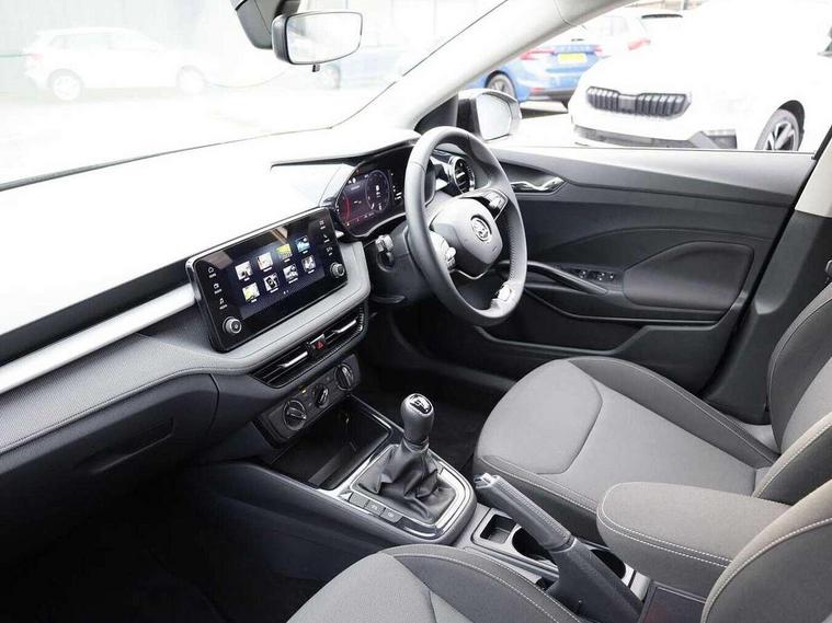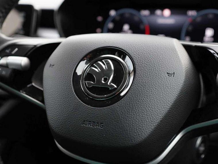 Advanced driver attention and drowsiness monitor, Bluetooth connection, Electromechanical power steering, Exterior temperature gauge, Service interval indicator, Traffic sign recognition, Virtual cockpit with 10.25" colour display, Wireless SmartLink for Apple CarPlay and Android Auto, 6 Speakers (4 in front and 2 in rear), Auxiliary socket for external MP3 player, DAB digital radio reception, Body coloured bumpers, Dimming rear view mirror with black frame, Door mirror integrated indicators, Front and rear electric windows, Front window wiper intermittent control, Headlight range control - Automatic, Ice scraper in fuel cap, LED daytime running lights with coming and leaving home feature, LED rear lights, Privacy glass, Rear LED fog light, Rear side wing doors, Rear window wiper with washing nozzles, Roof mounted spoiler, SKODA tailgate lettering in chrome, Third brake light, 2 reading lights in front and 2 reading lights in rear, 3 rear headrests, Backrest split and folding, Central console with removable cup holder and storage box, Chrome handbrake release button, Fabric upholstery, Front centre armrest, Gearshift knob/handle in leather, Grain satin black interior door handles, Hand brake lever handle in leather, Height adjustable front headrests, Height adjustable steering wheel, ISOFIX and TopTether anchorage points to the outer rear seats, ISOFIX and TopTether on the front passenger seat, Luggage compartment lighting, Manually adjustable lumbar support in front seats, Pollen filter, Rear seat bench unsplit, Single front passenger seat, Storm grey headlining, Sun visors with mirror and airbag label on passenger side, Textile floor mats, Ticket holder, Umbrella in drivers door, 3-point height adjustable front seats belts with pretensioner and force limiter, Automatic warning lights in case of crash, Driver and passengers airbag with switch off function, e-Call+, ESC including ABS, MSR, ASR, EDS, HBA and XDS, Front and rear seat belt warning, FRONT ASSIST (AEB City and AEB Inter Urban), Front side airbags, Head airbags, Hill hold control, One tone horn, Pedestrian protection, Three rear 3-points safety seat belts with pretensioner and force limiter including stop function for outer rear seat belts, Tyre pressure monitoring system, Anti-theft alarm system including immobiliser, interior monitoring, backup horn, and towing protection, Central locking with radio remote control, interior controls, SAFE function and 2 foldable keys, Colour Edition air vents, Grain satin black central console cover, Metallic grey upper decorative trim, Satin black door and side trim panel in front, Textile Kota grey lower decorative inserts, Anti-theft wheel bolts protection, Super-low rolling resistance tyres,