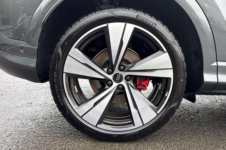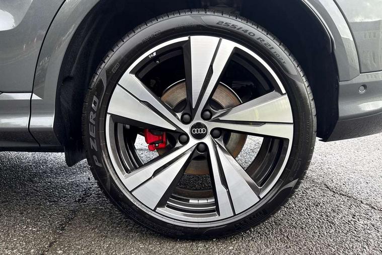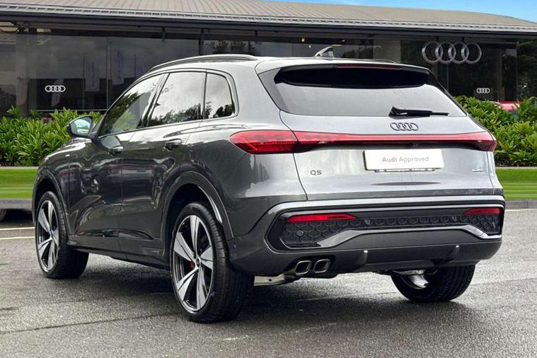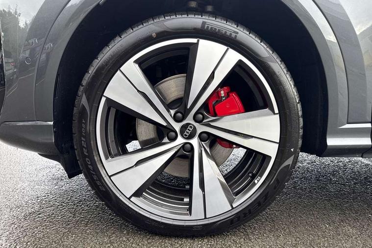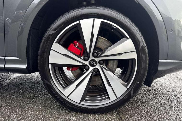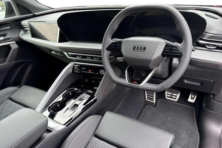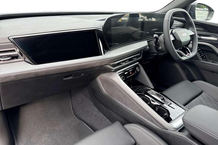 Adaptive cruise control, Advanced driver attention alert, Audi application store, Audi connect emergency call and service, Audi drive select, Audi smartphone interface, Audi virtual cockpit plus with 11.9" OLED colour display, Camera based traffic sign recognition, Fatigue monitor, Front cross traffic intersection assist, Lane change assistant with exit warning system, rear cross traffic alert and rear turn assist, Lane departure warning with emergency assist, MMI 10.9" front passenger touch display, MMI navigation plus with high resolution 14.5" OLED touchscreen colour display, Park assist plus, Parking system plus with 360 display, PAS, Reversing camera, Swerve assist and turn assist, Top view camera, Traffic sign based speed limiter, 2 USB-C ports in both the front and rear, Audi sound system impressive sound with 8 loudspeakers including centre speaker and subwoofer, 6-channel amplifier with a total output of 180 watts, DAB Digital radio, Smartphone compartment with wireless charging, Active digital light signatures - Six additional combinations of active daytime running light signature, Auto dimming rear view mirror, Black roof rails, Coming/leaving home lighting function, Electrically adjustable heated and folding + automatically dimming exterior mirrors, Exhaust tailpipes in dark chrome, Front and rear electric windows, Front door sill trims with aluminium inlays, illuminated with 'S' logo, Full body paint finish, Grill frame, inlay and front air inlets in matt anthracite chrome, Headlight cleaning system, Heated rear window, High beam assist, High gloss window surrounds, LED rear lights pro incl. dynamic rear indicators and illuminated light strip with animated coming and leaving home function, Logo projection light in exterior mirrors, Matrix LED headlights, Memory function for door mirrors, Privacy glass, Projection third brake light for rear window in LED, Radiator grille in phantom black, Rear and side windows with heat insulating glass, Rear honeycombe grille in matt black with inlay in matt anthracite chrome, Rear side wing doors, Rear wash/wipe, S Line badge on the front wings, Towbar preparation, Windscreen with acoustic glazing, 3 rear head restraints, 3 seat bench in 2nd row, 3 spoke leather steering wheel with multi-function buttons with touch control, flattened on top and bottom, with S badging and contrast stitching, 4 way electric lumbar support for driver and front passenger, 40:20:40 split folding rear seat bench with centre armrest and cup holders, Comfort centre armrest, Deluxe 3 zone electronic climate control, Dinamica microfiber/leather upholstery with diamond stitching, Electrically adjustable front seats with memory function for driver's side, Front and rear floor mats, Front sport seats with integrated head restraints, Headlining in black cloth, Heated front seats, i-Size child seat mounting on the front passenger side and outer rear seats, i-Size and top tether on the outer rear seats, Interior trim in aluminium look, Luggage compartment lid, electrically opening and closing, Manual steering column adjustment, S embossed logo on front sport seats, Single front passenger seat, Softwrap in Dinamica, Stainless steel pedals and footrest, Steering wheel grips in perforated leather and shift paddles, Ambient lighting package plus - Q5, Black styling package plus - Q5, Storage and luggage compartment pack - Q5, 3x3 point rear seatbelts, ABS, Acoustic vehicle alerting system, Convenience key with safelock, Driver and front passenger airbag with passenger airbag deactivation, Electric child safety locks, First aid kit with warning triangle and high visibility vests, Front emergency brake assist, Front side airbags with head airbag system and front interaction airbag, Hill hold assist, Occupant detection in rear seat area, Proactive passenger protection system for front, sides and rear, Red brake calipers, Side airbags in front and rear with head airbag system and front interaction airbag, Tyre pressure loss indicator, Anti theft alarm, Anti-theft wheel bolts, Remote control key with SAFELOCK and keyless go, Accent surfaces and control buttons in gloss black, Black dashboard with contrast stitching, Steel grey seat stitching, Upper and lower interior elements in dinamica microfiber, Tyre repair kit,