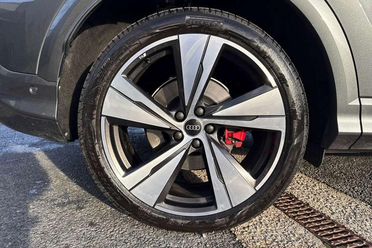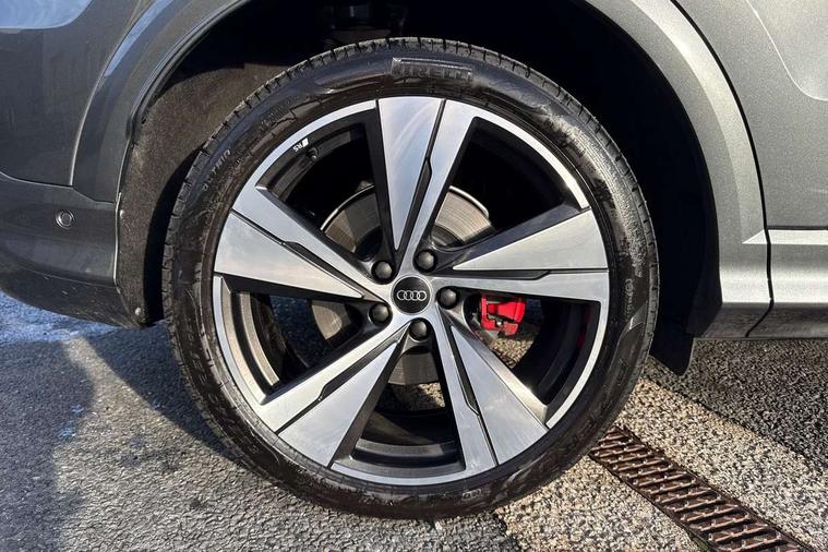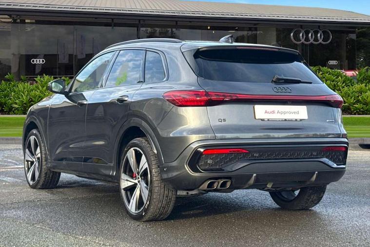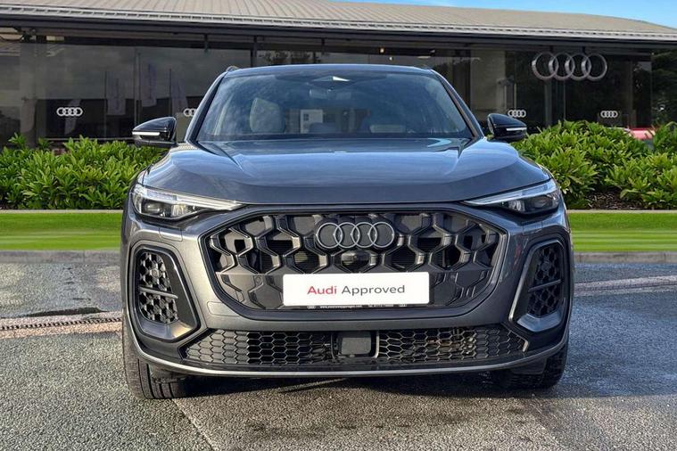 Adaptive cruise control, Advanced driver attention alert, Audi application store, Audi connect emergency call and service, Audi drive select, Audi smartphone interface, Audi virtual cockpit plus with 11.9" OLED colour display, Camera based traffic sign recognition, Fatigue monitor, Front cross traffic intersection assist, Lane change assistant with exit warning system, rear cross traffic alert and rear turn assist, Lane departure warning with emergency assist, MMI 10.9" front passenger touch display, MMI navigation plus with high resolution 14.5" OLED touchscreen colour display, Park assist plus, Parking system plus with 360 display, PAS, Reversing camera, Swerve assist and turn assist, Top view camera, Traffic sign based speed limiter, 2 USB-C ports in both the front and rear, Audi sound system impressive sound with 8 loudspeakers including centre speaker and subwoofer, 6-channel amplifier with a total output of 180 watts, DAB Digital radio, Smartphone compartment with wireless charging, Active digital light signatures - Six additional combinations of active daytime running light signature, Auto dimming rear view mirror, Black roof rails, Coming/leaving home lighting function, Electrically adjustable heated and folding + automatically dimming exterior mirrors, Exhaust tailpipes in dark chrome, Front and rear electric windows, Front door sill trims with aluminium inlays, illuminated with 'S' logo, Full body paint finish, Grill frame, inlay and front air inlets in matt anthracite chrome, Headlight cleaning system, Heated rear window, High beam assist, High gloss window surrounds, LED rear lights pro incl. dynamic rear indicators and illuminated light strip with animated coming and leaving home function, Logo projection light in exterior mirrors, Matrix LED headlights, Memory function for door mirrors, Privacy glass, Projection third brake light for rear window in LED, Radiator grille in phantom black, Rear and side windows with heat insulating glass, Rear honeycombe grille in matt black with inlay in matt anthracite chrome, Rear side wing doors, Rear wash/wipe, S Line badge on the front wings, Towbar preparation, Windscreen with acoustic glazing, 3 rear head restraints, 3 seat bench in 2nd row, 3 spoke leather steering wheel with multi-function buttons with touch control, flattened on top and bottom, with S badging and contrast stitching, 4 way electric lumbar support for driver and front passenger, 40:20:40 split folding rear seat bench with centre armrest and cup holders, Comfort centre armrest, Deluxe 3 zone electronic climate control, Dinamica microfiber/leather upholstery with diamond stitching, Electrically adjustable front seats with memory function for driver's side, Front and rear floor mats, Front sport seats with integrated head restraints, Headlining in black cloth, Heated front seats, i-Size child seat mounting on the front passenger side and outer rear seats, i-Size and top tether on the outer rear seats, Interior trim in aluminium look, Luggage compartment lid, electrically opening and closing, Manual steering column adjustment, S embossed logo on front sport seats, Single front passenger seat, Softwrap in Dinamica, Stainless steel pedals and footrest, Steering wheel grips in perforated leather and shift paddles, Ambient lighting package plus - Q5, Black styling package plus - Q5, Storage and luggage compartment pack - Q5, 3x3 point rear seatbelts, ABS, Acoustic vehicle alerting system, Convenience key with safelock, Driver and front passenger airbag with passenger airbag deactivation, Electric child safety locks, First aid kit with warning triangle and high visibility vests, Front emergency brake assist, Front side airbags with head airbag system and front interaction airbag, Hill hold assist, Occupant detection in rear seat area, Proactive passenger protection system for front, sides and rear, Red brake calipers, Side airbags in front and rear with head airbag system and front interaction airbag, Tyre pressure loss indicator, Anti theft alarm, Anti-theft wheel bolts, Remote control key with SAFELOCK and keyless go, Accent surfaces and control buttons in gloss black, Black dashboard with contrast stitching, Steel grey seat stitching, Upper and lower interior elements in dinamica microfiber, Tyre repair kit,