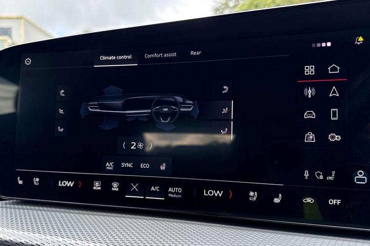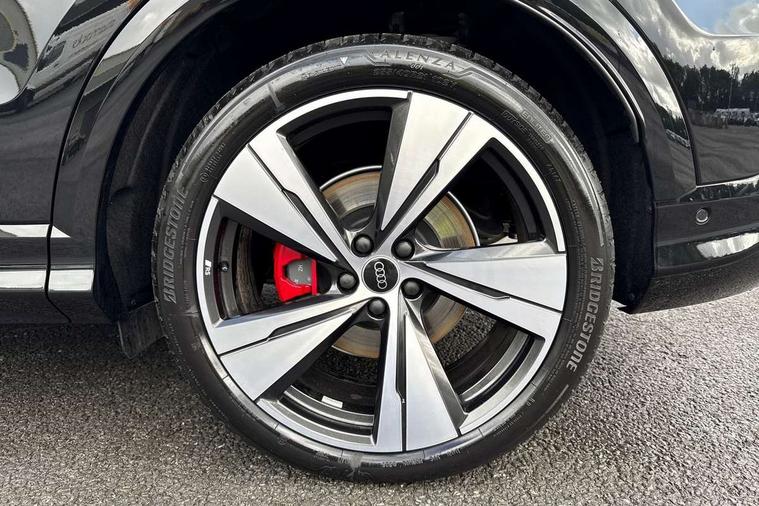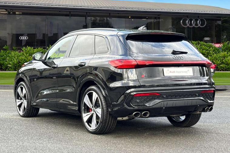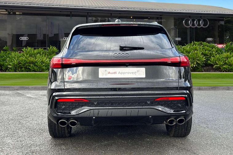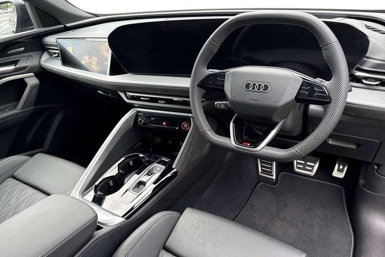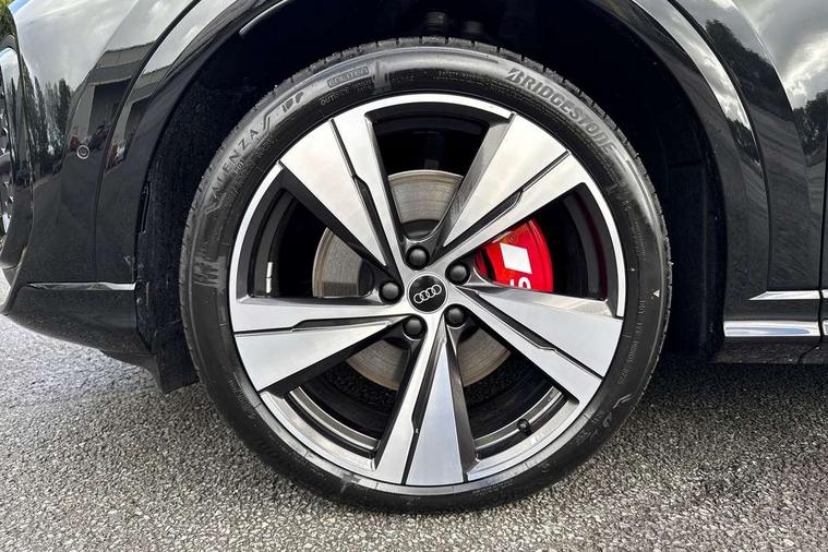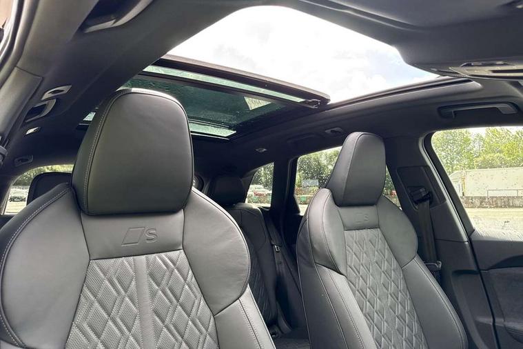 Adaptive cruise assist plus with steering intervention, Advanced driver attention alert, Audi application store, Audi connect emergency call and service, Audi digital key, Audi drive select, Audi smartphone interface, Audi virtual cockpit plus with 11.9" OLED colour display, Camera based traffic sign recognition, Fatigue monitor, Front cross traffic intersection assist, Garage door opener, Lane change assistant with exit warning system, rear cross traffic alert and rear turn assist, Lane departure warning with emergency assist, MMI 10.9" front passenger touch display, MMI navigation plus with high resolution 14.5" OLED touchscreen colour display, Park assist plus, Parking system plus with 360 display, PAS, Reversing camera, Swerve assist and turn assist, Top view camera, Traffic sign based speed limiter, S adaptive air suspension, 2 USB-C ports in both the front and rear, DAB Digital radio, Smartphone compartment with wireless charging, Acoustic glass for front door windows, Active digital light signatures - Six additional combinations of active daytime running light signature, Auto dimming rear view mirror, Coming/leaving home lighting function, Digital OLED tail lights including communication light, Electrically adjustable heated and folding + automatically dimming exterior mirrors, Exhaust tailpipes in dark chrome, Front and rear electric windows, Front door sill trims with aluminium inlays, illuminated with 'S' logo, Full body paint finish, Grill frame, inlay and front air inlets in matt anthracite chrome, Headlight cleaning system, Heated rear window, High beam assist, High gloss window surrounds, Logo projection light in exterior mirrors, Matrix LED headlights, Memory function for door mirrors, Privacy glass, Projection third brake light for rear window in LED, Radiator grille in phantom black, Rear and side windows with heat insulating glass, Rear honeycombe grille in matt black with inlay in matt anthracite chrome, Rear side wing doors, Rear wash/wipe, Red S rhombus badging with 'S' lettering on rear, S exterior styling, Towbar preparation, Windscreen with acoustic glazing, 3 rear head restraints, 3 seat bench in 2nd row, 3 spoke leather steering wheel with multi-function buttons with touch control, flattened on top and bottom, with S badging and contrast stitching, 40:20:40 split folding rear seat bench with centre armrest and cup holders, Comfort centre armrest, Deluxe 3 zone electronic climate control, Electric steering wheel adjustment, Electrically adjustable front seats with memory function for driver's side, Front and rear floor mats, Front seat ventilation, Front sport seats with integrated head restraints, Headlining in black cloth, Heated front seats, Heated outer rear seats, Heated steering wheel, i-Size child seat mounting on the front passenger side and outer rear seats, i-Size and top tether on the outer rear seats, Increased charging capacity for USB ports 2X100 Watts in rear, 2X60 Watts in front, Interior trim in aluminium look, Luggage compartment lid, electrically opening and closing, Perforated fine nappa leather with diamond stitching incl ventilation and massage function for front seats, Pneumatically adjustable lumbar support with massage function for front seats, S embossed logo on front sport seats, Single front passenger seat, Softwrap in Dinamica, Stainless steel pedals and footrest, Steering wheel grips in perforated leather and shift paddles, Ambient lighting package plus - Q5, Black styling package plus - Q5, Sound and Vision pack - Q5, Storage and luggage compartment pack - Q5, 3x3 point rear seatbelts, ABS, Acoustic vehicle alerting system, Convenience key with safelock, Driver and front passenger airbag with passenger airbag deactivation, Electric child safety locks, First aid kit with warning triangle and high visibility vests, Front emergency brake assist, Front side airbags with head airbag system and front interaction airbag, Hill hold assist, Occupant detection in rear seat area, Proactive passenger protection system for front, sides and rear, Red brake calipers, Side airbags in front and rear with head airbag system and front interaction airbag, Tyre pressure loss indicator, Anti theft alarm, Anti-theft wheel bolts, Remote control key with SAFELOCK and keyless go, Accent surfaces and control buttons in gloss black, Black dashboard with contrast stitching, Steel grey seat stitching, Upper and lower interior elements in dinamica microfiber, Tyre repair kit,