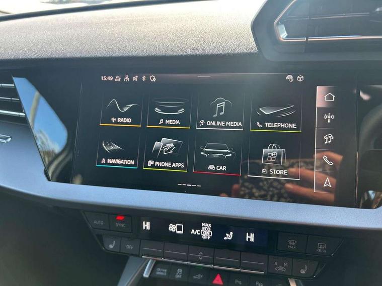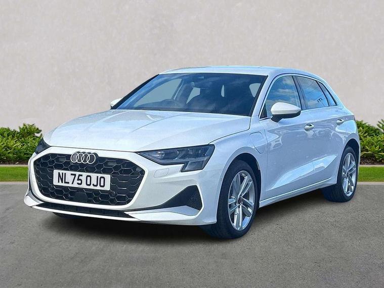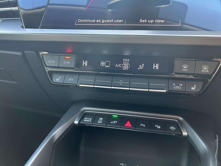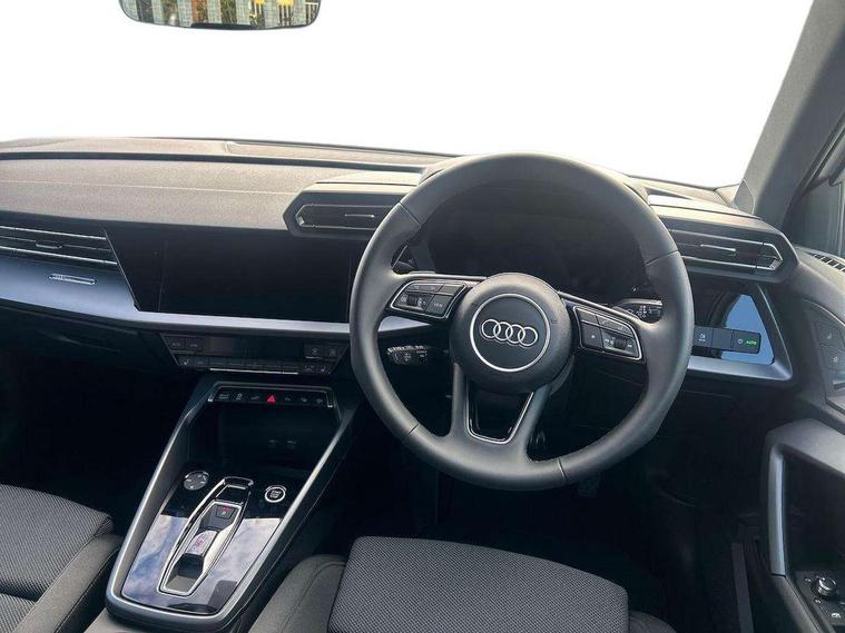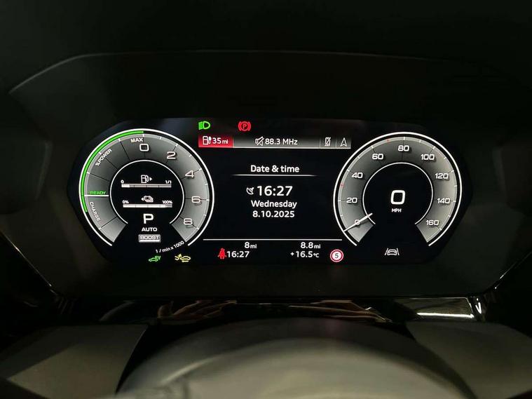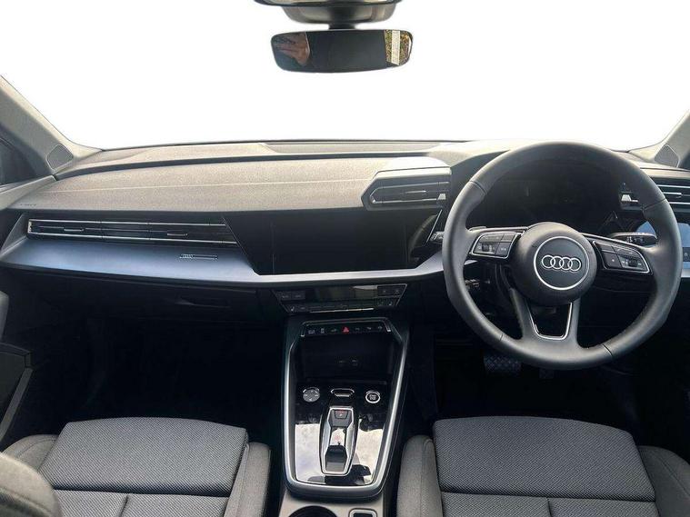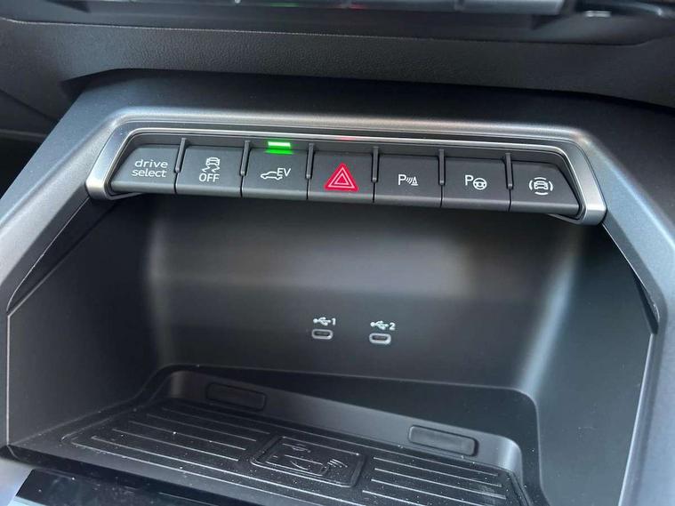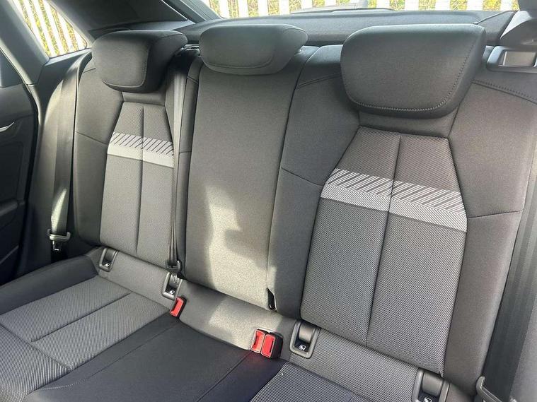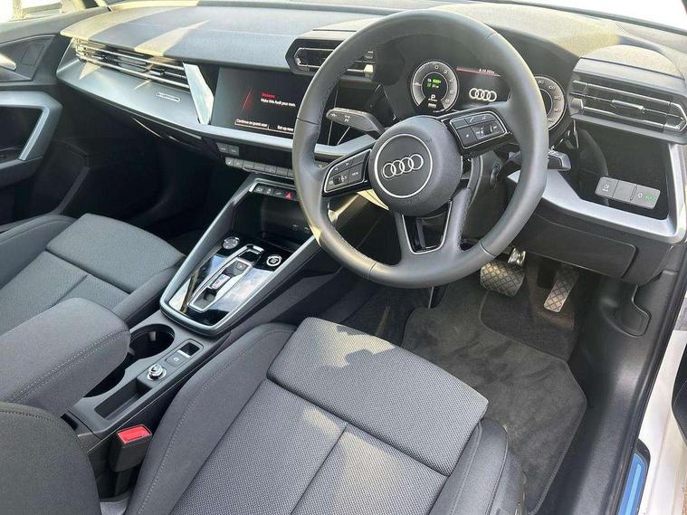 Adjustable speed limiter, Audi drive select, Audi smartphone interface with app store includes wireless Apple carplay, Android auto and Amazon alexa integration, Audi virtual cockpit plus - 12.3" full HD resolution dynamic digital instrument cluster, Automatic start/stop system with recuperation, Bluetooth interface, Camera based traffic sign recognition, Collision avoidance assistant, Cruise control, Distraction and Fatigue warning, e-Call (emergency call), Electromechanical power speed sensitive steering, Emergency assist, Lane departure warning system, MMI Navigation Plus with high resolution 10.1" colour touch screen display, Park Assist with parking system Plus, Service indicator, Trip computer, Voice control system with natural language interaction, 3 pin 10 amp domestic charging cable, CCS socket for DC charging, Charging cable for public charging, mode 3 (type 2), 32 A, Compact charging system, Industrial connector CEE 32 A, 230 V, length 1.6 m, Standard suspension, Type 2 socket for AC charging, Audi Phonebox light with wireless charging, Audi sound system - 10 loudspeakers including centre loudspeaker and subwoofer, DAB Digital radio, USB ports with charging function in the rear, 3rd brake light, Acoustic glass windscreen, Aluminium window trim, Auto dimming frameless rear view mirror, Body colour exterior mirrors, Body colour roof spoiler, Dipped beam, main beam, position light and turning light, Electrically adjustable/heated/folding/auto dimming door mirrors with integrated LED indications + kerb view function for passenger side, Exterior model badging, Front electric windows, Front radiator grill in high gloss dark chrome, Front side air inlets in grained matt black with silver frame, Heat insulating glass windscreen, LED daytime running lights, LED headlights and halogen rear lights, Light and rain sensors, Rear diffuser and grill in grained matt black with silver frame, Rear electric windows, Rear side wing doors, Rear window, rear door windows and rear side windows in clear glass, Rear wiper, 12V socket and storage compartment in front centre console, 3 seat bench in 2nd row, 3 spoke leather multifunction steering wheel with gear shift paddles, 3-zone deluxe automatic air conditioning, 4 way electrically adjustable lumbar support for driver and front passenger, 60/40 split folding rear seat bench, Black front and rear floor mats, Convenience auxiliary air conditioning, Front and rear headrests, Front centre armrest, Front door sill trims with aluminium inlay, Heated front seats, Height and reach adjustable steering wheel, Manual boot compartment lid, Manually adjustable front seats, Routine cloth upholstery with front sports seats, Seat side bolsters, Single front passenger seat, Steel grey cloth headlining, Aluminium interior elements pack - A3, LED interior lighting pack -A3, 3x3 point rear seat belts, Acoustic vehicle alerting system, Driver and front passenger airbag with passenger airbag deactivation, Electronic Stabilisation Control (ESC) including ABS, ASR and EDL, First aid kit with warning triangle and 2 safety vests, Front side airbags with head airbags and interaction airbag, Hill hold assist, Pre-sense front with pedestrian and cyclist detection, Seatbelt monitoring, Tyre pressure loss indicator, Anti theft alarm, Anti-theft wheel bolts, Electronically operated child locks, Immobiliser, Remote central locking with safelock, Black dashboard, Inlays in volcano grey fine paint finish, Tyre repair kit,