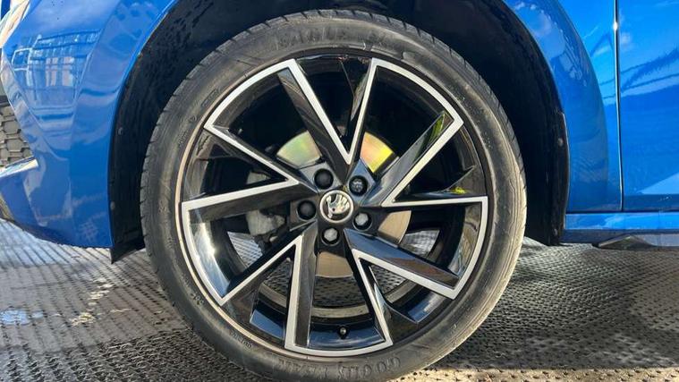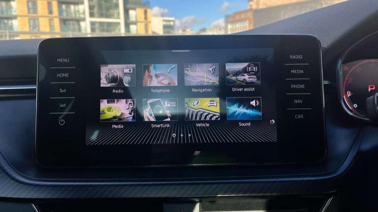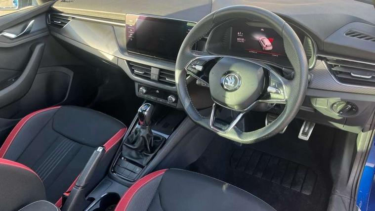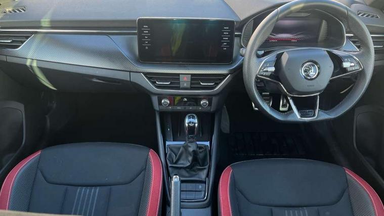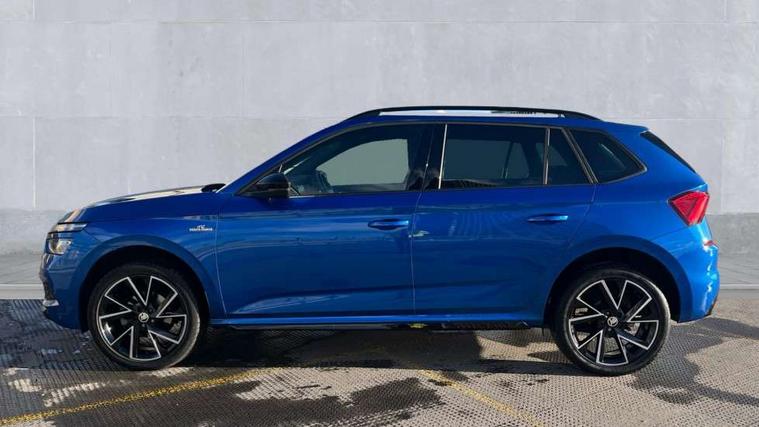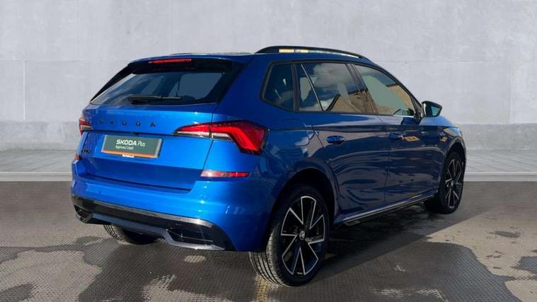 Amundsen satellite navigation with 9.2" glass colour touchscreen display, web radio, voice control and traffic sign recognition, Bluetooth system, E-call, Front assist system, Gesture control, PAS, Service indicator, Speed limiter, Wireless Smartlink for Apple CarPlay (wired for Android Auto), 8 Speakers, Auxiliary input socket, DAB Digital radio, Black door mirrors, Black radiator grille, Black rear diffuser, Body colour bumpers, Body colour door handles, Body colour roof spoiler, Boot lettering in black, Chrome grille surround, Dimming rear view mirror with black surround, Electrically adjustable and heated door mirrors, Fixed panoramic sunroof with black roof rails, Front and rear electric windows, Front sport bumper, Full LED headlights with adaptive front light system, cornering function, fog lights and dynamic indicators, Headlight range control, Heated rear window, High functionality rear led lights with dynamic indicators, KAMIQ Door sills, LED daytime running lights, LED third brake light, Light sensors, Monte carlo plaque, Privacy glass, Rain sensor, Rear fog lights, Rear side wing doors, Rear wiper, 12V Accessory socket in centre console, 3 seat bench in 2nd row, Aluminium pedals, Black ceiling for black/beige interior, Black roof lining, Chrome inner door handles, Cloth upholstery, Front head restraints, Glove compartment with illumination, Ice scraper, Isofix child seat fittings on outer rear seats, ISOFIX on front passenger seat, Leather gear lever, Manual lumbar support for front seats, Rake/reach adjustable steering wheel, Reading lights, Single front passenger seat, Sports seats, Sun visors with illumination on front passenger, Textile floor mats, Third rear headrest, Top tether for front passenger seat, Umbrella in driver's door, 3x3 point rear seatbelts, Airbags - driver and front passenger, ESP, Front passenger airbag deactivation switch, Front side airbags with curtain airbags, Hill hold control, Manual parking brake, Manual rear child locks, One tone horn, Rear disc brakes, Seatbelt reminder for driver an co-driver, Traction control, Tyre pressure monitor, Anti-theft alarm system with interior monitoring, backup horn, towing protection and remote central locking with SAFE system, Anti-theft wheel bolts, Electronic engine immobilizer, Chrome air vent surrounds, 18" Vega alloy wheels in black,