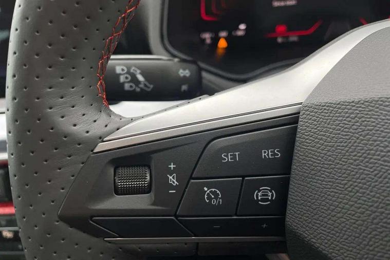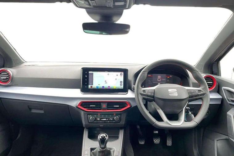 'Lights On' Reminder warning buzzer, 8" Digital cockpit, 9.2" touchscreen navigation system with type C USB socket, Voice control and DAB/AM/FM radio, Auto start and stop system, Bluetooth audio streaming with handsfree system, Digital clock, E-call, Full link smartphone integration with mirror link, wireless apple carplay, Google android auto + USB Type C cable for apple and android devices, Lane assist, Low fuel warning light, Outside temperature gauge, Power Steering, Rear parking sensor, Seat connect plus with safety, service, remote and online, SEAT drive profiles and ECO function, SEAT logo boot release, Speed limiter, Traffic sign recognition, Trip computer, Sports suspension, Auxiliary input socket, Radio/MP3 player, SD card slot, Steering wheel mounted controls, Anti theft roof antenna, Auto dimming rear view mirror, Automatic rain sensing wipers, Black door mirror caps, Body colour bumpers, Body colour door handles, Brilliant black window surrounds, Dark tinted rear windows, Electric adjustable/heated/folding door mirrors, Electric front windows, Electric headlight adjustment, Electric rear windows, Front/rear fog lights, FULL LED automatic headlights with dynamic headlight range control, coming and leaving home, LED daytime running lights, LED 3rd brake light, LED tail lights, Rear roof spoiler with FR twin exhausts, Rear side wing doors, Rear wiper, 3 seat bench in 2nd row, 60/40 split folding rear seat, Ambient interior lighting, Chrome detailing and black headlining, Cloth upholstery, Dual zone climate control with combination filter, Front courtesy lights, Front cupholders x 2, Front reading lights, Gear shift indicator, Glovebox, Height adjustable front and rear headrests (five), Height adjustable front seats, Height/reach adjust steering wheel, Illuminated air vent surrounds, Illuminated boot, Instrument lighting with brightness control, Isofix, Leather multifunction flat bottomed sports steering wheel with gearshift paddles, Passenger sunvisor, Single front passenger seat, Sports seats, Sunvisors with mirror and driver side card holder, Safety and driving pack (S) - Ibiza, 3 point seatbelts on all 3 rear seats, ABS, Active front headrests, Child locks on rear doors, Electronic stability control, Energy recovery system, Front driver and passenger side airbags with curtain airbag and front passenger airbag deactivation, Hill hold control, Multi-Collision braking, Seat belt reminder for front and rear seats, Tiredness recognition system, Tyre pressure monitoring system, Locking wheel bolts, Perimeter alarm and interior monitoring with backup horn and tow away protection, Remote central locking + deadlocks, 17" Alloy wheels in Brilliant silver,
