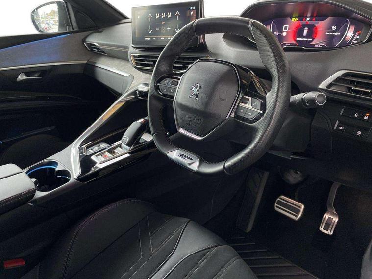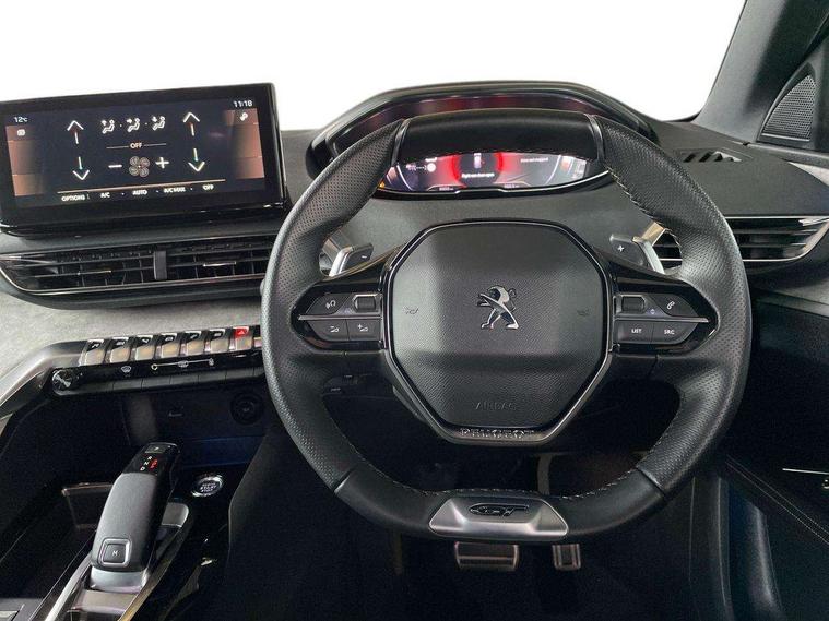 10" High Definition Capacitive Touchscreen, 3D connected navigation + voice control, Bluetooth telephone connection, Driving timer alert system, Extended traffic sign recognition, Exterior temperature gauge with frost alarm, Lane departure warning system, Mirror screen with Apple CarPlay and Android auto, Multi function trip computer, Passive blind spot monitoring without Steering correction, Peugeot i-cockpit with 12.3" headup digital instrumental panel, 8.0" capacitive touch screen and compact sports steering wheel, PEUGEOT SOS and assistance, Rear passenger USB charging sockets (x2) (type A), Speed limit recognition, Sports button, Dynamic stability control, Bi Tuner radio including DAB, USB socket, Automatic activation of hazard warning lights, Black diamond roof and nera black door mirror shells, Black rubber side window trim, Body colour door handles, Body coloured rear spoiler, Body protectors in black, Chrome front wing trim, Dark tinted rear side and tailgate windows, Electric folding door mirrors with exterior courtesy LED lighting, Electric front/rear windows with one touch/auto up/down, Electrically heated door mirrors, Fog Mode, Frameless electrochrome rear view mirror, Front windscreen wiper with magic wash cleaning system, Full LED headlights with static corner lighting and Daytime Running Light extension, Gloss black B and C pillar and aerodynamic deflector trim, Gloss black front bumper air scoops, Gloss black rear cluster connecting strip, GT emblem (front wings and tailgate), Headlights left on audible warning, Heated rear windscreen with integrated antenna, LED rear lights including reversing lights, scrolling indicators and PEUGEOT '3Claw Effect' light signature (with daylight function), LED rear number plate lighting, LED side indicator lights integrated into door mirrors, Rear windscreen wiper with auto activation when reversing, Twin exhaust effect trim, 2 cupholders in front centre console, 3 x 12V power sockets, 4 Grab handles retractable and damped, Aikinite stitching in armrest, gear lever and dashboard facia, Aluminium pedals, Automatic and dual zone diffusion air conditioning system, Blue ambient lighting for connecting zone, Blue ambient lighting to front door panels, central storage and cupholders, Brumeo fabric trimmed door armrests, Central front armrest with butterfly wing opening, Tramontane double stitching and illuminated storage compartment, Electric power steering with reach and rake adjustable steering column, Flocked front door pocket interior with blue ambient lighting, Flocked glovebox interior, Foldable front passenger seat, Footwell lighting, Front ambient lighting, Front interior light with reading spotlights (x2), row 2 interior light with reading spotlights (x2), Gear shift indicator, Illuminated glovebox, Illuminated vanity mirror, Isofix child seat fittings x 3 in the second row, LED interior lighting, Map pocket on front seat backs, Mistral floor mats with Aikinite contrast stitching, Mistral full grain perforated leather steering wheel with aikinite stitch detail and satin chrome 'GT' emblem, Rear ventilation system, Retractable parcel shelf, Roof lining and windscreen pillars in Mistral black, Satin chrome digital instrument panel and touchscreen trim, Satin chrome front door panel recess trim, Satin chrome interior door handles, Satin chrome scorpion's tail and toggle switch trim, Seatbelt not fastened audible and visual alert for front seats, Seatbelt unfastened on the move audible and visual alert for front and rear seats, Third row seats (can be stored under bootfloor or removed completely), Twin rear coat hooks, Children's pack - 5008, Drive Assist Plus Pack - 5008, Driver sport pack - 5008, Visibility pack - 5008, ABS + EBD + EBA, Adaptive driver and front passenger airbags including passenger airbag deactivation function, Electronic parking brake, ESP and ASR traction control with deactivation switch, Five 3 point rear safety belts, Front and rear curtain airbags, Front optimised safety headrests and rear retractable headrests (x3), height adjustable, Front side airbags, Front three point retractable seatbelts height adjustable with pre tensioners and force limiters, Front ventilated disc brakes, Hill start assist, Rear disc brakes, Rear three-point retractable seatbelts (x3) with pre-tensioners and force limiters in the outer rear seats, Two tone horn, Automatic door locking when moving off, Child lock control of rear doors and windows, Electronic code immobiliser, key operated exterior door lock from the left hand door, Keyless Start, Perimetric and volumetric alarm with lift and tilt sensor, Peugeot Open and Go System, Remote control central locking with two plip keys, Satin chrome dash trim,