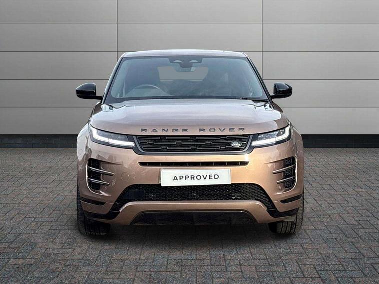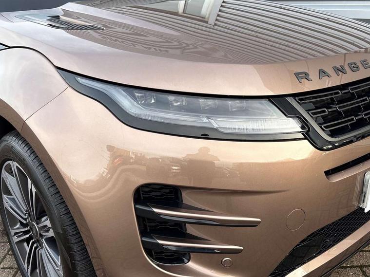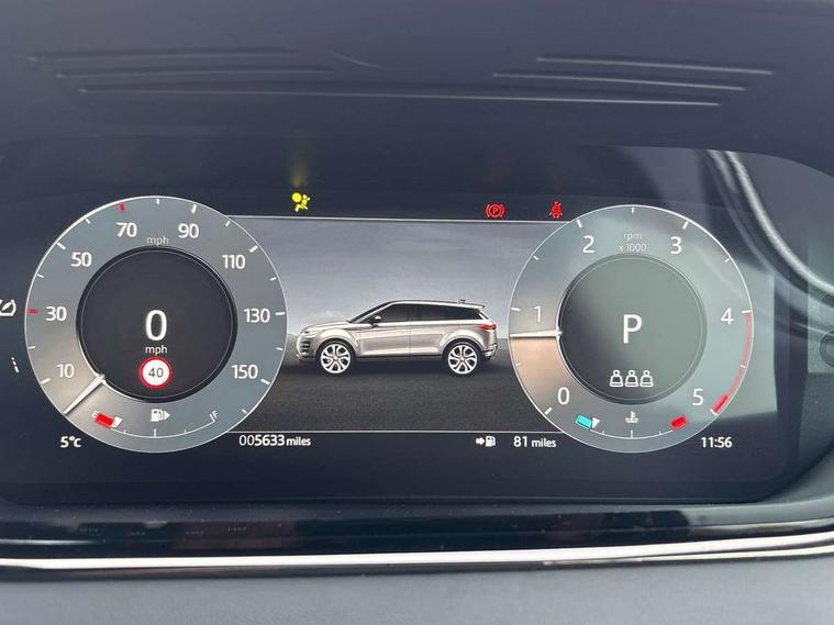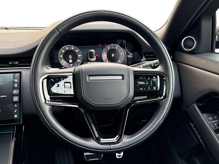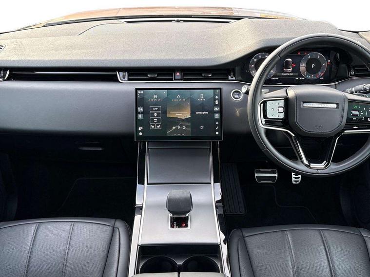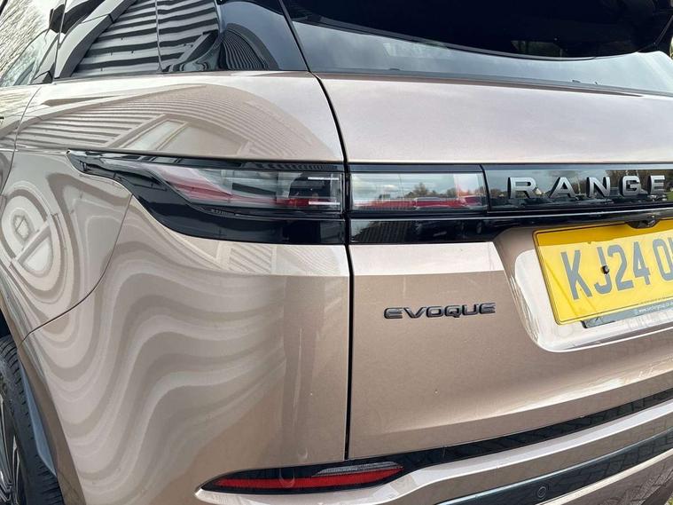 11.4" touch screen, Adaptive cruise control, Android Auto, Apple car play, Blind spot assist, Bluetooth connectivity, Brake pad wear indicator warning light, Driver condition monitor, eCall emergency system, Eco mode, Electronic power assisted steering (EPAS), Front and rear parking aid, InControl remote, Interactive driver display, Land Rover InControl apps, Lane keep assist, Pivi pro connected includes diamond pivi variant, smart settings, connected navigation pro, nuance speech licence, Powered tailgate/boot lid, Rear collision monitor, Rear traffic monitor, Traffic sign recognition with adaptive speed limiter, Voice control system, Wireless device charging, All terrain progress control, Diesel exhaust fluid (DEF) large tank, Efficient Driveline, Large fuel tank, Passive suspension, Terrain Response 2, Digital Audio Broadcast radio-DAB, Steering wheel mounted controls, Acoustic laminated windscreen, Auto headlights, Automatic headlight levelling, Electric windows with one touch open/close and anti trap, Flush deployable exterior door handles, Front and rear recovery eyes, Heated rear window with timer, Heated washer jets, Heated windscreen, Pixel LED headlights with signature DRL and LED tail Lights, Power fold, auto-dimming, heated door mirrors with approach lights and auto dimming driver side, Rain sensing windscreen wipers, Rear animated directional indicators, Rear fog lights, Rear side wing doors, Rear wiper, Side repeater indicators in mirror, Tailgate spoiler, Third brake light, Winter wiper park position, 14 way driver memory electric front seats with 2 way manual headrests + 4 way lumbar support, bolsters, 40:20:40 split folding rear seats with centre headrest and armrest, Ambient interior lighting, Bright metal pedals, Carpet mats, Chrome tread plates with range rover branding Includes stainless steel loadspace scuff plate with etched graphic, Customer configurable single point entry, Electrically adjustable steering column with memory function and easy entry/exit, Front and rear cupholders, Heated steering wheel, Isofix system on outer rear seats, Overhead lighting console, Overhead stowage for sunglasses, Passive front head restraints, Rear air vents, Rear head restraints, Satin chrome gearshift paddles, Single passenger seat, Sunvisors with illuminated vanity mirrors, Twin sliding front centre armrest, Online pack with data plan - Evoque, Power socket pack 2 - Evoque, 3 rear 3 point seatbelts, Anti-lock braking system (ABS), Brake hold function, Customer configurable autolock, DSC - Dynamic Stability Control, Electronic brake force distribution, Electronic parking brake, Electronic traction control, Emergency braking, Front and rear seatbelt reminder, Hill descent control, Hill launch assist, Low traction launch, Occupant protection assist, Passenger seat occupant detector, Power operated child locks, Roll stability control, Six airbags - Driver and passenger airbags/driver knee airbag/front side airbag and curtain airbags, Torque vectoring brake, Tyre pressure monitoring system, Alarm, Immobiliser, Intrusion sensor, Keyless entry, Locking wheel nuts,