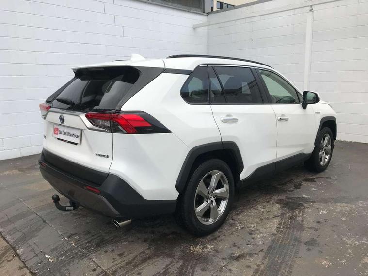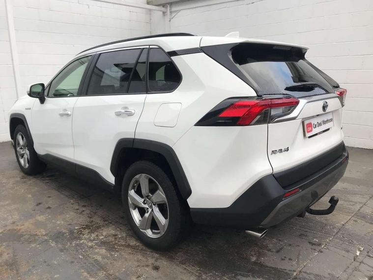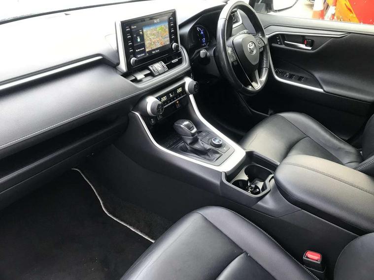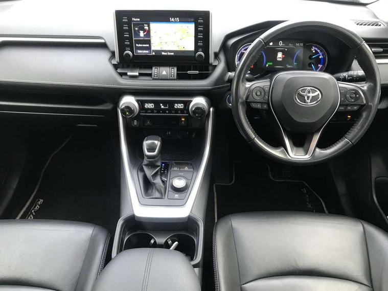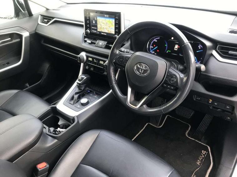 7" colour TFT display, Adaptive cruise control with lane trace assist, Adjustable speed limiter, Blind spot monitoring with rear cross traffic alert, Bluetooth system, Cyclist Detection, Drive mode selector, eCall emergency call system, ECO-driving indicator, Electric power steering, Hybrid system indicator, Lane departure warning system, Lights on warning, Low screen washer fluid warning, Night Time Pedestrian Detection, Pedestrial detection, Power boot opening and closing, Rear parking camera, Rear parking sensors, Remote boot door release in cabin, Tachometer, Touch 2 Go navigation system, Traffic sign recognition, Trip computer, Voice control system, Vehicle Stability Control (VSC), 6 speakers, 8" Multimedia display touch screen, Auxiliary socket for external MP3 player, DAB audio, Steering wheel mounted audio controls, Toyota touch media system, USB connection, Auto dimming interior mirror, Auto high beam, Automatic headlamp levelling, Automatic headlights, Automatically retractable door mirrors, Black roof rails, Body colour door handles, Body colour door mirrors, Body colour rear spoiler, Body coloured bumpers, Body coloured Shark-fin antenna, Door mirror puddle lights, Electric adjustable door mirrors, Emergency brake-light signal (EBS), Follow me home headlights, Front fog lights, Headlight cleaners, Heated door mirrors, LED daytime running lights, LED High mounted stop lamp, LED rear lights, Meshed upper front grille, Power front windows, Power rear windows, Privacy glass, Projector LED headlights, Rear screen wiper - intermittent, Rear windscreen defogger, Silver front under-run, Silver rear under-run, Trailer Sway Control, Turning signal integrated indicators in door mirrors, Windscreen wiper de-icer, 3 rear headrests, 60/40 split fold rear seat back, Boot light, Clean air filter, Driver and front passenger personal light, Driver and front passenger Whiplash Injury Lessening seats, Driver and passenger sunvisors with illuminated vanity mirrors, Driver seat memory function, Dual sided deck board in boot, Dual zone automatic air conditioning, Floor mats, Folding rear centre armrest, Front and rear bottle holders, Front centre armrest, Front footwell lights, Front headrests, Front seat and rear pockets, Front/rear roof mounted assist grips, Grey roof lining, Heated driver and front passenger seats, Heated steering wheel, Isofix child seat preparation, Leather gear shift with chrome surround, Leather upholstery, Light blue ambient lighting on front cupholders and open tray, Manual telescopic and tilt 3-spoke leather steering wheel with Chrome insert, Manually reclining and sliding front passenger seat, Pollen filter, Power height-adjustable sliding reclining and lumbar support for driver seat, Rear coat hooks, Rear door armrests, Rear passenger air vents, Reclining rear seats, Satin chrome interior door handles, Sunglasses holder, Parking pack - Rav4, 3x3 point rear seatbelts, ABS/EBD, Adjustable front driver and passenger seat belt extender, Brake assist function, Child proof door locks, Collision mitigation braking system, Driver/Front Passenger airbags, Driver/front passenger side airbags, Drivers knee airbag, Electronic parking brake, Electronic Stability Programme (ESP), Emergency brake light system (EBS), Front and rear curtain airbags, Front and rear seatbelt reminder, Hill start assist, Passenger airbag cut-off device, Seatbelt pretensioners with load limiters, Traction control, Tyre pressure warning, Alarm/immobiliser, Glass-breaking alarm sensors, Light - on and Key in reminder, Remote central locking, Smart entry + Smart start, Speed sensitive auto door locking, Tilt detection sensors, Piano black centre console with silver insert, Soft-touch black lower dashboard, Soft-touch black upper dashboard with silver insert, Full size spare wheel,