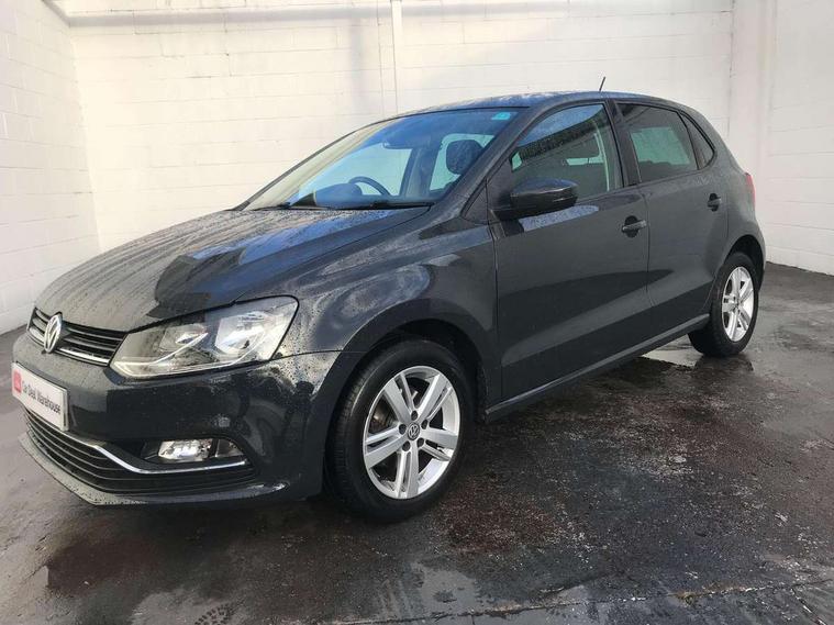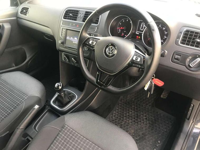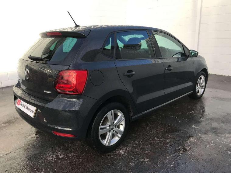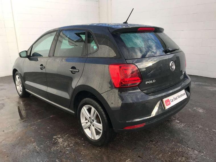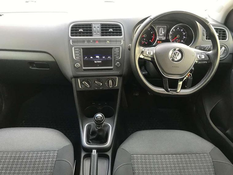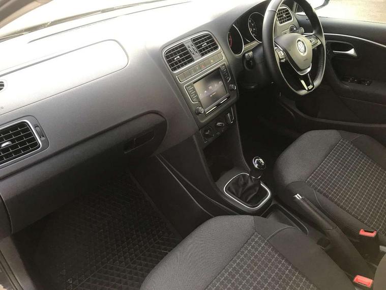 App-Connect, Bluetooth Telephone preparation, Cruise control + speed limiter, Driver alert system, Multi function display, Multifunction computer, PAS - speed related, Service interval indicator, Ultrasonic front and rear optical and audible parking sensors, Warning buzzer and light for front seatbelts unfastened, 6 speakers, Composition media system with radio, glovebox mounted CD, colour touch screen, SD card, aux-in, USB, multimedia interface, DAB Digital radio, Black grille with chrome surround, Body colour bumpers, Body colour door handles, Body colour door mirrors, Body coloured side sills, Chrome trimmed front air intake surrounds, Electric folding door mirrors, Electric front windows, Electric operated/heated door mirrors, Front fog lights with static cornering function, Front wash/wipe with interval delay, Heat insulated tinted glass 65% light absorbing from B pillar back, Heated rear window with auto timer, Rear electric windows, Rear windscreen washer and wiper with interval delay, 12V power socket in centre console, 2 bag hooks in luggage compartment, 2 cupholders, 3 rear head restraints, 3 spoke steering wheel, 4 grab handles, 60/40 split folding rear seat, Centre console storage, Chrome interior door handles, Driver and passenger sunvisors, Driver seat height adjust, Dust/pollen filter, Front door pockets, Front passenger seat height adjust, Front seat backrest storage nets, Front/rear reading lights, Glovebox, Height/reach adjustable steering column, Illuminated vanity mirror, Interior light with delay, Isofix Preparation 2 Rear child seats, Luggage compartment cover, removable, Luggage compartment lighting, Matt chrome gear lever gaiter surround, Multifunction leather steering wheel with leather gear knob/handbrake grip, Storage compartment in front doors, Storage compartment in rear doors, Sunglasses holder, Variable boot floor, Light and sight pack - Polo, 3 point height adj front seatbelts + pretensioners, 3x3 point rear seatbelts, ABS, Automatic post collision braking, Driver/front passenger airbag, Driver/Passenger whiplash optimised head restraints, ESC - Electronic Stability Control + traction control, ESP with EDL + ASR, Hill hold control, Hydraulic Brake Assist (HBA), Tyre pressure monitoring system, Alarm with remote central locking and interior protection, Electronic engine immobiliser, Air vents in Matt chrome, Matt chrome interior trim, 15" steel spare wheel,