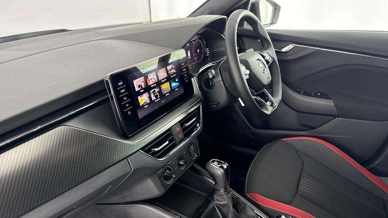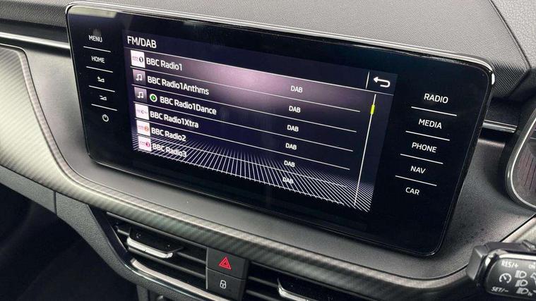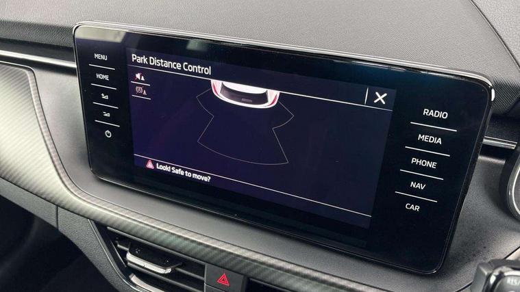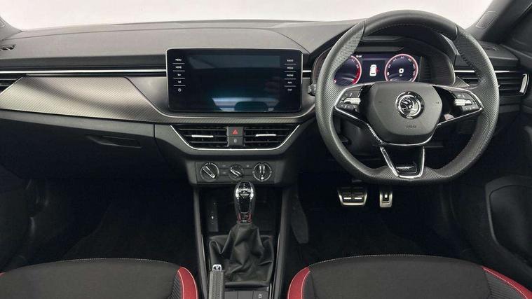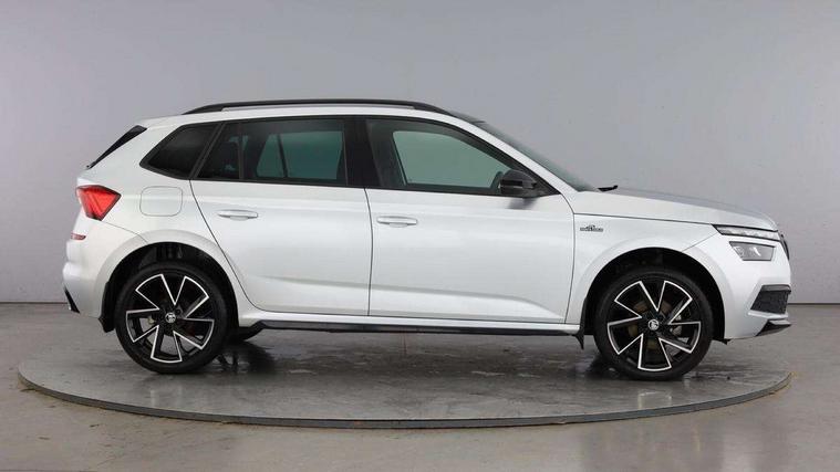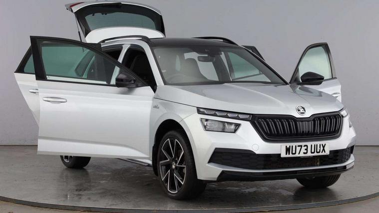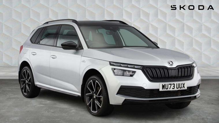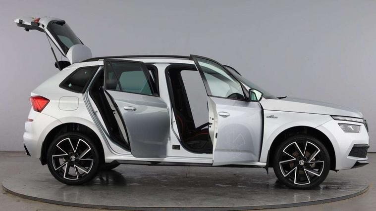 Amundsen satellite navigation with 9.2" glass colour touchscreen display, web radio, voice control and traffic sign recognition, Bluetooth system, E-call, Front assist system, Gesture control, PAS, Service indicator, Speed limiter, Wireless Smartlink for Apple CarPlay (wired for Android Auto), 8 speakers, Auxiliary input socket, DAB Digital radio, Black door mirrors, Black radiator grille, Black rear diffuser, Body colour bumpers, Body colour door handles, Body colour roof spoiler, Boot lettering in black, Chrome grille surround, Dimming rear view mirror with black surround, Electrically adjustable and heated door mirrors, Front and rear electric windows, Front sport bumper, Full LED headlights with adaptive front light system, cornering function, fog lights and dynamic indicators, Headlight range control, Heated rear window, High functionality rear led lights with dynamic indicators, KAMIQ Door sills, LED daytime running lights, LED third brake light, Light sensors, Monte carlo plaque, Panoramic sunroof with black roof rails, Privacy glass, Rain sensor, Rear fog lights, Rear side wing doors, Rear wiper, 12V Accessory socket in centre console, 3 seat bench in 2nd row, Aluminium pedals, Black ceiling for black/beige interior, Black roof lining, Chrome inner door handles, Cloth upholstery, Front head restraints, Glove compartment with illumination, Height adjustable front passenger seat, Ice scraper, Isofix child seat fittings on outer rear seats, ISOFIX on front passenger seat, Leather gear lever, Manual lumbar support for front seats, Rake/reach adjustable steering wheel, Reading lights, Single front passenger seat, Sports seats, Sun visors with illumination on front passenger, Textile floor mats, Third rear headrest, Top tether for front passenger seat, Umbrella in driver's door, 3x3 point rear seatbelts, Airbags - driver and front passenger, ESP, Front passenger airbag deactivation switch, Front side airbags with curtain airbags, Hill hold control, Manual parking brake, Manual rear child locks, One tone horn, Rear disc brakes, Seatbelt reminder for driver an co-driver, Traction control, Tyre pressure monitor, Anti-theft alarm system with interior monitoring, backup horn, towing protection and remote central locking with SAFE system, Anti-theft wheel bolts, Electronic engine immobilizer, Chrome air vent surrounds, 18" Vega alloy wheels in black,