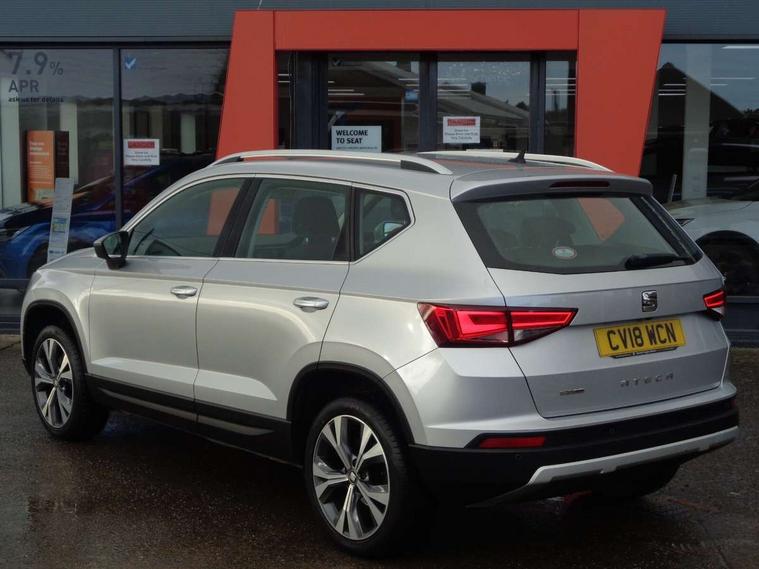 'Lights On' Reminder warning buzzer, Apple car play/Android Auto, Driver alert system, Electric speed sensitive power steering, Low fuel warning light, Multi function display, Outside temperature gauge, Rear parking sensor, Remote fuel flap release, SEAT logo boot release, Trip computer, Comfort suspension, XDS electronic differential lock, 2 USB sockets in rear, Mirror link app interface, Steering wheel mounted audio/phone controls, Aluminium roof rails, Automatic headlights, Body colour bumpers, Body colour door handles, Body colour door mirrors, Chrome headlight surround, Chrome side window trim, Chromed centre radiator grille surround, Electric folding door mirrors, Electrically adjustable and heated door mirrors, Front and rear electric windows, LED daytime running lights, LED front fog lights with static cornering light function, LED Headlights, LED tail lights, Matt black radiator grille, Rear wash/wipe, 12V power point front, 3 height adjustable rear headrests, 4 Lashing eyes in boot, 60/40 split folding rear seat, Active head restraints, Adjustable front armrest with storage compartment, Card holder, Cloth upholstery, Comfort front seats, Driver seat lumbar adjustment, Driver/passenger lumbar adjustment, Driver/passenger sunvisors with illuminated vanity mirrors, Dual zone climate control, Footwell illumination, Front cupholders x 2, Front reading lights, Front seat back storage pockets, Height adjustable driver's seat, Height adjustable front headrests, Height adjustable passenger seat, Illuminated boot, Illuminated glovebox, Isofix child seat preparation, Leather steering wheel and gear knob, Rear armrest, Rear central air outlet, Rear reading lights, Storage box under drivers seat, Navigation system pack - Ateca, Seat Media System Plus pack - Ateca, 3x3 point rear seatbelts, ABS, Auto hold function, Automatic post collision braking, Curtain airbags, Driver/Front Passenger airbags, Drivers knee airbag, Electronic parking brake, ESP+EBA, Front and rear seatbelt reminder, Front assist including city emergency braking, Front passenger airbag deactivation, Front side airbags, Hill hold control, Predictive pedestrian protection, Tiredness recognition system, Traction control, Tyre pressure monitoring system, 2 folding remote keys with window open/close function, Immobiliser, Locking wheel bolts, Remote central locking, Volumetric alarm with back up horn, Chrome effect dashboard facia,