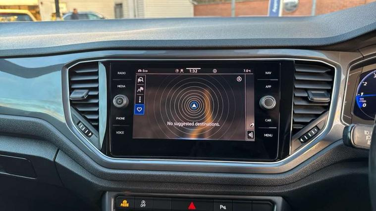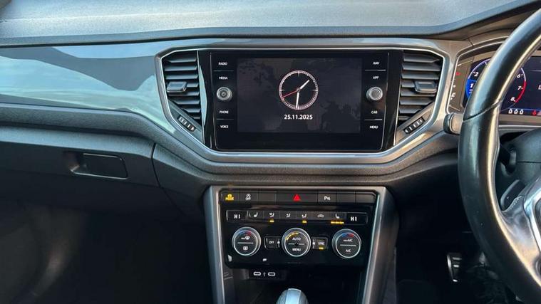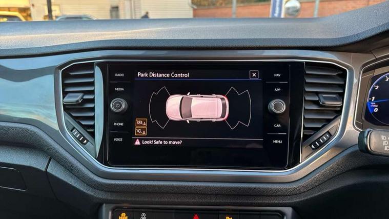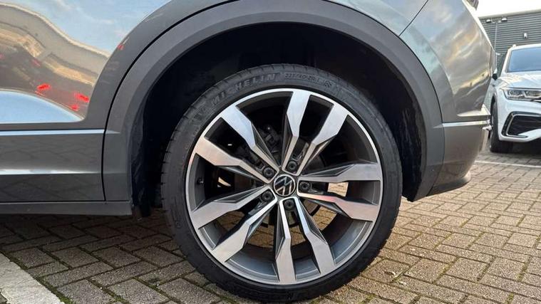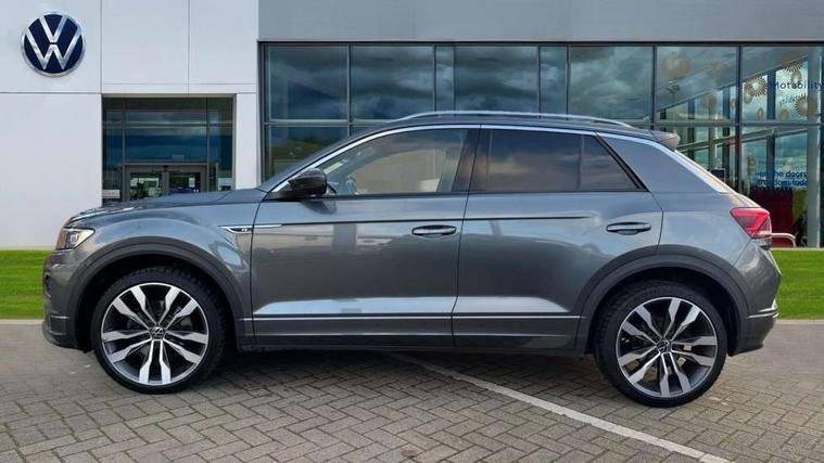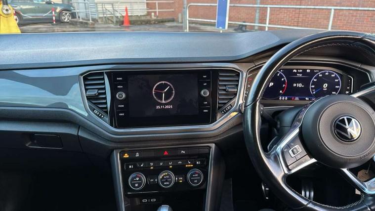 'Lights On' Reminder warning buzzer, Adaptive cruise control, Bluetooth telephone and audio connection for compatible devices, Car information display, Digital Cockpit Pro - Active info display, Driver alert system with audible and visual fatigue detection system, Driver tips and journey analysis, Emergency call service, Lane assist with warning text instrument cluster, Modified key software - reduce switch off time for key status change to Long no motion, Multifunction camera, Multifunction computer with visual gear change recommendation for fuel consumption, Navigation system discover media including streaming and internet, Service interval indicator, Think blue trainer driver tips and journey analysis, Traffic sign recognition, Voice activation, Warning sound and light for front seatbelts unfastened, Wireless app connect for apple carPlay, Battery regeneration during braking, Rear shock absorption for sports version, Start/stop function with battery regeneration, DAB Digital radio, Disk brakes in front, Diversity antenna for FM reception, Music playback - MP3, WMA and AAC files, Premium USB cable in choice of either Apple or Android smartphone compatibility, SD card slot, Simultaneous pairing of 2 compatible mobile devices, SMS functionality - read, compose and send SMS messages using touch-screen display, Storage compartment with longitudinal and height adjustable in armrest and two rear air vents, Three route options - Fast, Short, Eco, Title and cover art display, USB-C Interface and USB charging socket, Auto dimming interior rear view mirror, Automatic coming/leaving home lighting function and daytime running lights, Automatic hazard lights activation under emergency braking, Black grained lower door protectors, Body colored door lower parts, Body colour door handles, Body colour rear roof spoiler, Chrome effect left and right trapezoid exhaust tailpipe fascia surround, Chrome plated moldings, Chrome plated roof rails, Chrome trim on upper and lower radiator grille, Dusk sensor, Dynamic headlight range control with self adjusting whilst driving, Electrically foldable, adjustable and heated door mirrors with puddle lights and reverse activated kerb-view adjustment on passenger's door mirror, External USB type C socket and charging sockets, Front and rear electric windows, Front fog lights with static cornering function, Front windscreen wiper with intermittent wipe and 4 position delay, Fully galvanised body, Heated rear window, Heated windscreen washer jets, High level 3rd brake light, LED darkened rear light clusters, LED headlamps with automatic range adjustment and unique signature LED separate daytime running lights, LED rear number plate lights, LED tail lamp rear comination lamps, Privacy glass, R-Line design body coloured bumpers, Rain sensor, Rear tinted glass from B-pillar backwards approx 65% tinted, Rear wash/wipe with intermittent wipe setting, Volkswagen roundel, 12V socket in centre console storage area, 3 rear head restraints, 4 load lashing points in luggage compartment, Aluminium pedals, Black roof lining and sun visors, Branded points of interest, Carbon flag cloth upholstery, Chrome plated radiator grille inserts, air vent surrounds and light switch surrounds, Climate control - 2 zone electronic air conditioning with automatic air recirculation and allergy filter, Door and side trim panel, Door and side trim panel in foam film, insert in leatherette, Drawer under drivers seat, Front + rear carpet mats, Front centre armrest, Front cupholders x 2, Front seat back storage pockets, Front sports seats with R-Line logo on seat backrest, Glovebox, Heated front seats, Height adjustable front seats, Height/reach adjust steering wheel, Instrument lighting, white adjustable panel illumination, Interior light delay, Interior light in footwell, Isofix easy fit child seat preparation for 2 outer rear seats, Leather gearshift knob, LED interior light with switch off delay/dimmer and 2 front/rear LED reading lights, Load through provision with single cup holder when folded down, Luggage compartment cover, removable, Luggage compartment lighting, R Line badge, Scuff plates in door apertures, Split folding rear seat backrests with centre armrest, Stainless steel pedals, Storage compartment in left and right luggage area, Storage compartment in rear doors, Storage compartments in driver and front passenger doors, Sunvisors with illuminated vanity mirrors, Unique R Line door sill protectors, White ambient lighting, R line styling pack - T-Roc, Winter pack - T-Roc, 3 rear three point seatbelts, ABS, Curtain airbags, Driver and front passenger safety-optimised head restraints, Drivers and front passengers airbags with passengers deactivation switch, Drivers seatbelt reminder, Electronic parking brake with auto hold, Electronic stability control (ESC) includes ASR, EDL, EDTC and trailer stabilisation function, Front assist with city emergency braking and pedestrian monitoring, Front seat side impact airbags, Hill start assist, Predictive pedestrian protection, Rigid safety cell with front and rear crumple zones, Single tone horn, Three point height adjust front seatbelts + pretensioners, Tyre pressure loss indicator, Ventilated front and rear disc brakes, Volkswagen roadside assistance, Alarm with remote central locking and interior protection, Electronic engine immobiliser, Remote central locking with SAFELOCK, radio remote control with 2 remote control folding keys, Shadow grey decorative inserts in dash, centre console and door panel, 19" Suzuka alloy wheels with low rolling resistance tyres and anti wheel bolts,