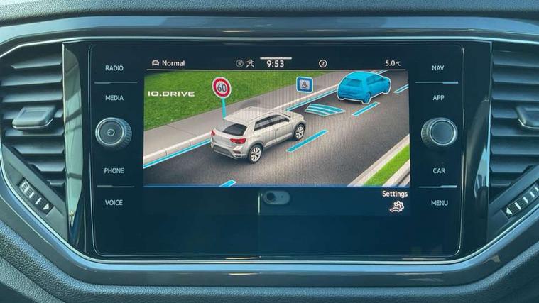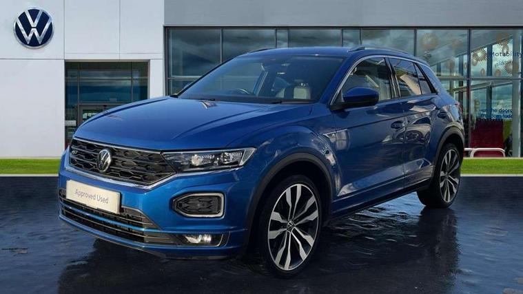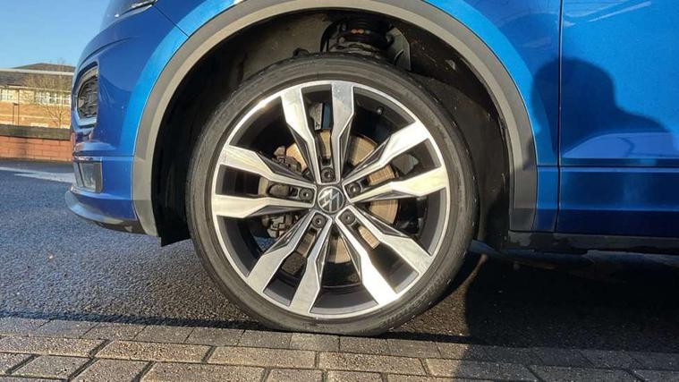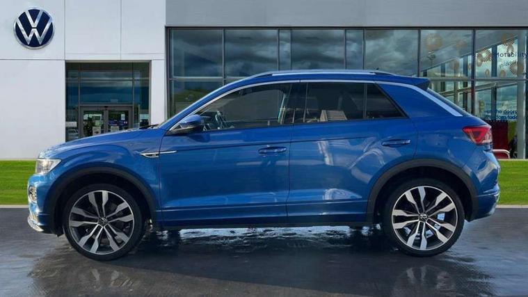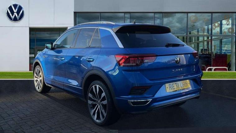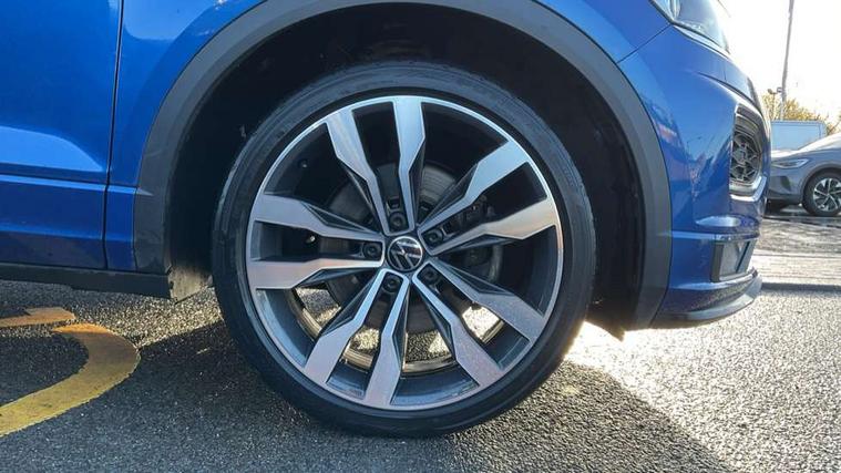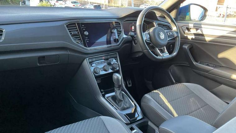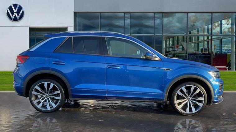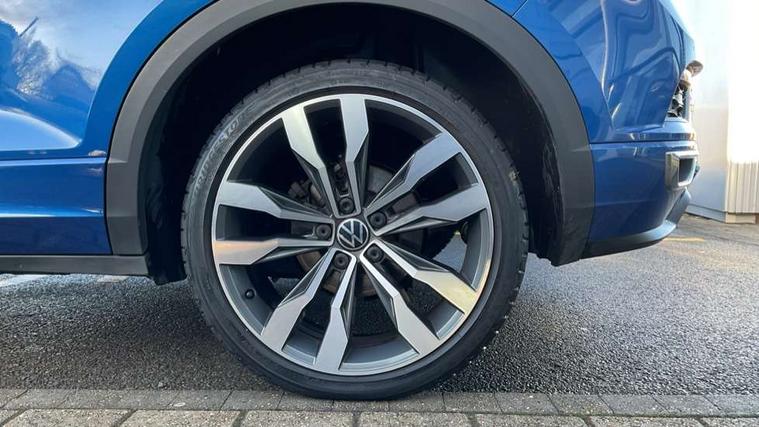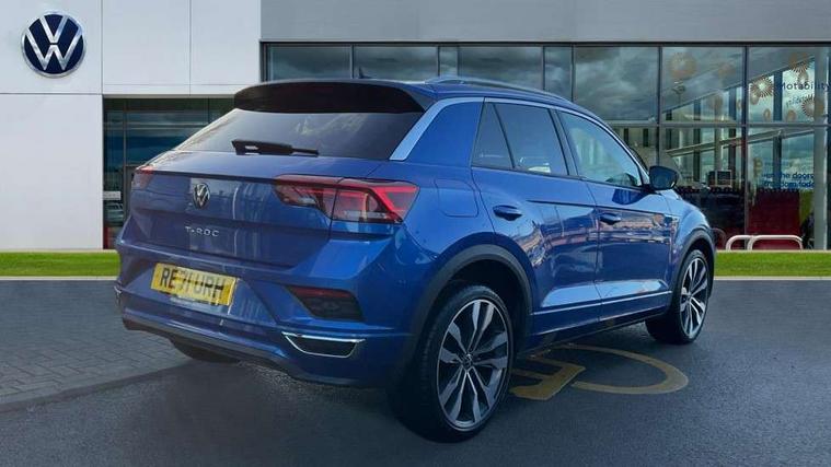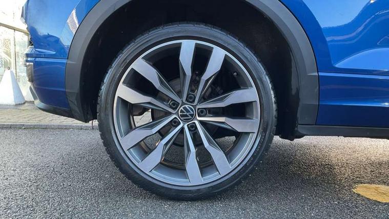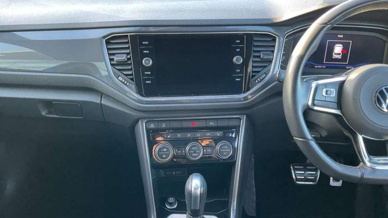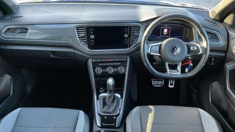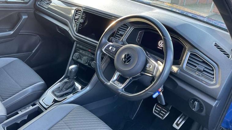 'Lights On' Reminder warning buzzer, Adaptive cruise control, Bluetooth telephone and audio connection for compatible devices, Car information display, Digital Cockpit Pro - Active info display, Driver alert system with audible and visual fatigue detection system, Driver tips and journey analysis, Emergency call service, Lane assist with warning text instrument cluster, Modified key software - reduce switch off time for key status change to Long no motion, Multifunction camera, Multifunction computer with visual gear change recommendation for fuel consumption, Navigation system discover media including streaming and internet, Service interval indicator, Think blue trainer driver tips and journey analysis, Traffic sign recognition, Voice activation, Warning sound and light for front seatbelts unfastened, Wireless app connect for apple carPlay, Battery regeneration during braking, Rear shock absorption for sports version, Start/stop function with battery regeneration, DAB Digital radio, Disk brakes in front, Diversity antenna for FM reception, Music playback - MP3, WMA and AAC files, Premium USB cable in choice of either Apple or Android smartphone compatibility, SD card slot, Simultaneous pairing of 2 compatible mobile devices, SMS functionality - read, compose and send SMS messages using touch-screen display, Storage compartment with longitudinal and height adjustable in armrest and two rear air vents, Three route options - Fast, Short, Eco, Title and cover art display, USB-C Interface and USB charging socket, Auto dimming interior rear view mirror, Automatic coming/leaving home lighting function and daytime running lights, Automatic hazard lights activation under emergency braking, Black grained lower door protectors, Body colored door lower parts, Body colour door handles, Body colour rear roof spoiler, Chrome effect left and right trapezoid exhaust tailpipe fascia surround, Chrome plated moldings, Chrome trim on upper and lower radiator grille, Dusk sensor, Dynamic headlight range control with self adjusting whilst driving, Electrically foldable, adjustable and heated door mirrors with puddle lights and reverse activated kerb-view adjustment on passenger's door mirror, External USB type C socket and charging sockets, Front and rear electric windows, Front fog lights with static cornering function, Front windscreen wiper with intermittent wipe and 4 position delay, Fully galvanised body, Heated rear window, Heated windscreen washer jets, High level 3rd brake light, LED darkened rear light clusters, LED headlamps with automatic range adjustment and unique signature LED separate daytime running lights, LED rear number plate lights, LED tail lamp rear comination lamps, Privacy glass, R-Line design body coloured bumpers, Rain sensor, Rear tinted glass from B-pillar backwards approx 65% tinted, Rear wash/wipe with intermittent wipe setting, Silver anodised roof rails, Volkswagen roundel, 12V socket in centre console storage area, 3 rear head restraints, 4 load lashing points in luggage compartment, Aluminium pedals, Black roof lining and sun visors, Branded points of interest, Carbon flag cloth upholstery, Chrome plated radiator grille inserts, air vent surrounds and light switch surrounds, Climate control - 2 zone electronic air conditioning with automatic air recirculation and allergy filter, Door and side trim panel, Door and side trim panel in foam film, insert in leatherette, Drawer under drivers seat, Front + rear carpet mats, Front centre armrest, Front cupholders x 2, Front seat back storage pockets, Front sports seats with R-Line logo on seat backrest, Glovebox, Heated front seats, Height adjustable front seats, Height/reach adjust steering wheel, Instrument lighting, white adjustable panel illumination, Interior light delay, Interior light in footwell, Isofix easy fit child seat preparation for 2 outer rear seats, Leather gearshift knob, Leather multi function sport steering wheel with gear change selection via paddle shift on steering wheel, LED interior light with switch off delay/dimmer and 2 front/rear LED reading lights, Load through provision with single cup holder when folded down, Luggage compartment cover, removable, Luggage compartment lighting, R Line badge, Scuff plates in door apertures, Split folding rear seat backrests with centre armrest, Stainless steel pedals, Storage compartment in left and right luggage area, Storage compartment in rear doors, Storage compartments in driver and front passenger doors, Sunvisors with illuminated vanity mirrors, Unique R Line door sill protectors, White ambient lighting, R line styling pack - T-Roc, Winter pack - T-Roc, 3 rear three point seatbelts, ABS, Curtain airbags, Driver and front passenger safety-optimised head restraints, Drivers and front passengers airbags with passengers deactivation switch, Drivers seatbelt reminder, Electronic parking brake with auto hold, Electronic stability control (ESC) includes ASR, EDL, EDTC and trailer stabilisation function, Front assist with city emergency braking and pedestrian monitoring, Front seat side impact airbags, Hill start assist, Predictive pedestrian protection, Rigid safety cell with front and rear crumple zones, Single tone horn, Three point height adjust front seatbelts + pretensioners, Tyre pressure loss indicator, Ventilated front and rear disc brakes, Volkswagen roadside assistance, Alarm with remote central locking and interior protection, Electronic engine immobiliser, Remote central locking with SAFELOCK, radio remote control with 2 remote control folding keys, Shadow grey decorative inserts in dash, centre console and door panel, 19" Suzuka alloy wheels with low rolling resistance tyres and anti wheel bolts,