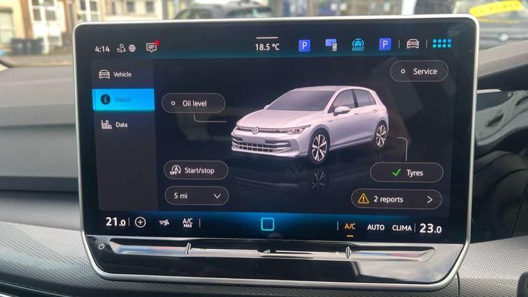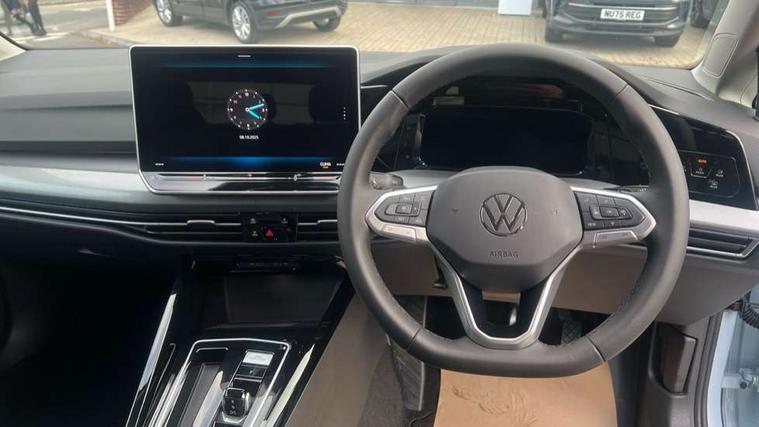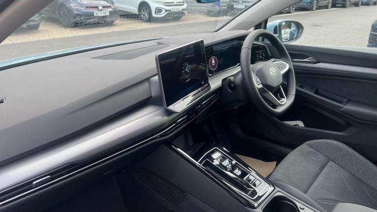 Activated carbon canister, Adaptive cruise control (ACC), Advanced driver attention and drowsiness monitor, Dynamic road sign display, E-Sim card for online connectivity, eCall emergency call system, Multi-color Digital cockpit pro, selection of different info profile possible, Multifunction front facing camera for distance control, Navigation system, Oncoming vehicle braking when turning including swerve support, Side assist blind spot lane change system, rear traffic alert and exit warning system, Speed limiter, Speedo, rev counter, electronic odometer, trip, service interval display, exterior temperature and fuel gauge, Traffic jam assist, Voice enhancer and voice control, Warning signal and warning light for front and rear seatbelts not fastened, We connect plus preparation, We connect preparation, Wireless app connect, Hybrid propulsion system, Petrol Particulate Filter, Start-stop system with battery regeneration (recuperation - energy recovery during braking), XDS electronic differential lock for improved traction and handling, 2 USB C ports in front, 2 USB charging sockets on the centre console in the rear charging capacity upto 45W, Digital radio reception (DAB), Diversity antenna for FM reception, Gaming platform via car app, Infotainment system with 12.9" display, Mobile phone interface with inductive charging feature, 3rd brake light, Automatic headlamp activation with Coming home and Leaving home feature, Body colour bumpers, Body colour door handles, Body colour door mirrors, Chrome trimmed front air intake surrounds, Chrome trims on the side window bottom, Exterior mirrors convex on the left and aspherical on the right, Front and rear electric windows, Heat insulating windshield made of laminated glass, LED separate daytime running light, Rear exhaust tailpipe, Rear fog light on one side and reversing lights on both sides, Rear side wing doors, Rear windscreen washer and wiper with interval delay, Remote electrically foldable door mirrors, puddle lights and reverse activated passenger's door mirror, Welcome light with surround lighting, 12V socket in front centre console, 12V socket in luggage compartment, 3 rear head restraints, 3 seat bench in 2nd row, Air care climatronic 3 Zone automatic climate control with rear air conditioning control panel, Ambient lighting with 30 colour including LED light unit in front footwell with selectable light colour, Art velours cloth upholstery, Chrome plated radiator grille inserts, air vent surrounds and light switch surrounds, Door insert, side trim panel and arm support in leatherette, Front + rear black carpet mats, Front centre armrest, Front head restraints, Front seat lumbar support adjuster, ISOFIX anchors for child seats on outer rear bench seats and on front passanger seat compatible for i-Size, Luggage compartment lighting, Manual height adjustable front passenger seat, Manually height adjustable driver seat, Plastic gear knob, Rear cupholder and loadthough, Single front passenger seat, Soul black instrument panel, Split folding backrest with centre armrest and unsplit rear seat bench, Sports comfort seats in front, Standard pedal cluster, Storm grey roof lining, Sun visors with illuminated vanity mirrors, Driver assistance pack - Golf Estate/Hatchback Auto, 3 point height adj front seatbelts + pretensioners, 3 rear three point seatbelts, ABS, Autonomous emergency braking front assist with pedestrian and cyclist monitoring, Child locks on rear doors, Driver and front passenger airbag with front passenger airbag deactivation, Electronic parking brake with auto hold, ESC (Electronic Stability Control), Extended pedestrian protection measures, Hill start assist, Rear disc brakes, Two tone horn, Tyre pressure loss indicator, Volkswagen roadside assistance, Anti theft wheel bolts, Preparation for alcohol interlock, New brushed dark metal decorative inserts for dashboard and front door panels,