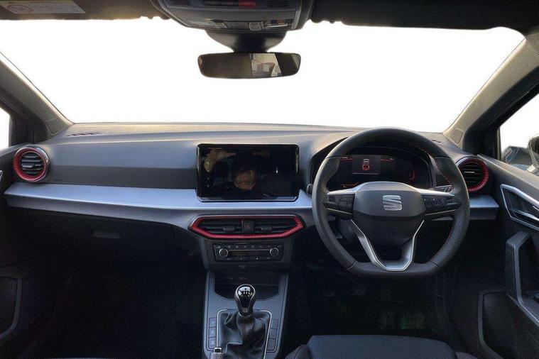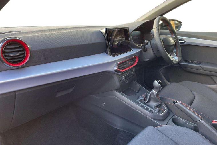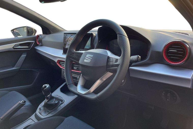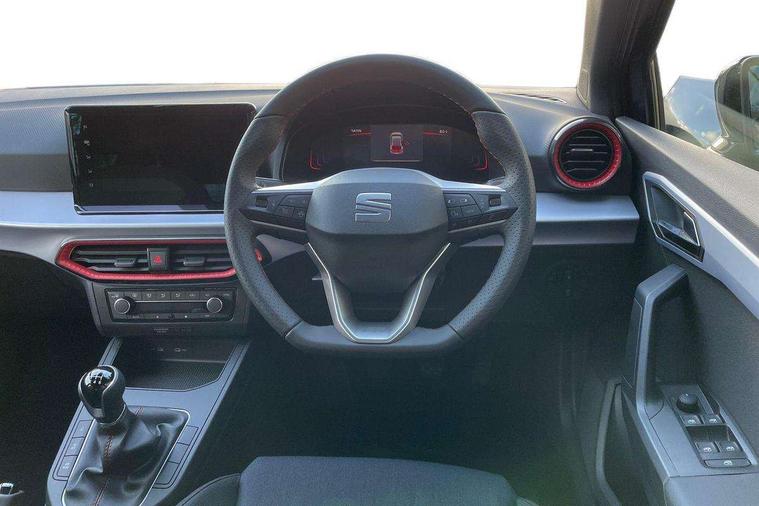 'Lights On' Reminder warning buzzer, 8" Digital cockpit, 9.2" touchscreen navigation system with type C USB socket, Voice control and DAB/AM/FM radio, Auto start and stop system, Bluetooth audio streaming with handsfree system, Digital clock, E-call, Full link smartphone integration with mirror link, wireless apple carplay, Google android auto + USB Type C cable for apple and android devices, Lane assist, Low fuel warning light, Outside temperature gauge, Power Steering, Rear parking sensor, Seat connect plus with safety, service, remote and online, SEAT drive profiles and ECO function, SEAT logo boot release, Speed limiter, Traffic sign recognition, Trip computer, Sports suspension, Auxiliary input socket, Radio/MP3 player, SD card slot, Steering wheel mounted controls, Anti theft roof antenna, Auto dimming rear view mirror, Automatic rain sensing wipers, Black door mirror caps, Body colour bumpers, Body colour door handles, Brilliant black window surrounds, Dark tinted rear windows, Electric adjustable/heated/folding door mirrors, Electric front windows, Electric headlight adjustment, Electric rear windows, Front/rear fog lights, FULL LED automatic headlights with dynamic headlight range control, coming and leaving home, LED daytime running lights, LED 3rd brake light, LED tail lights, Rear roof spoiler with FR twin exhausts, Rear side wing doors, Rear wiper, 3 seat bench in 2nd row, 60/40 split folding rear seat, Ambient interior lighting, Chrome detailing and black headlining, Cloth upholstery, Dual zone climate control with combination filter, Front courtesy lights, Front cupholders x 2, Front reading lights, Gear shift indicator, Glovebox, Height adjustable front and rear headrests (five), Height adjustable front seats, Height/reach adjust steering wheel, Illuminated air vent surrounds, Illuminated boot, Instrument lighting with brightness control, Isofix, Leather multifunction flat bottomed sports steering wheel, Passenger sunvisor, Single front passenger seat, Sports seats, Sunvisors with mirror and driver side card holder, Safety and driving pack (S) - Ibiza, 3 point seatbelts on all 3 rear seats, ABS, Active front headrests, Child locks on rear doors, Electronic stability control, Energy recovery system, Front driver and passenger side airbags with curtain airbag and front passenger airbag deactivation, Hill hold control, Multi-Collision braking, Seat belt reminder for front and rear seats, Tiredness recognition system, Tyre pressure monitoring system, Locking wheel bolts, Perimeter alarm and interior monitoring with backup horn and tow away protection, Remote central locking + deadlocks, 17" Alloy wheels in Brilliant silver,