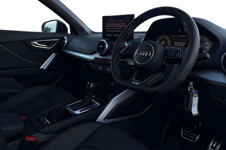 3D map display, Audi connect navigation and infotainment includes innovative services, Audi connect remote and control connects your vehicle to your smartphone, Audi drive select: S tronic - power steering assistance + engine + gearshift (modes: comfort, auto, dynamic, efficiency, individual), Audi smartphone interface - Apple carplay/Android Auto, USB connect, 2xSDXC card readers, voice control for navi, telephone, music and 3rd party apps, Audi virtual cockpit, Automatic start/stop system with recuperation, Bluetooth interface includes bluetooth audio streaming, Camera based traffic sign recognition, Cruise control, Distraction and Fatigue warning, E-call, Jukebox hard drive memory for music (10GB), Lane departure warning, MMI navigation plus with 8.8" touchscreen, Natural voice recognition, Power operated tailgate, Progressive steering, Rear parking sensors, Sport suspension, 6 passive loudspeakers, DAB Digital radio, USB type C port, Audi beam, Auto dimming rear view mirror, Black window trims, Bumper in full body colour paint finish, Electrically adjustable, folding, auto dimming and heated door mirrors with integrated LED side indicators, Front windscreen with grey tinted sunband, LED daytime running lights, LED headlights with dipped beam, high beam, position lights, indicators, LED rear lights, LED third brake light, Privacy glass - dark tinted rear and rear side windows from B-pillar backwards, Rear side wing doors, Rear wiper, Variable front intermittent wipers, Wheel arch trims in manhattan grey, 12V socket in front, 3 seat bench in 2nd row, 3 spoke flat bottomed multi-function leather sport steering wheel with gear shift paddles, 4-way electric lumbar support for front seats including manual seat height adjustment for both front seats, 60/40 split folding rear seat bench, Black carpets, Black cloth headlining, Front and rear head restraints, Front centre armrest, Front sport seats, Front/rear floor mats, Height/reach adjust steering wheel, Illuminated door sill trims with S logo, ISOFIX child seat mounting in front passenger and rear outer seats, Manual air conditioning, Single front passenger seat, Stainless steel pedals, Black styling pack - Q2, 3x3 point rear seatbelts, 6 airbags - Front, curtain and front side airbags, Electromechanical parking brake, Electronic stabilisation control including ABS, ASR and EDL, Front passenger airbag deactivation, Hill hold assist, Pre-sense front with pedestrian recognition, Seatbelt monitoring, Tyre pressure warning light with visual and acoustic warning, Warning triangle and first aid kit, Anti theft wheel bolts, Electronically operated child locks, Remote central door locking, Thatcham category 1 alarm, Aluminium interior element, Black dashboard, Gloss black centre console, Matt brushed aluminium trim inlays, Tool kit,