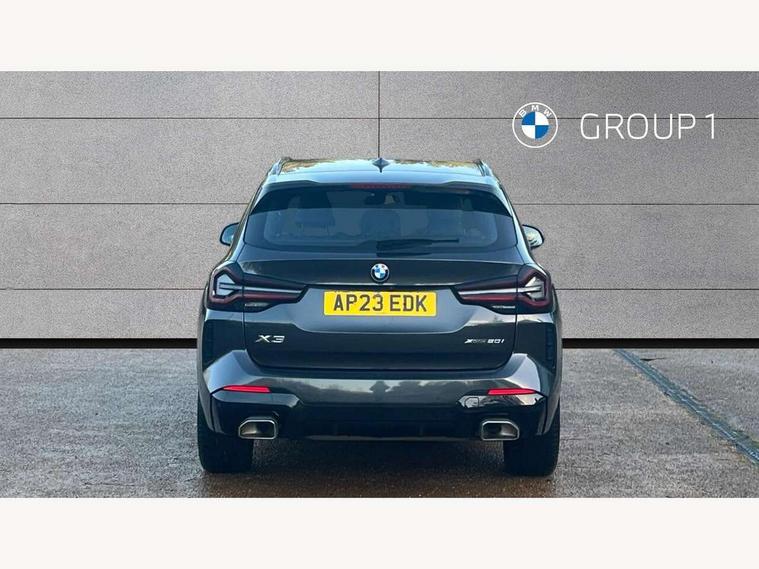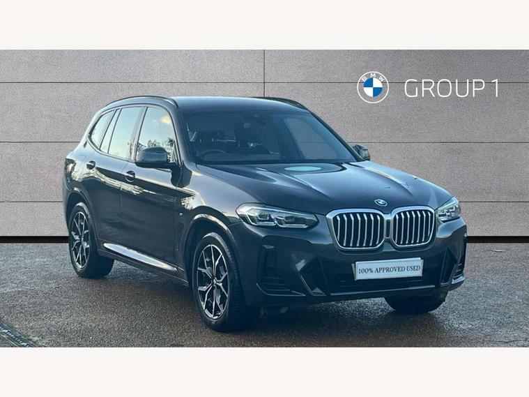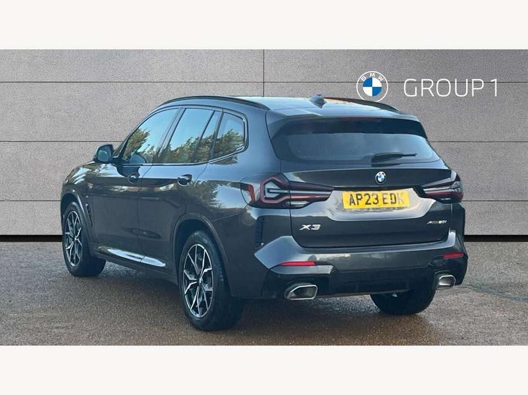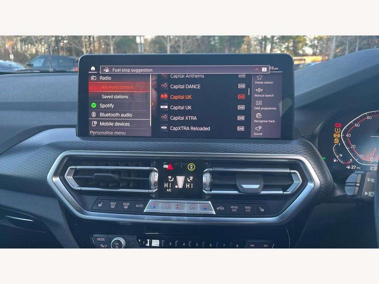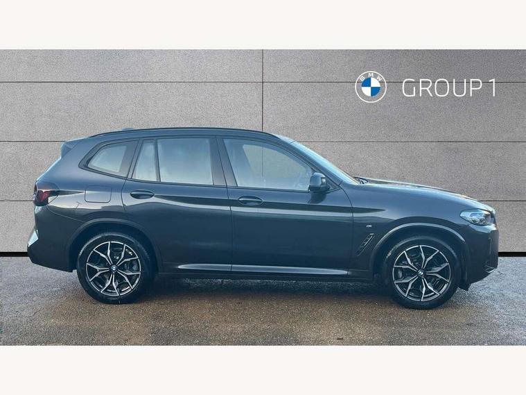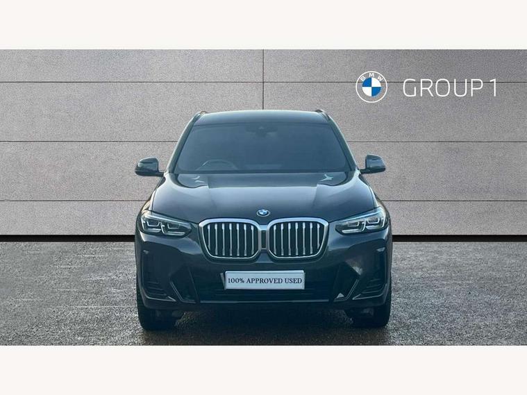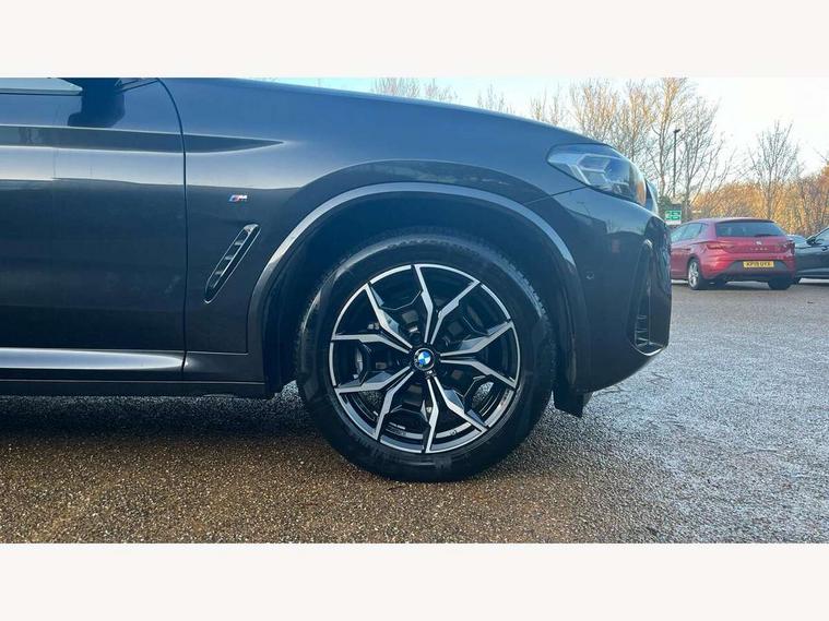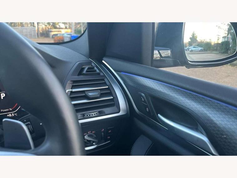 Active Guard, Attentiveness assist, BMW Live Cockpit Professional nav system including 12.3" instrument display + 12.3 high resolution control display, BMW Online services, BMW Teleservices, Brake pad wear indicator in front and rear, Check Control warning system for monitoring of lights and door/luggage compartment open warning, Condition based service - BMW service history, electronic service booklet, integrated owner's handbook, Connected drive services, Electric boot lid, Front/rear Parking distance control, iDrive touch controller with 8 favourite buttons, Instrument cluster with speedometer with mph readout, tachometer, fuel gauge and oil temperature gauge, Lights on warning by audio warning signal when ignition is switched off, Oil sensor for level and grade, warning by check control system, On board computer - average speed+fuel consumption, service interval, clock/date, odometer/trip meter, outside temperature display and ice warning, Optimum shift indicator, Personal Profile - automatic lock when driving away selectable, Run flat indicator, Stop/start system, Variable sports power steering with drive performance control Sport+ mode, Automatic transmission with gearshift paddles, Incorrect fuelling protection, M sport suspension, Multi-link rear suspension, BMW professional radio/CD/MP3, DAB tuner, Acoustic glazing, Automatic windscreen wipers and automatic headlight, Black finish on B pillars, Body colour door handles, Body colour electric adjust heated aspherical door mirrors, Body colour roof mouldings, Body coloured bumpers, Direction indicator, side repeaters, integrated in exterior mirrors, Dynamic brake lights, Exhaust tailpipes - dual, round, split left and right with chrome finisher, Fingertip control / anti-trap function on electric window, Folding wing mirrors with auto dimming, Follow me home headlights, Front and rear bumper system with replaceable deformation elements, Front and rear electric windows, Gloss chrome tailpipes finishers, Green tinted heat insulating glass, Heated windscreen washer jets, High beam assistant, High gloss black shadow line roof rails, High gloss shadowline exterior trim in decorative moulding side frame/recess cover/guide rail/B, C pillars/mirror frame and triangle with mirror base, High level 3rd brake light incorporating LED Technology, Interior rear view electrochromatic mirror with automatic anti dazzle function, LED tail lights, Lightweight engineering, M aerodynamic bodystyling, M Sport entry door sill strips, Model designation, Rain sensor, Rear side wing doors, Rear wing door, Rear wiper, Shark fin antenna, Side exterior M designation badges, Visible VIN plate, Welcome lighting, Windscreen wipers with adjustable interval, 12V power point in luggage area, 12V power socket in front centre console, 2 x USB Type C ports for charging and data transmission (front centre console) and 2 x USB Type C ports for charging (rear centre console), 3 rear headrests, 3 seat bench in 2nd row, 3 zone automatic air conditioning, 4 lashing points to secure luggage, 40:20:40 split folding rear seat with loading system, Ambient lighting, Anthracite headlining, Automatic interior light when door is opened/ignition switched off or via remote key, Floor mats in velour, Foldable storage floor with compartment, Four grab handles integrated in roof lining, Front and rear bottle holders integrated into door trim storage compartments, Front and rear side armrests integrated into door trim, Front centre armrest with storage compartment, Front footwell lights, Front head restraints, Front passenger seat, Front sports seats, Front/rear courtesy lights with soft on/off dimming, Front/rear reading lights, Heated front seats, Isofix rear child seat preparation, Leather gear knob, Lockable glove compartment, Luggage area underfloor compartment, Luggage compartment lighting, M sport leather steering wheel, Multifunction steering wheel, Parcel shelf removeable and storable under boot floor, Reach and rake adjustable steering column, Rear centre armrest with 2 cupholders, Removable / retractable luggage cover, Slope adjustable rear seats, Storage compartment in rear centre console and front/rear door trims, Sun visors with vanity mirrors and ticket pocket, Toolkit located in luggage compartment, Two front cupholders with removable oddments tray/lid, Connected pro pack - X3, ADB - Automatic Differential Brake, Anti-lock braking system (ABS) with brake assist, Automatic Stability Control (ASC), Battery safety cut-off, BMW emergency call, Brake drying, Brake energy regeneration, Braking pre-tensioning, Child locks on rear doors, Cornering brake control (CBC), Crash Sensor - activation of central locking release, hazard warning light and interior lighting, Deactivation of fuel pump in the event of a crash, Driver and front passenger front and side airbags with passenger deactivation and ITS front and rear head airbags, Driver and front passenger knee airbag, DSC+, Dynamic brake control, Dynamic Traction Control - DTC, Electromechanical parking brake, Hill descent control, Hill start assist, Seatbelt security check for front seats, Side impact protection, Three point seatbelts to all seats with front and outer rear pyrotechnic belt tensioners and seat belt force limiters, Two tone horn, Tyre pressure sensor, Ventilated front and rear disc brakes, Warning triangle and first aid kit, Central locking switch for all doors, fuel filler cap and luggage compartment, Electronic engine immobiliser, Locking wheel nuts, Remote control including two integrated key - one button for open/close all lockable content, windows and separate button for open luggage compartment, Remote control Thatcham category 1 alarm, Start/stop button with Comfort Go keyless engine start and auto Start/stop deactivation button, Low rolling resistance tyres,