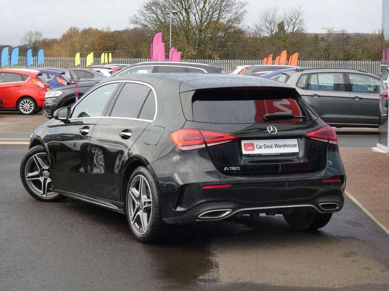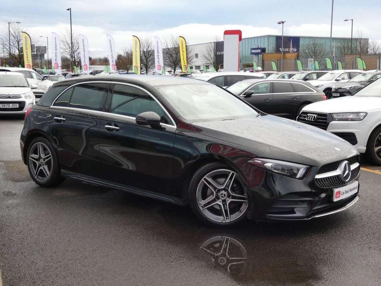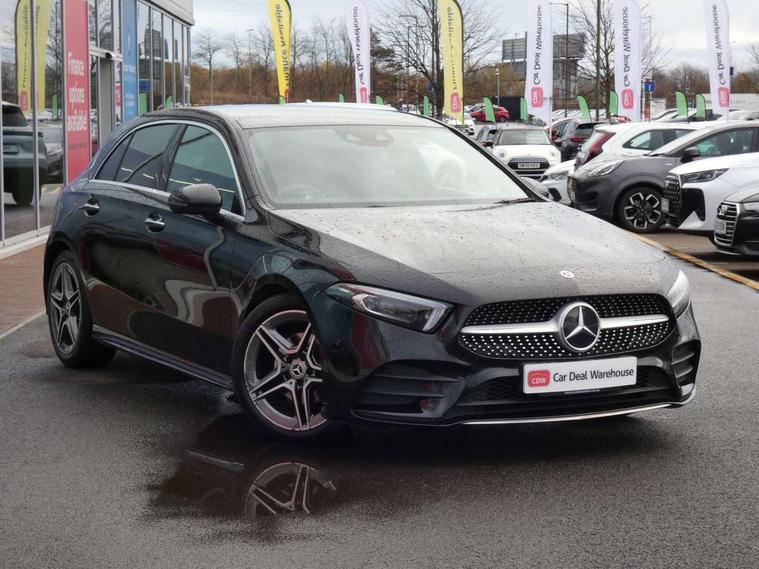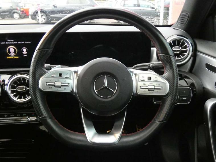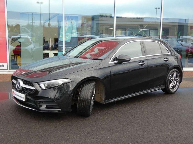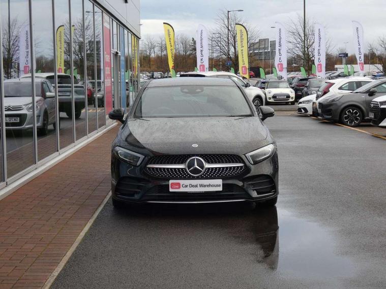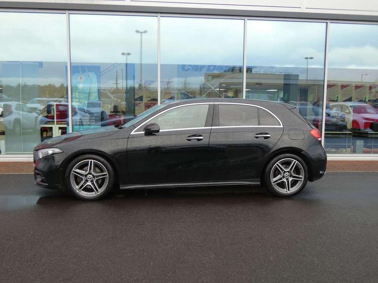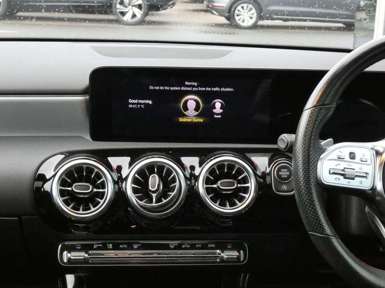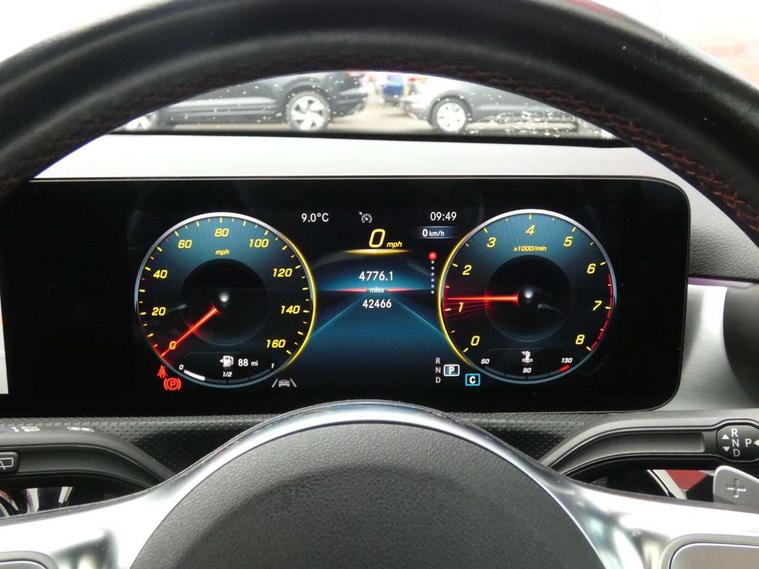 Ultrasonic sensors positioned in the front and rear bumpers, 10.25" Digital instrument cluster display screen, 10.25" media display, 180 degree rear view camera with parking guidelines, Active parking assist with visual and audible warning of detected obstacles, Attention assist, Brake pad wear indicator warning light, Car wash mode, Direct steering, Dual bluetooth interfaces, DYNAMIC SELECT with a choice of driving modes (ECO, Comfort, Sport and Individual), ECO start/stop function, Fluid level warning indicator for fuel, oil, coolant and washer fluid, Hard-disk navigation, Hey Mercedes Voice activation, Lamp failure indicator, MBUX augmented reality for navigation, Mercedes me connect including emergency call system, accident recovery, breakdown management and maintenance, Mercedes me remote services, Outside temperature gauge, Owners manual in English, Pre-installation for car sharing, Preinstallation for Mercedes Benz link, Service indicator (ASSYST), Smartphone integration with Apple CarPlay and Android auto, Traffic sign assist, Trip computer, Wireless charging, Lowered comfort suspension, Rear axle torsion beam, 10 speakers, 2 USB ports (type C) in rear stowage compartment and one in front of center console, DAB Digital radio, MBUX multimedia system with DAB digital radio and touchpad including satellite navigation, Mercedes-Benz advanced sound system - 225W, 4 Electric Front and Rear windows, Adaptive brake lights, AMG bodystyling - Front apron with splitter in chrome, rear apron with chrome trim and chrome visible trim elements in tailpipe, Black weather strip, Body colour bumpers, Body colour door handles, Body colour side skirt, Body coloured door mirrors, Chrome beltline trim, Diamond radiator grille with chrome pins and silver louvre + chrome insert, Electric adjustable and heated door mirrors with integrated LED side indicators, Exhaust system - Twin visible tailpipes in polished stainless steel, Headlamp assist automatic headlamp activation, Heated glass rear windscreen + timer control, LED high performance headlamps with integrated LED daytime running lights, LED tail lamp, LED third brake light, Multibeam LED with adaptive highbeam assist plus, Panoramic sliding sunroof, Privacy glass, Radio aerial, Rain sensing windscreen wipers with two sensitivity settings, Rear fog lights, Rear wiper, Window line trim strip in chrome, 3 Spoke flat bottom leather multi function steering wheel with perforated leather in grip area, 40:20:40 split folding rear seats, Artico man-made leather/Microfibre Dinamica upholstery with red contrast stitching, Auto Mercedes-Benz child seat recognition sensor, Black air vents with surround in silver chrome, Black roof lining, Brushed stainless steel sports pedals with rubber studs, Controller on centre console with chrome surround, Electrically adjustable front memory seats including lumbar support, Floor mats with stitched edging and AMG lettering, Front centre armrest with storage compartment, Front seat backs luggage nets, Front seat cushion length adjustment, Galvanished gear shift paddles on steering wheel, Heated front seats, Height/reach adjustable steering column, Illuminated front door sills with changeable cover, Interior lighting - 64 colour Ambient lighting, Interior mirror with reading lamps in black and frameless, ISOFIX and top tether child seat fixing points in two outer rear seats, Rear armrest with 2 cupholders, Rear head restraints, Seat occupancy sensor for front passenger seat, Sports seats with integrated headrests, Stowage compartment in centre console with retractable cover, Sunvisors with illuminated vanity mirrors, Touchpad on center console, Twin front cupholders, Two zone thermotronic luxury automatic climate control, Light and sight pack - A Class, Mirror package - A Class, Seat comfort pack - A Class, 3 rear 3 point seatbelts, ABS with Brake Assist, Active bonnet, Adaptive brake assist with hold function and hill start assist, Black seatbelts, Childproof locks manually operated for rear doors and electrically operated for rear power windows, Crash responsive emergency lighting, Driver and passenger head and side airbags, Drivers knee airbag, Dual stage driver/passenger airbags, Electronic parking brake, ESP curve dynamic assist, ESP with ASR, Front and rear seatbelt reminder, Front brake callipers with Mercedes Benz lettering, Tyre pressure monitoring system, Warning triangle and first aid kit, Window airbags, Alarm system/interior protection/immobiliser, Keyless entry lock/unlock, Keyless Go, Remote central locking and crash sensor with emergency opening function, Urban guard vehicle protection system with immobiliser and interior protection, Light aluminium with longitudinal grain interior trim, 18" AMG 5 twin spoke light alloy wheels in titanium grey with highsheen finish, Summer tyres, Tirefit sealant kit,