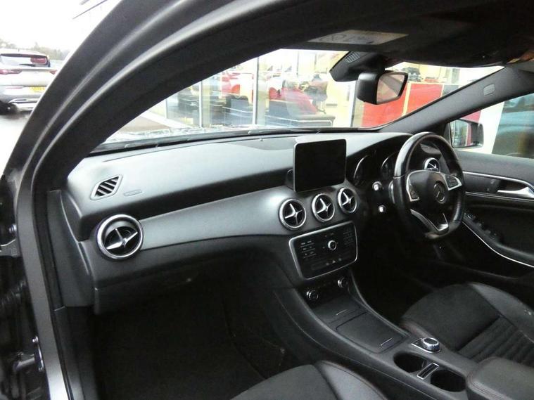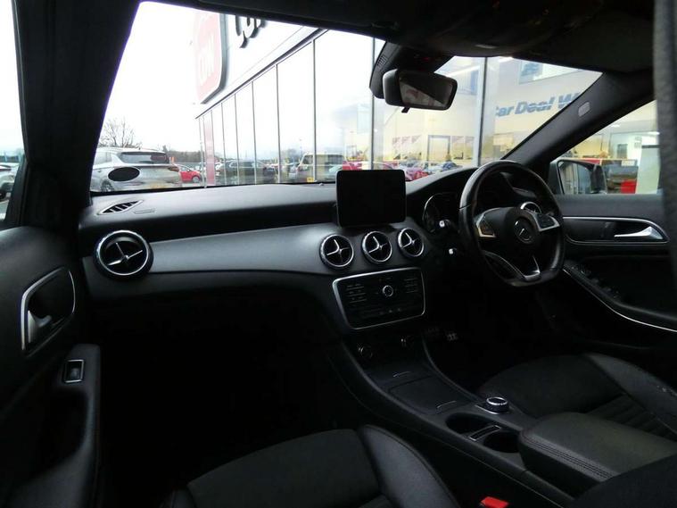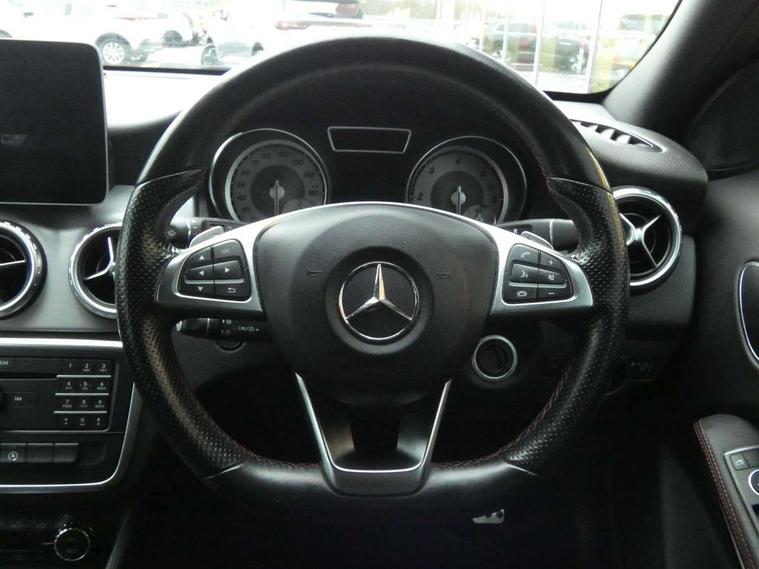 8" colour display screen, Attention assist, Collision prevention assist plus, DYNAMIC SELECT with a choice of driving modes (ECO, Comfort, Sport, Sport+ and Individual), Easy-pack tailgate - Powered opening/closing automatically, Low fuel level warning light, Multi function trip computer, Outside temperature gauge, Reversing camera, Service indicator (ASSYST), Smartphone integration with Apple CarPlay, Sports steering system, Comfort suspension, Bluetooth connectivity including audio streaming, Media interface, Mercedes Audio 20 radio/single CD, SD card slot, USB port, Adaptive brake lights, AMG front and rear apron, Aspherically curved door mirror glass, Automatic headlamp activation, Body colour bumpers, Body colour door handles, Body colour side skirt, Electric front windows, Electric heated + adjustable door mirrors, Electric rear windows, Heated rear window with timer, Heated windscreen wash system, LED indicators in door mirrors, LED tail lights, Rain sensor windscreen wipers, Rear privacy glass, Rear windscreen wiper with auto activation when reversing, Roof spoiler, Twin chrome exhaust tailpipes, 1/3 to 2/3 split folding rear seats, 12V power socket in centre console, 12V socket in luggage compartment, 3 spoke flat bottom multifunction leather steering wheel, Ambient lighting, AMG brushed stainless steel sports pedals with rubber studs, AMG floor mats with red stitching, Artico man-made leather/Dinamica upholstery, Auto Mercedes-Benz child seat recognition sensor, Black headlining, Centre console storage, Centre console with cupholders, Courtesy light in boot, Footwell lights, Front and rear headrests, Front centre armrest with storage compartment, Gearshift paddles, Height adjustable front seats, Height/reach adjustable steering column, Illuminated door sills, Illuminated glovebox, Interior door handle illumination, Isofix rear child seat preparation, Load securing rings in luggage compartment, Luggage compartment cover, Luggage compartment lighting, Luggage nets in boot, Overhead storage box/sunglasses holder, Parcel net in front passenger footwell, Parcel net on driver and front seat backrests, Rear armrest with 2 cupholders and load through provision, Rear Reading Lamps, Sports seats, Storage compartment under front seats, Sunvisors with illuminated vanity mirrors, THERMOTRONIC automatic climate control, 3 rear 3 point seatbelts, ABS with Brake Assist, Active bonnet, Adaptive brake system, Brake calipers with Mercedes-Benz lettering + perforated brake discs, Child proof door locks, Crash responsive emergency lighting, Drivers knee airbag, Dual stage driver/passenger airbags, Electronic parking brake, ESP with ASR, Front and rear seatbelt reminder, Front passenger seat occupancy sensor, Front side airbags, Hill start assist, Tyre pressure monitoring system, Warning triangle and first aid kit, Window airbags, Alarm system/interior protection/immobiliser, Chrome surround in electric key, Remote central locking, Chrome air vent surrounds, Leather gear knob with chrome insert, Light aluminium with longitudinal grain interior trim,