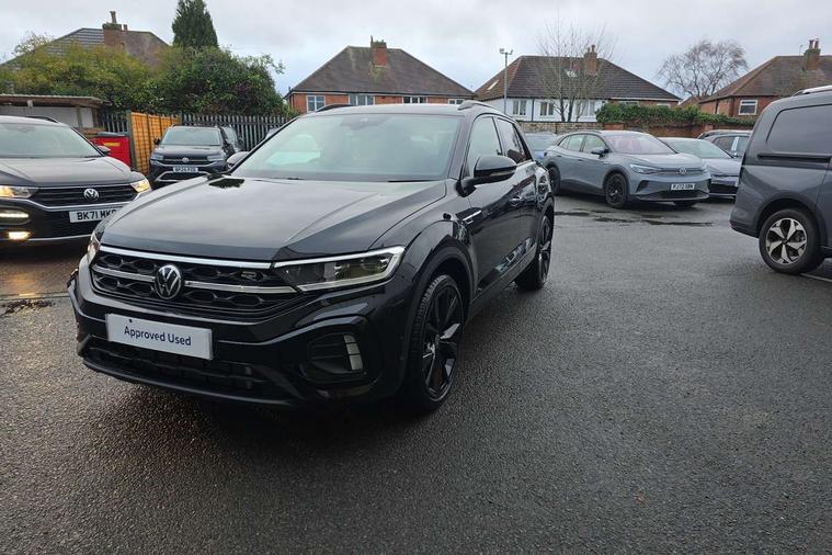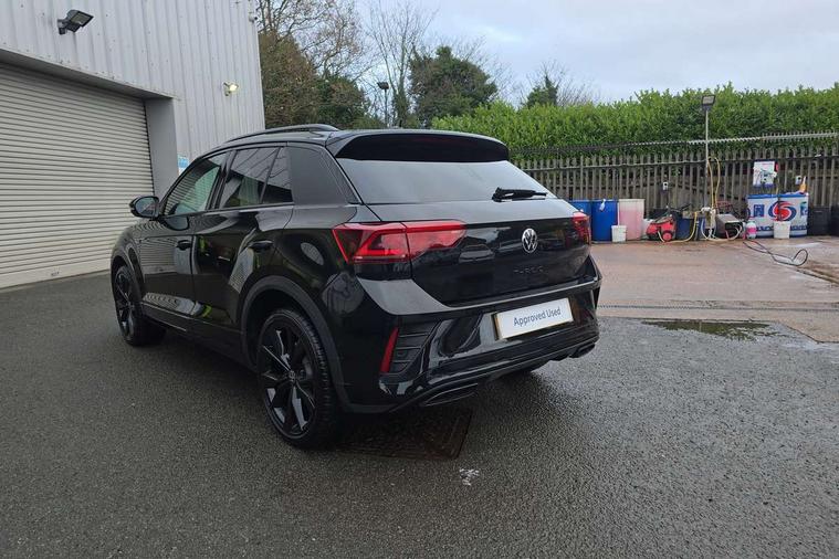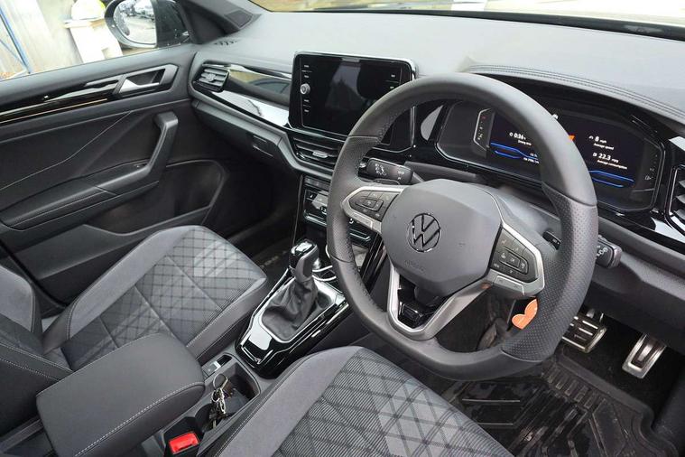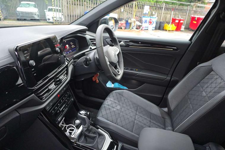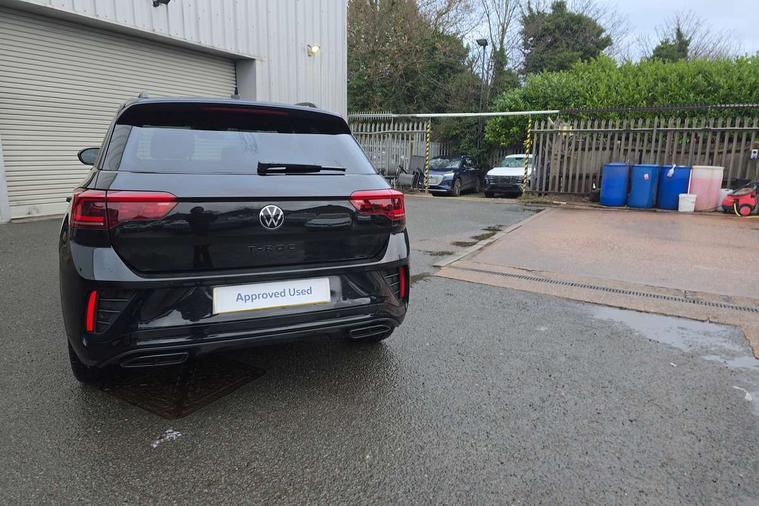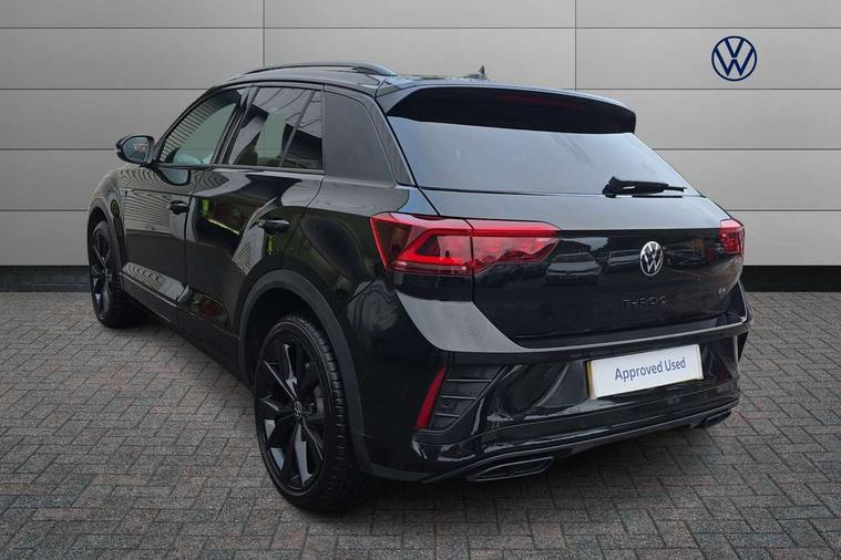 10.25" Digital cockpit pro, Advanced driver attention and drowsiness monitor, Emergency call service, Lane keeping system Lane Assist, Mobile phone interface, Modified key software - reduce switch off time for key status change to Long no motion, Online services, Park assist including front and rear parking sensors, Power assisted speed sensitive steering, Rear view camera, Service interval indicator, Tailgate/trunk lid release from outside, Think blue trainer driver tips and journey analysis, Warning sound and light for front seatbelts unfastened, Wireless app connect, Battery regeneration during braking, Start/stop function with battery regeneration, DAB Digital radio, Diversity antenna for FM reception, Music playback - MP3, WMA and AAC files, Premium USB cable in choice of either Apple or Android smartphone compatibility, SD card slot, Simultaneous pairing of 2 compatible mobile devices, Title and cover art display, We Connect and We Connect Plus functionality, Advanced dynamic light assist for LED matrix headlights, Auto dimming interior rear view mirror, Automatic hazard lights activation under emergency braking, Black roof rails, Dynamic cornering light, Dynamic headlight range control with self adjusting whilst driving, Electrically adjustable and heated door mirrors, Extended roof spoiler, Exterior ambient lighting, Exterior mirrors aspherical on driver side, convex on front passenger side, External USB type C socket and charging sockets, Front windscreen wiper with intermittent wipe and 4 position delay, Heated rear window, Illuminated front grille, IQ LED matrix headlights, LED 3rd brake light, LED rear number plate lights, LED rear tail lights with dynamic turn signal, LED separate daytime running light, Light mode for poor weather, rain, fog or snow, Power windows with comfort operation and circuit breaker, Privacy glass for rear side windows and rear window, R-Line design body coloured bumpers, Rain sensor, Rear exhaust tailpipe, Rear fog light on one side and reversing lights on both sides, Rear side wing doors, Rear wash/wipe with intermittent wipe setting, Remote electrically foldable door mirrors, puddle lights and reverse activated passenger's door mirror, Tilting and sliding panoramic sunroof with rear panoramic sunroof, 12V power socket in centre console, 3 rear head restraints, 3 seat bench in 2nd row, 4 load lashing points in luggage compartment, Air care climatronic air conditoning system with active combination filter and 2-zone temperature control, Chrome plated radiator grille inserts, air vent surrounds and light switch surrounds, Door and side trim panel with leatherette insert, Front + rear carpet mats, Front centre armrest, Front cupholders x 2, Front footwell illumination, Front reading light, Front scuff plates with R Line logo, Front seat back storage pockets, Glove compartment door with light, Instrument lighting, white adjustable panel illumination, Interior ambient lighting and surround lighting, Interior light delay, Isofix child seat preparation, Leather gearshift handle, Load-through provision with cup holder when folded down ('Unsplit rear seat bench, split folding backrest, with centre armrest), Luggage compartment lighting, Single front passenger seat, Stainless steel pedals, Storage compartment in left and right luggage area, Storage compartment in rear doors, Storage compartments in driver and front passenger doors, Sunvisors with illuminated vanity mirrors, Variable boot floor, height adjustable and removable, Black design pack - T-Roc black edition plus, Easy open package with safelock - T-Roc, 3 point height adj front seatbelts + pretensioners, 3 point seatbelts in outer rear with ECE label, ABS, Child locks on rear doors, City emergency braking and pedestrian monitoring, Driver and front passenger airbag with front passenger airbag deactivation, Driver and front passenger safety-optimised head restraints, Drivers seatbelt reminder, Electronic parking brake, Electronic Stability Control (ESC) inc EDL (Electronic Differential Lock) and ASR (Traction Control), Front and rear passengers curtain airbag system including front side airbags, Hill start assist, Predictive pedestrian protection, Rear disc brakes, Two tone horn, Tyre pressure loss indicator, Volkswagen roadside assistance, Keyless locking and starting system keyless access with safelock, Gloss deep iron dash trim, 19" Misano alloy wheels with low rolling resistance and anti theft wheel bolts, Tool kit, Trims for alloy wheels, Tyre mobility kit including compressor and sealing foam,