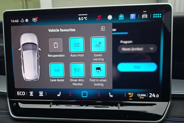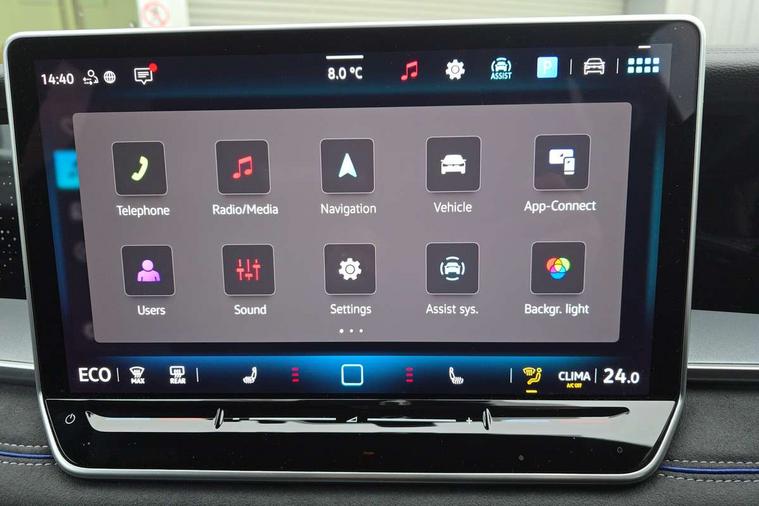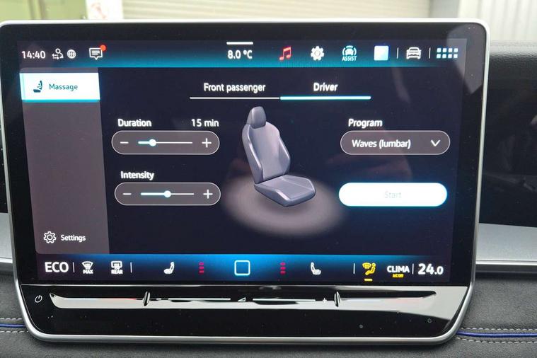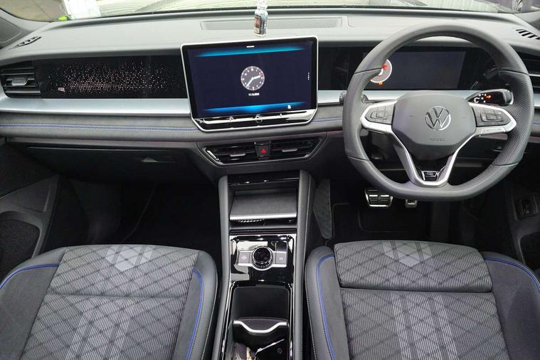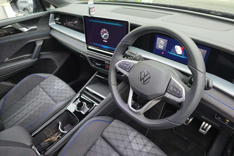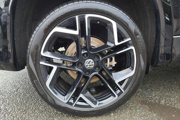 Adaptive cruise control (ACC), Digital Cockpit Pro - 10.25" high resolution dash display screen with customisable menus and information, Driver alert system, Driver attention monitoring system, Dynamic road sign display, E-Sim card for online connectivity, eCall emergency call system, Lane change system, Side assist, Rear traffic alert and Exit warning system, Multifunction front facing camera, Oncoming vehicle braking when turning including swerve support, Progressive steering, Start/stop system with regenerative braking, Voice activation spoken voice commands for telephone and navigation system, Warning signal and warning light for front and rear seatbelts not fastened, Wireless App-Connect, Adaptive chassis control DCC pro includes driving mode selection, Charging cable Mode 2 Type 2 / G (10A), Charging cable Mode 3 Type 2 / 3 (16A), Front shock absorption G08, Front wheel drive, Rear shock absorption, Digital radio reception (DAB), Diversity antenna for FM reception, Air intake with Chrome trim, Auto dimming interior rear view mirror, Automatic headlight control system, Body colour door handles, Chrome moldings on the side windows, Coming/leaving home lighting function, Dynamic headlight range control with dynamic cornering light, Exterior mirrors convex on the left and aspherical on the right, Heat insulating glass in side and rear windows, Illuminated Volkswagen logo rear with animation, Laminated safety glass windshield, heat insulating, LED 3rd brake light, LED separate signature day time running light, Puddle lights, Rain sensor windscreen wipers, Rear fog light on one side, reversing light on both sides, Rear side wing doors, Rear wiper, Reverse activated passenger's door mirror, Surround lighting with welcome light, Volkswagen logo in front, illuminated lighting animation with wake up/goodbye scenario and illuminated door handles, 10 colour interior ambient lighting, 12V outlet in center console rear and in luggage compartment, 3 rear headrests, 3 rear seat bench in 2nd row, split folding, longitudinally movable and folding with load-through hatch, Black roof lining, Brushed stainless steel pedals, Carpet mats, front and rear, Centre console with illuminated storage compartment with sliding cover and two drinks holders, Chrome elements on the mirror switch and power window switches and door pulls, Door and side trim panel insert in Art velour, Flat luggage compartment floor, Front centre armrest, Front scuff plates in aluminium, ISOFIX anchors for child seats on outer rear seats and front passenger seat compatible with i-Size, Mechanical rear seat release, Power adjustable lumbar support in front, Single front passenger seat, Sports comfort seats in front, Sun visors with illuminated vanity mirrors, 3 Point seat belts in front with pretensioners, 3 point seatbelts in outer rear with ECE label, Autonomous emergency braking front assist with pedestrian and cyclist monitoring, Driver and front passenger airbag with front passenger airbag deactivation, Electronic parking brake with auto hold, First aid kit with warning triangle and safety vest, Front and rear curtain airbags, Front and rear side airbags, Front centre airbag, Front disc brakes, Hill start assist, Rear disc brakes, Two tone horn, Decorative material set R-Line, Interior door handle in matte chrome, Tool kit for tyre mobility set, Tyre mobility kit including compressor and sealing foam. In lieu of spare wheel,