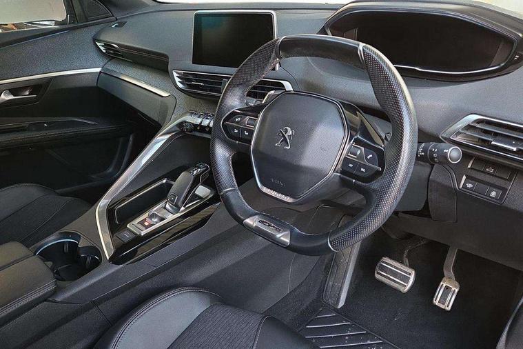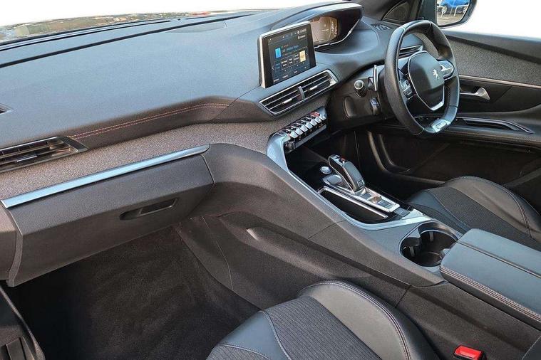 'Lights On' Reminder warning buzzer, 3D connected navigation + voice control + Peugeot connect SOS and assistance, Bluetooth telephone facility, Digital clock, Exterior temperature indicator with ice warning, Front and rear parking sensors, Lane departure warning system, Mirror screen with mirror link, apple carplay and android auto, Multi function trip computer, PEUGEOT i-Cockpit with 8.0" capacitive touchscreen in centre console, PEUGEOT i-Cockpit with amplify (choice of two configurable interior ambiences), PEUGEOT i-Cockpit with compact sports steering wheel, PEUGEOT i-Cockpit with configurable 12.3" Head-up digital instrument panel, Smartphone charging plate, Speed limit recognition and recommendation, Sports button, Diesel particulate filter, Dynamic stability control and electronic anti-skid system, DAB Digital radio, Steering column mounted multifunction controls, USB socket, 2 X Rear number plate lights, Aluminium longitudinal roof bars, Automatic hazard light activation upon heavy brake application, Automatic triggered rear windscreen wiper in reverse gear, Black and chrome front wing trim, Black bumper protection plate, Body colour door handles, Body colour rear spoiler with stainless steel edging trim, Body coloured bumpers, Body protectors (bottom of front and rear bumpers + wheel arches + protection at bottom of doors) in black, Chrome bumper inserts, Chrome front fog light trim, Chrome radiator grille and surround, Chrome rear bumper facia, Chrome side window trim, Dark tinted rear side windows + tailgate window, Door mirror mounted LED Peugeot lion approach lights, Electric operated/heated door mirrors, Front windscreen wiper with magic wash cleaning system, Full LED headlights with LED fog lights with static cornering function, sports front bumper and grille, Gloss black finish B and C pillar, Gloss black rear cluster connecting strip, Gloss black windscreen surround, GT Line emblem in satin copper, Headlights left on audible warning, Heated rear windscreen with integrated antenna, LED daytime running lights, LED sequential scrolling front indicators, LED side indicator lights integrated into door mirrors, Lion grey front bumper scuff plate, Nera black door mirrors, One touch electric front/rear windows with pinch protection, Panoramic opening glass roof, Power folding door mirrors with blind spot detection indicator and auto dipping function in reverse gear, Radiator grille in chrome edge trim with chequered design and black 'PEUGEOT' lettering, Rear LED Peugeot signature 'Claw Effect' lights, Sports front bumper, Stainless steel roof arches, Twin exhaust tailpipe, 1/3 to 2/3 split folding rear seats, 12V Sockets in dashboard, rear cabin and load area, 2 cupholders in front centre console, 2 rear reading spotlights, 230V socket on rear centre console, 2x Rear coat hooks, 3x Isofix child seat fittings in the front passenger and outer rear seats, 4 Grab handles retractable and damped, 4 Lashing eyes in boot, Aikinite stitching in armrest, gear lever and dashboard facia, Automatic gear lever in satin chrome, Blue ambient lighting for connecting zone, Blue ambient lighting to front door panels, central storage and cupholders, Blue ambient lighting to head up instrument panel, Centre front armrest with butterfly wing opening and illuminated storage compartment, Driver and front passenger seat height adjustment, Driver seat manual adjustment, Dual zone automatic climate control, Electric power steering with reach and rake adjustable steering column, Fixing rings 4 in load compartment, Flocked front door pocket interior with blue ambient lighting, Flocked glovebox interior, Fold flat front passenger seat with picnic table, Footwell illumination, Front headrests, Front interior light with 2 reading spotlights and rear interior light with timer, Front seat back map pockets, Gear shift indicator, Height adjustable headrests, Illuminated glovebox, Illuminated vanity mirrors, LED interior lighting in storage spaces and load area, Mistral floor mats with Aikinite contrast stitching, Mistral full grain perforated leather steering wheel with aikinite stitch detail and satin chrome 'GT Line' emblem, Rear armrest with ski flap and two cup holders, Rear centre console ventilation system, Rear headrests, Reclining front seats, Roof LED interior lighting, Roof lining - Mistral black, Satin chrome dashboard trim, Satin chrome digital instrument panel and touchscreen trim, Satin chrome front door panel recess trim, Satin chrome interior door handles, Satin chrome scorpion's tail and toggle switch trim, Seatbelt not fastened audible and visual alert for front seats, Seatbelt unfastened on the move audible and visual alert for front and rear seats, Stainless Steel Scuff Plates, Two position boot floor, Safety pack - 3008, Safety Plus Pack - 3008, Visibility pack - 3008, 3x Rear three-point retractable seatbelts with force limiters in the outer rear seats, Adaptive driver and front passenger airbags with passenger airbag deactivation function, Anti-lock braking system with electronic braking distribution and emergency braking assistance, Auto city emergency braking, Driver and front passenger side airbags, Driver SMART airbag, Electric child locking functionality on rear windows and doors, Electric parking brake, ESP with ASR, Front and rear curtain airbags, Front optimised safety headrests and 3 x rear retractable headrests with height adjustable, Front passenger SMART airbag with deactivate switch, Front three point retractable seatbelts with pre tensioners and force limiters, Front ventilated disc brakes and rear disc brakes, Height adjustable front seatbelts, Hill start assist, Tyre pressure sensor, Anti theft alarm, Automatic door lock/re-lock after 30 seconds, Central locking button on dash, Deadlocks, Electric tailgate with Peugeot open & go system, Electronic immobiliser, Locking wheel bolts, Remote control central locking with two plip keys, Brumeo fabric Dashboard, front and rear door
