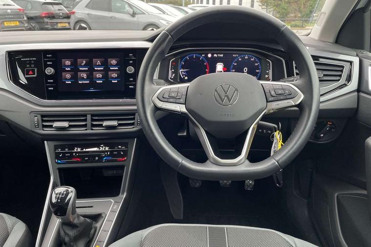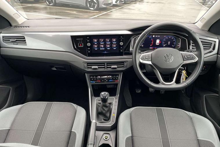 Adaptive cruise control without follow-to-stop and speed limiter, Bluetooth mobile phone interface, Digital Cockpit Pro with 10.25" Display, Driver alert system, Dynamic road sign display, Emergency call service, Power assisted speed sensitive steering, Preparation for We connect and We connect plus, Speedo and rev counter, electronic odometer, trip, service interval display and fuel gauge, Standard rear axle, Travel Assist - Lane keeping system and traffic jam assist, Travel assist including emergency assist, Trip computer, Warning signal and warning light for front and rear seatbelts not fastened, Washer fluid level indicator, Wireless app connect, Front wheel drive, Rear shock absorpion, Start-stop system with battery regeneration (recuperation - energy recovery during braking), DAB Digital radio, Diversity antenna for FM reception, Front and rear 6 speakers, Automatic dimming interior rear view mirror, Automatic headlights, Body colour door handles, Body coloured bumpers and radiator grille with chrome trims, Electric front windows, Heat insulating darkened glass in side and rear windows, Heat insulating glass windscreen, LED separate daytime running lights with coming/leaving home function, Power folding adjustable/heated exterior mirrors and front passenger exterior mirror lowering function, Rain sensor, Rear electric windows, Rear fog light, Rear side wing doors, Rear windscreen washer and wiper with interval delay, Third brake light, 12V power socket in centre console, 2 USB-C ports in the front, 2 USB-C charging sockets on the center console in the rear, 3 rear head restraints, 60/40 split folding rear seat and rear seat bench not split, Air care climatronic air conditoning system with active combination filter and 2-zone temperature control, Ambient lighting, Chrome plated radiator grille inserts, air vent surrounds and light switch surrounds, Door and side trim panel, Driver and front passenger seat height adjustment, Driver/passenger sunvisors with illuminated vanity mirrors, Front + rear carpet mats in recycled material, Front centre armrest, Front footwell illumination, Front seat backrest storage pockets, Front sports comfort seats, Handbrake lever handle in leather, Headliner in recycled material, Isofix child seat preparation easy-fit (for two outer rear seats, and front passenger seat) compatible with I-size, Leather trimmed gear knob, LED interior light with switch off delay and dimmer, 2 reading lights front and rear, Luggage compartment cover, Luggage compartment floor, Luggage compartment lighting, Lumbar adjustment for front seats, Multifunction steering wheel, Single front passenger seat, Standard pedal cluster, IQ LED matrix headlights pack - Polo, Light and vision pack - Polo, 3 point height adj front seatbelts + pretensioners, 3x3 point rear seatbelts, ABS, Driver and front passenger airbag with front passenger airbag deactivation, Drivers and front passengers safety optimised head restraints, ESC (Electronic stability control) + EDL (Electronic Differntial lock) and ASR (Traction control), Extended and predictive pedestrian/ cyclist protection, Front curtain and side airbags with center airbag, Front disc brakes, Hill hold control, Manual child lock in rear doors, Rear drum brakes, Single tone horn, Tyre pressure loss indicator, Alarm with interior protection, Anti-theft alarm system with interior monitoring, backup horn, and towing protection, Anti-theft wheel bolts, Electronic engine immobiliser, Chrome applications on rotary light, mirror adjustment, window regulator switches, outlet with frame in black, Low rolling resistance tyres,