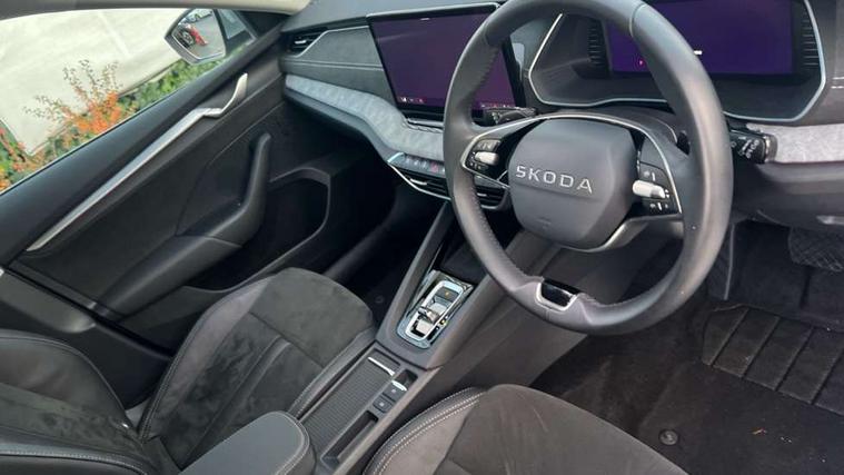 1x USB Typc C port in rear view mirror, 4x USB Type C ports - 2x in front centre console and 2x in rear (45W), Drive mode selection, Driver fatigue sensor, eCall emergency system, Electro-mechanical power steering, Front assist system, Traffic jam assist, Traffic sign recognition, Turn Assist, Virtual Cockpit - 10.25" digital display, Voice control system, Wireless charging (15W) with cooling function, Wireless SmartLink for Apple CarPlay and Android Auto, 13" touchscreen display with navigation, DAB Digital radio, Aero front windscreen wipers with intermittent function, Auto dimming rear view mirror, Body colour bumpers, Body colour door mirrors and handles, Chrome grille surround, Chrome roof rails, Chrome strip in lower front bumper, Chrome window surrounds, Electric front and rear windows, Heated rear windscreen, High level third brake light, Ice scraper in fuel cap, LED daytime running lights, LED Headlights, Logo projection in front doors, Rain and light sensors, Rear fog light on one side, Rear privacy glass, Rear side wing doors, Rear spoiler, Rear window wiper, 12 volt socket in boot, 3 rear headrests, 3 seat bench in 2nd row, 4 foldable roof handles, Front head restraints, Heated front seats, Illuminated glovebox, Interior door handles in dark chrome, Jumbo Box storage, Luggage compartment lighting x2 lights, Mechanical rear seat release from boot, Single front passenger seat, Steering wheel in black leather with black stitching, Storage compartments in left and right of boot, Sun visors with mirrors, Sunglasses storage, Ticket holder, Umbrella in door panel, Unsplit rear bench seat, split folding backrest with centre armrest with cupholder, Comfort package - Octavia Estate, Simply clever package premium - Octavia, 3x3 point rear seat belts, Alarm with interior monitoring, tilt sensor and back up horn, Curtain airbags and front side airbags, Driver and front passenger airbags, Drivers knee airbag, Electronic parking brake, ESC including ABS, EBV, MSR, ASR, EDS, HBA, DSR, Front central airbag, Hill hold assist, ISOFIX on front passenger seat and outer rear seats, Passenger airbag deactivate switch, Three point seat belts in front and rear, Two tone horn, Tyre pressure monitor, Visual and acoustic seat belt reminder, Warning reflectors in front door, Anti-theft wheel bolts, Keyless start/stop, Remote central locking, Chrome air vent surrounds,