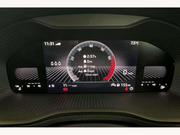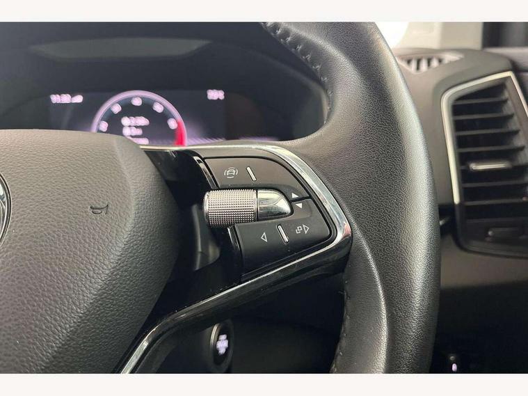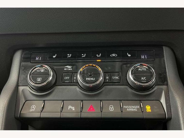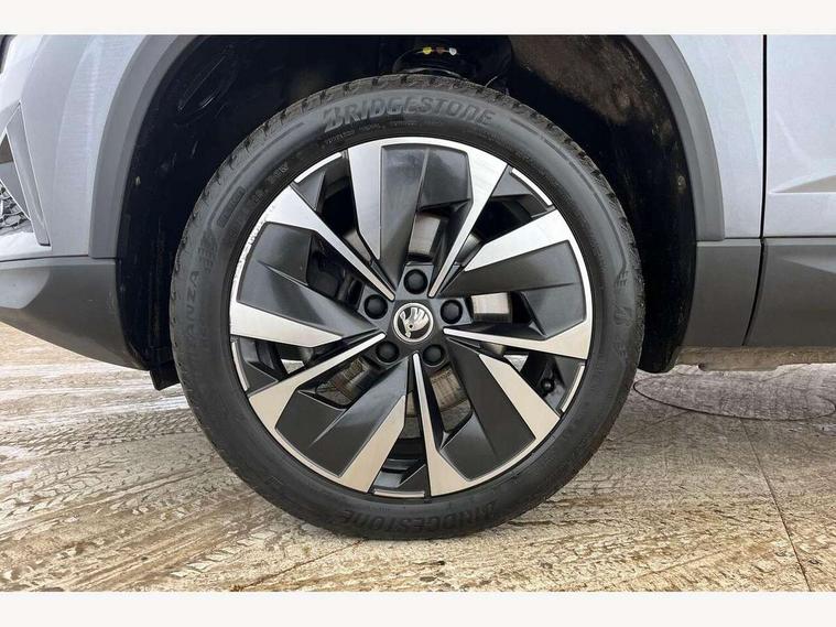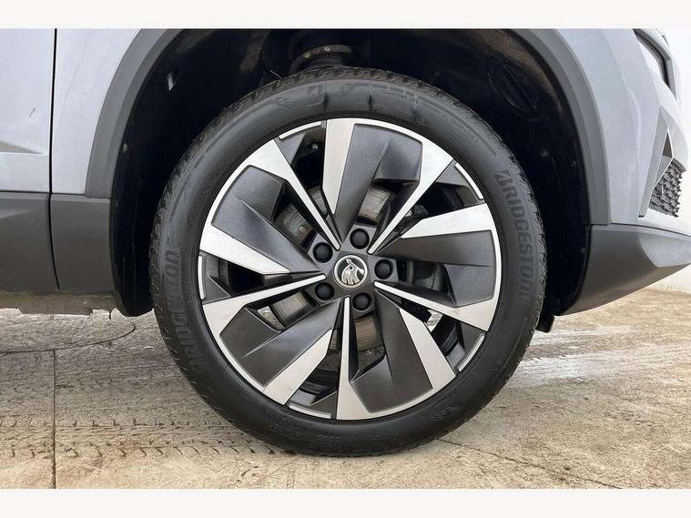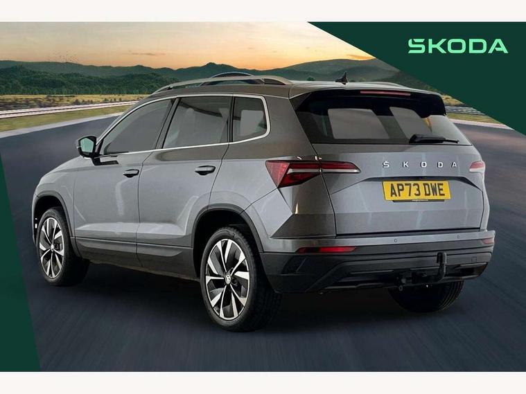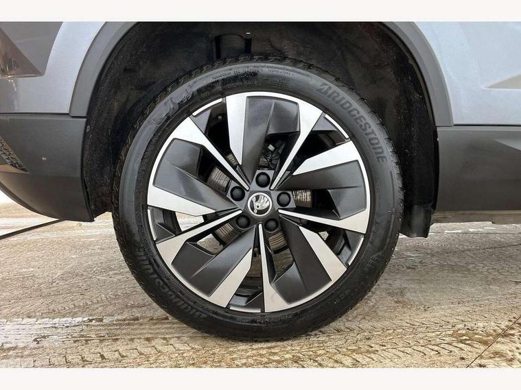 8" Digital display, Care connect, Driver fatigue sensor, Emergency services call system, Outside temperature gauge, Service interval indicator, SmartLink wireless for Apple and wired for Android, Start/stop system with regenerative braking, USB C Port x 2 in front centre console, 8 Speakers, DAB radio with Bluetooth, USB connection, Acoustic glass, Aero front windscreen wipers with intermittent function, Auto dimming rear view mirror with light and rain sensors, Black electric window control buttons, Body colour door mirrors and handles, Dynamic headlight range control with cornering light function, Electric front and rear windows with child proof lock, Heated rear windscreen, LED daytime running lights, LED rear lights with high functionality welcome effect and dynamic indicators, Light assistant (coming/leaving home/tunnel light), Plastic scuff plates, Privacy glass, Rear side wing doors, Rear spoiler, Rear window wiper with washer system and intermittent control, Safety reflectors on front doors, 1.5 litre bottle holders in driver and front passenger door panels, 12V socket in boot, 12v socket in front centre armrest with storage compartment and rear air vents, 2 spoke leather heated multifunction steering wheel, 2 x Tablet holder, 3 rear height adjustable headrests, 3 seat bench in 2nd row, 4 foldable roof handles with rear coat hooks, Black floor carpet, Chrome inner door handles, Double sided boot floor, Foldable hooks in the boot, Front head restraints, Height adjustable front three point seats belts with tensioners, Height/reach adjust steering wheel, Ice scraper, Illuminated glovebox, Illuminated luggage compartment, Isofix child seat preparation for front passenger seat, Isofix child seat preparation outer rear, Manual lumbar support for front seats, Pen holder, Pollen filter, Rear boot cover, Rear reading lights, Rubbish bin door, Safety vest holder, Single front passenger seat, Storage box in upper central dashboard closed, Sunvisors with illuminated vanity mirrors, Textile floor mats, Ticket holder, VarioFlex seats with standard rear seat release, Boot pack - Karoq, Design Pack - Karoq, Parking pack - Karoq, Automatic door unlocking in case of crash, Automatic fuel cut off in case of crash, Child locks on rear doors, Driver airbag, Electronic parking brake with auto hold function, Emergency rear braking signal, ESC including ABS, MSR, ASR, EDS, HBA, DSR, RBS, MKB and traction control, Front side airbags, Hill hold control, Knee airbags, Passenger airbag with switch-off function, Pedestrian monitor, Seatbelt reminder signalisation and pretensioner for all seats, Three point seatbelts rear, Two tone horn, Tyre pressure display, Tyre pressure monitor, Alarm with interior monitoring, back up horn and tilt sensor with safe function, Electronic engine immobiliser, Keyless entry and start/stop, Remote central locking with 2 remote folding keys, Chrome framed air vents, 18" Miran alloy wheels in black, Anti-theft wheel bolts protection, Tool kit,
