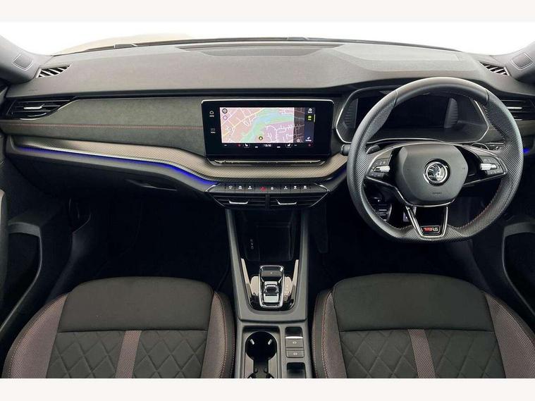 1x USB Type C port in rear view mirror (charging only), 2x USB Type C ports in rear of front centre armrest (charging only), Bluetooth system, Columbus satellite navigation with 10" touchscreen display, Driver fatigue sensor, eCall emergency system, Front and rear parking sensors with manoeuvre assist, Front assist system, Progressive dynamic steering, Speed limiter, Turn Assist, Virtual Cockpit - 10.25" digital display, Virtual pedal with electrically operated boot door (Rear LED lights (high functionality), dynamic indicators, Voice control system, Wireless SmartLink for Apple Car Play, Front and rear stabilizers, 2x USB Type C ports (for charging and data transfer), 8 Speakers, DAB Digital radio, Aero front windscreen wipers with intermittent function, Auto dimming rear view mirror, Body colour door handles, Chrome exhaust tailpipes, Door sills with vRS logo, Electric front and rear windows, Exterior gloss black sports styling including front grille, side strip, window surrounds, door mirror and badging, Full LED Matrix headlights with AFS, rear LED lights (high functionality) and dynamic indicators and cornering front fog lights, Headlight washers, Heated rear windscreen, High level third brake light, Ice scraper in fuel cap, LED daytime running lights, Rain and light sensors, Rear fog light on one side, Rear privacy glass, Rear side wing doors, vRS bumpers and lip spoiler, 3 rear headrests, 3 seat bench in 2nd row, 4 foldable roof handles, Aluminium pedals, Black headlining, Black microsuede padded dash panel with red contrast stitching, Chrome inner door handles, Front centre armrest, Front head restraints, Heated front seats, Illuminated glovebox, Leather trimmed gearshift lever, Luggage compartment lighting x1 light, Mechanical rear seat release, Parcel shelf - folding, Single front passenger seat, Sunglasses storage, Textile floor mat set, Three spoke leather sports multifunction steering wheel with paddles, Ticket holder, Umbrella in door panel, Unsplit rear bench seat and split folding backrest, LED interior light pack - Octavia, 3 point front/outer rear seatbelts+pre-tensioners, Alarm with interior monitoring, tilt sensor and back up horn, Automatic door unlocking in case of crash, Automatic fuel cut off in case of crash, Automatic warning lights in case of emergency braking, Curtain airbags and front side airbags, Driver and front passenger airbags, Drivers knee airbag, Electronic parking brake, ESC including ABS, EBV, MSR, ASR, EDS, HBA, DSR, Front and rear disc brakes, Front central airbag, Hill hold control, Hill start assist, ISOFIX on front passenger seat and outer rear seats, Manual rear child locks, Passenger airbag deactivate switch, Pro active services, Red brake calipers, Two tone horn, Tyre pressure monitor, Visual and acoustic seat belt reminder, Warning reflectors in front door, Door locks with immobiliser, Keyless entry and start/stop including rear doors, Remote central locking, Carbon optic decorative inserts, Gloss black air vent surrounds, 19" Altair anthracite alloy wheels,