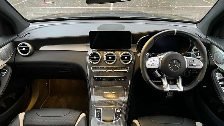 360 degree camera, Active parking assist with parktronic system, AMG track pace, Attention assist, Bluetooth interface for hands free telephone, Collision prevention assist plus, DYNAMIC SELECT with a choice of driving modes (ECO, Comfort, Sport, Sport+ and Individual), Easy pack automatic powered tailgate, ECO start/stop function, Hard disk navigation, Hey Mercedes Voice activation, Instrument cluster with12.3-inch digital instrument cluster display. High resolution instrument cluster screen with choice of three display styles, MBUX augmented reality for navigation, MBUX Interior assistant, Mercedes connect me with remote online services, Multi function trip computer, Outside temperature display, rear seatbelt status indicator, Remote boot release, Service indicator (ASSYST), Smartphone integration with Apple CarPlay and Android auto, Traffic sign assist, Wireless charging, 66 litre fuel tank, Air body control air suspension for front and rear axles with continuously adjustable damping, AMG electronic rear axle limited slip differential lock, AMG performance 4MATIC+, AMG SPEEDSHIFT MCT 9 speed automatic sports transmission steering wheel gearshift paddles and RACE START function, silver aluminium gear shift paddles, Petrol Particulate Filter (PPF), Burmester surround sound system, DAB Digital radio, MBUX multimedia system with DAB digital radio and touchpad including satellite navigation, Media display 10.25-inch touchscreen display, Pre installation for Mercedes Benz Link, USB ports x 2 in centre console, Adaptive brake lights, AMG bodystyling with 2 black louvres in outer air intakes, AMG bodystyling with rear apron and diffuser fins, AMG radiator grille with black vertical louvres and trim strip in high gloss chrome, Badging - V8 BITURBO 4MATIC+ lettering on front wings, Body coloured bumpers, Electric panoramic glass sunroof, Electric windows one touch open/close, Electrically adjustable and heated door mirrors, Front and rear exterior chrome trim, Headlamp assist automatic headlamp activation, LED tail lamp, Multi beam LED headlamps with 84 indiviually control LED, daytime running lamps, Active Light, cornering light, enhanced fog lamp, adaptive Highbeam Assist, Privacy glass with dark glass from B pillar backwards, Rain sensor windscreen wipers, Range adjustable headlights, Rear wiper, Running boards, Tinted glass all round with single layer safety glass, 2 way rear head restraints, 3-spoke multifunction AMG steering wheel in black nappa leather with flattened bottom section, chrome inserts and perforated leather in grip area, 40:20:40 split folding rear seats, Ambient lighting, AMG floor mats with edging and embroidered AMG lettering, AMG performance seats, Automatic child seat recognition sensor, Dividing net - rear, Double cup holder in centre console, Front armrest with storage box, Front door sills with Mercedes Benz lettering, Front head restraints, Heated front seats, Illuminated and lockable glove compartment, Nappa leather upholstery, Rear top tether child seat ISOFIX attachment, Sports pedals with stainless steel surfaces and rubber studs, Steering wheel with touch control buttons, THERMATIC automatic climate control, AMG Driver's package - GLC, Easy-pack load compartment cover, Interior lighting pack - GLC, Keyless Go comfort pack - GLC, Memory pack - GLC, Mirror pack - GLC, Storage pack - GLC, 3 rear 3 point seatbelts, Active bonnet, Adaptive brake system with HOLD function and brake drying in the wet, ASR, Brake calipers with Mercedes-Benz lettering + perforated brake discs, Child proof door locks, Dual-stage airbags - driver and front passenger, driver knee bag and window bags for driver, front passenger and rear passengers, Electronic parking brake, Electronic stability programme (ESP) with curve dynamic assist and cross wind assist, Front and rear seatbelt reminder, Front passenger seat occupancy sensor, Hill hold function, Seat belts in Crystal grey, Tyre pressure monitoring system, Warning triangle and first aid kit, Alarm system/interior protection/immobiliser, Automatic door locking, Remote central locking, Run flat tyres,