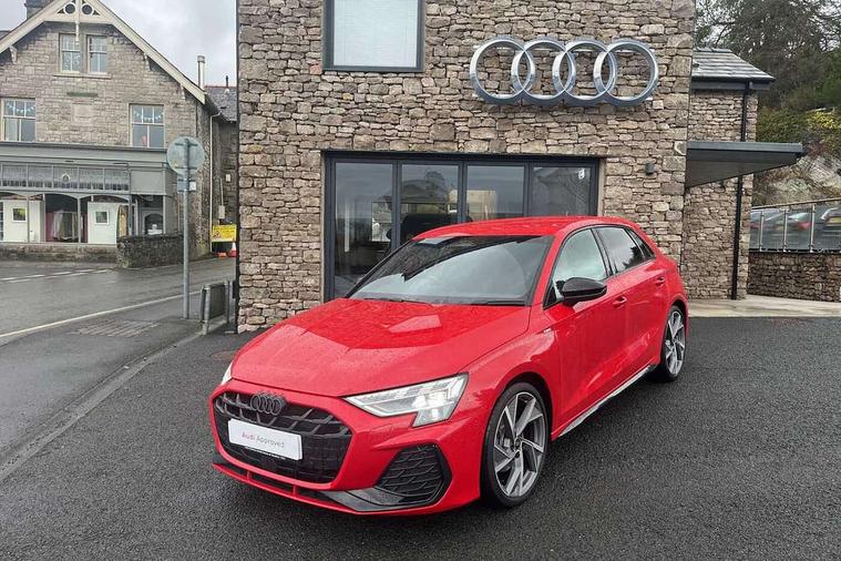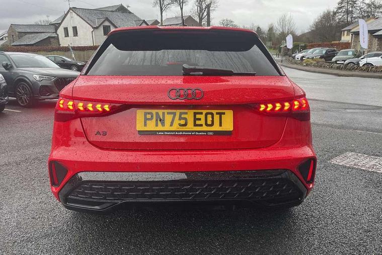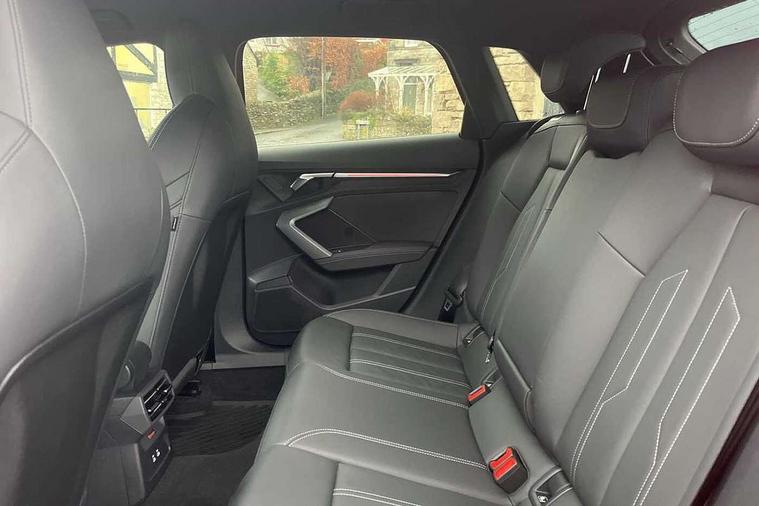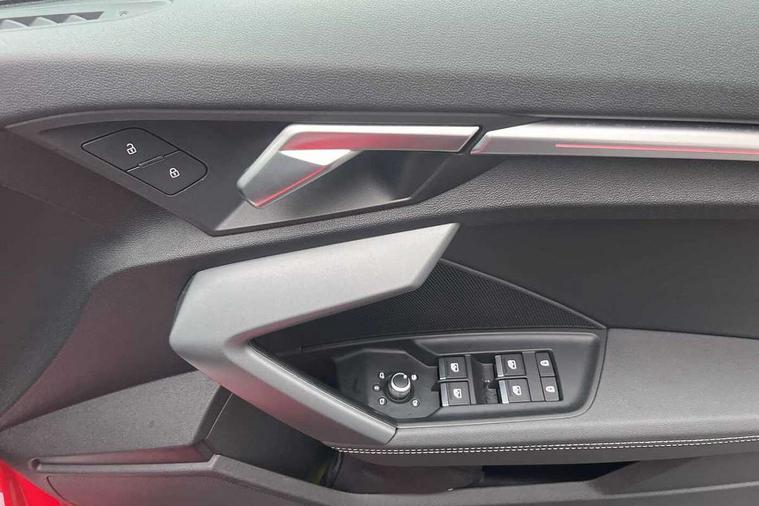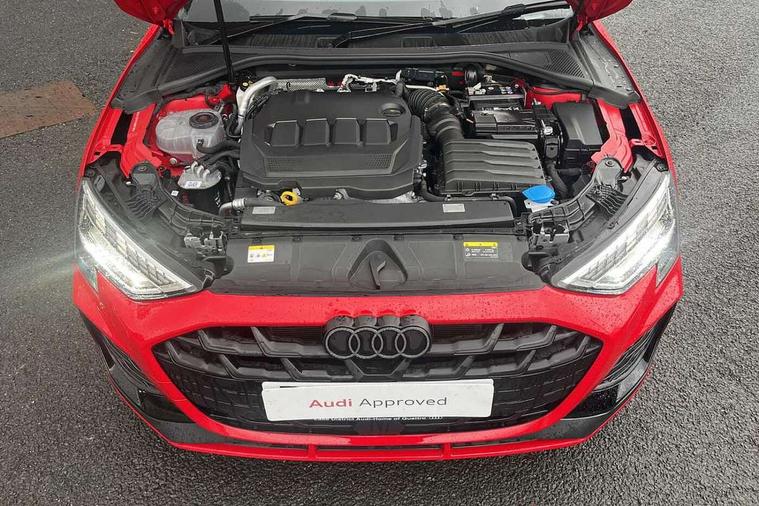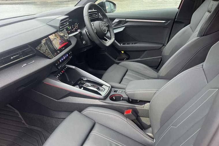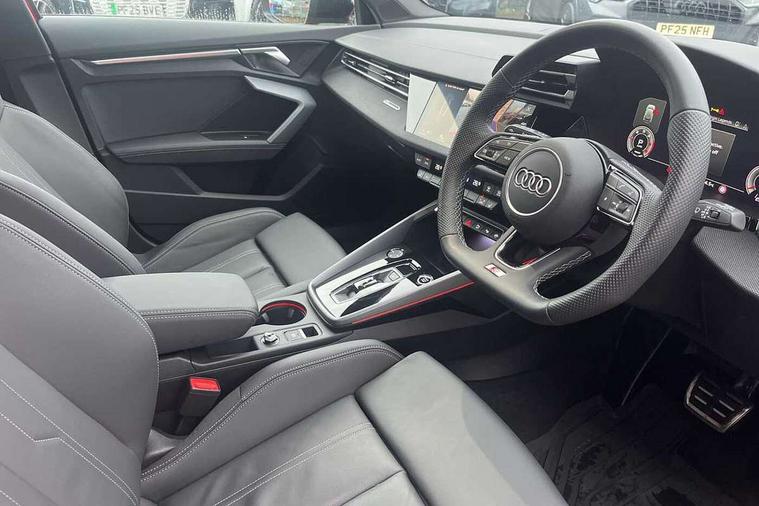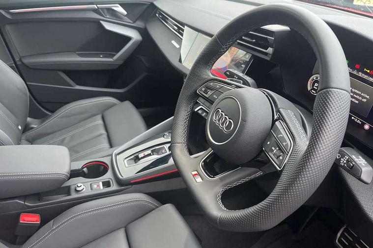 Adaptive cruise control (ACC), Adjustable speed limiter, Audi drive select (Auto, Comfort, Dynamic, Efficiency and Individual), Audi virtual cockpit plus - 12.3" full HD resolution dynamic digital instrument cluster, Automatic start/stop system with recuperation, Bluetooth interface, Camera based traffic sign recognition, Collision avoidance assistant, Driver attention and fatigue detection, e-Call (emergency call), Electromechanical power speed sensitive steering, Emergency assist, Intersection assist, Lane departure warning system, MMI Navigation Plus with high resolution 10.1" colour touch screen display, Park Assist with parking system Plus, Reversing camera, Service indicator, Smartphone interface with app store includes wireless Apple carplay, Android auto and Amazon alexa integration, Trip computer, Voice control system with natural language interaction, Diesel particulate filter, Sports suspension, Audi Phonebox light with wireless charging, Audi sound system - 10 loudspeakers including centre loudspeaker and subwoofer, DAB Digital radio, USB ports with charging function in the rear, Acoustic glass windscreen, All weather light, Anthracite grey Audi rings (front and rear), Audi beam uses LEDs to project the Audi logo onto the ground as you exit your A3, Auto dimming frameless rear view mirror, Automatic dynamic range control, Black accents front and rear bumpers, Black accents in the area of the Audi single frame grille, Black accents window trims strips, Dipped beam, main beam, position light and turning light, Electrically adjustable/heated/folding/auto dimming door mirrors with integrated LED indications + kerb view function for passenger side, Exterior model badging, Front and rear side air inlets in grained matt black with dark liquid chrome frame, Front electric windows, Front radiator grill in high gloss dark chrome, Heat insulating glass windscreen, Illuminated door sills with aluminium inserts at the front with S logo, Intersection light, LED 3rd brake light, LED brake lights, LED daytime running x3, LED headlights with LED rear lights and dynamic rear indicators, LED rear number plate lights, LED reverse light, LED tail lights, Light and rain sensors, Manoeuvring light, Motorway light, Privacy glass - dark tinted rear window, rear door and side windows, Rear diffuser and grill in grained matt black with inlay in dark liquid chrome, Rear electric windows, Rear side wing doors, Rear wiper, S roof spoiler, Side sill trim in dark liquid chrome, Static cornering light, 12V socket and storage compartment in front centre console, 3 seat bench in 2nd row, 3 spoke flat bottomed leather multifunction sport steering wheel with gear shift paddles, 3-zone deluxe automatic air conditioning, 4 way electrically adjustable lumbar support for driver and front passenger, 40/20/40 split folding rear seat bench, Black cloth headlining, Black front and rear floor mats, Front and rear centre armrest in artificial leather with contrasting stitching on armrests and instrument panel, Front and rear headrests, Heated front seats, Height and reach adjustable steering wheel, i-Size child seat mounting on the front passenger side and outer rear seats, i-Size and top tether on the outer rear seats, Manual boot compartment lid, Manually adjustable front seats, Rear centre armrest with cupholder, S badging on the steering wheel, Seat side bolsters, Single front passenger seat, Stainless steel pedals and front footrest in black, Twin leather upholstery with front sports seats S embossed logo, Aluminium interior elements pack - A3, 3x3 point rear seat belts, Driver and front passenger airbag with passenger airbag deactivation, Electronic Stabilisation Control (ESC) including ABS, ASR and EDL, First aid kit with warning triangle and 2 safety vests, Front side airbags with head airbags and interaction airbag, Hill hold assist, Pre-sense front with pedestrian and cyclist detection, Seatbelt monitoring, Tyre pressure loss indicator, Anti theft alarm, Anti-theft wheel bolts, Electronically operated child locks, Immobiliser, Black dashboard,