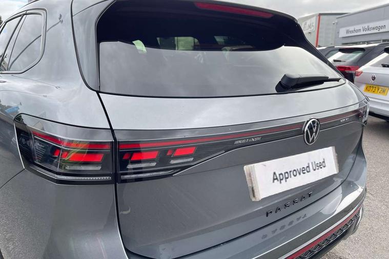 2 x Front USB-C ports, 2 x USB-C charging sockets on the centre console in the rear, charging capacity up to 45W, Adaptive cruise control, Advanced driver attention and drowsiness monitor, Digital cockpit pro 10.25" high resolution, Discover media navigation system includes streaming and internet, Dynamic road sign display, E-Sim card for online connectivity, eCall emergency call service, Full electric tailgate operation, Inductive smartphone charging without external antenna connection, Memory feature for park assist, Oncoming vehicle braking when turning including swerve support, Park assist with park distance control, Predictive speed limiter, Preparation for We connect and We connect plus, Progressive steering, Wireless app connect, Adaptive chassis control DCC pro includes driving mode selection, Front wheel drive, Petrol Particulate Filter, Rear shock absorbers, Rear shock absorption for sports version, Shock absorption in front, Auto dimming interior rear view mirror, Automatic headlights, Body colour bumpers, Body colour door handles, Heat insulating glass in side and rear windows, Heated windscreen + washer jets, LED third brake light, Rain sensor, Rear side wing doors, Rear wiper, Welcome light with surround lighting, 3 seat bench in 2nd row, 3 zone air care climatronic with rear air conditioning control panel, 30 colours options interior ambient lighting, Brushed stainless steel pedals, Front + rear carpet mats, Front head restraints, Front sports seats, Isofix child seat preparation, easy-fit (for two outer rear seats, and front passenger seat), compatible with I-size, Luggage comaprtment cover, power operated, Single front passenger seat, Standard pedal cluster, Sun visors with illuminated vanity mirrors for driver and front passenger, Sunblind for rear side windows, Three rear head restraints, Unsplit rear seat bench, split folding backrest, with centre armrest, Acoustics pack - Passat, LED High matrix headlamps pack - Passat, 3x3 point rear seat belts, ABS (Anti locking brake system) includes BAS (Brake assist) and EBD (Electronic brake pressure distribution), Autonomous emergency braking front assist with pedestrian and cyclist monitoring, Curtain and side airbags in front with centre airbag, Disc brakes in front, Driver/Front Passenger airbags, Drivers knee airbag, Electronic parking brake with auto hold, ESC (Electronic stability control) + EDL (Electronic Differential lock) and ASR (Traction control), EDTC (Engine drag torque control), Extended safety system with proactive passenger protection system, Front passenger airbag deactivation switch, Hill hold function, Tyre pressure loss indicator, Warning triangle and first aid kit, Alarm with interior protection, Keyless locking and starting system keyless access with safelock, Tool kit for tyre mobility set, Trims for alloy wheels,