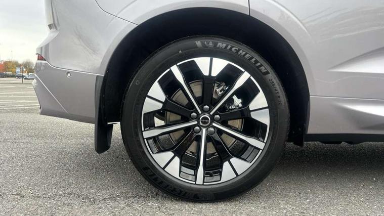 11.2" centre console touch screen, 12.3" Progressive Driver Display, 360 degree surround view parking camera with side proximity sensors, Adaptive cruise control, Adjustable steering wheel force, Android auto (Wired), Apple carplay (wired), Bluetooth handsfree system, Driver alert control with lane keeping aid, Emergency services call system, Front and rear park assist, Google Automotive Services, Intelligent speed assistance, Oncoming Lane Mitigation, PAS, Power operated tailgate with handsfree opening and closing, Service interval indicator, Speed limiter, Speed sensitive steering, Trip computer, Volvo cars services with app, Volvo on call with App, Wireless/Inductive Mobile Phone Charging, 8 speed automatic transmission with start/stop + manual change functions, DAB Digital radio, Premium Sound by Harman Kardon, dirac unison, dolby pro logic II surround sound, 13 speakers/600W output and fresh air subwoofer, Steering wheel remote infotainment controls, Adaptive brake lights with high level LED brake lights, Auto dimming interior + exterior mirrors, Automatic headlight levelling system, Automatic LED Headlights + Active high beam incorporating daytime running lights, Electric adjustable/heated/auto power folding door mirrors, Electric front+rear windows, Front aluminium tread plates, Heated front windscreen, High gloss black door mirrors and window surround, High gloss black front and rear bumper decoratives, High gloss black mesh front grille with high gloss black surround, Home safe and approach lighting, Integrated roof rails in high gloss black, Puddle lights, Rain sensor with automatic windscreen wiper activation, Rear side wing doors, Rear wiper, Roof antenna, Roof spoiler, Tinted windscreen, Visible VIN plate, 12V socket in front tunnel console and luggage compartment, 3 seat bench in 2nd row, 3 Spoke tailored steering wheel with chrome trim, 4 Zone electronic climate control, A-pillar parking ticket holder, Air purifier particulate matter (PM) 2.5 filter, B Pillar ventilation, Bright metal luggage scuff plate, Centre console cupholders and storage, Charcoal floor mats, Front and rear courtesy lights, Front and rear door pocket illumination, Front cupholder illumination, Front footwell illumination, Front reading lights, Front seat cushion extensions, Glovebox compartment with illumination, Head restraints for all seats, Heated front seats, Heated steering wheel, Height/reach adjustable steering column, Illuminated luggage compartment, Illuminated vanity mirrors + ticket holder, Inner door release handle illumination, ISOFIX attachment on outer rear seats, Load cover, Load protection net, Multi directional lumbar support, Power driver seat with memory + exterior mirrors memory, Power height adjustable passenger seat, Power passenger seat with memory, Quilted nordico leather upholstery, Rear armrest with cupholder, Rear footwell and front and rear side step illumination, Rear reading lights, Rear seat concealed storage, Single front passenger seat, Tailgate illumination and ambient door lighting, Underfloor stowage compartment, Versatile split folding rear seat - 60/40, Driver assist pack without Adaptive cruise control - XC60, 5 three point seatbelts, City safety with steering support with Pedestrian + cyclist + front collision warning with full auto brake and rear auto brake, Drivers knee airbag, Dual stage driver/passenger airbags, Electronic parking brake with auto hold, First aid kit, Front seats SIPS airbags, Hill descent control - Off-road drive mode, Hill start assist, IC (Inflatable Curtains) - Full Length, Passenger airbag cut-off device, Power child locks on rear doors, Road sign information display, Run off Road Mitigation, Run off Road Protection, Seatbelt reminder and pretensioners, SIPS (Side Impact Protection System), Slippery road and hazard light alert, Stability and Traction Control with Spin control, Engine Drag Control and Corner Traction Control, Tyre pressure monitoring system, Vehicle deceleration control with Anti-lock Brake System, Electronic Brake Distribution and Emergency Brake Assist, Warning triangle, WHIPS whiplash protection system - front, Anti-theft alarm including immobiliser/volume sensor + level sensor, Key integrated remote control central locking + fuel flap with deadlocking system and auto open/close power windows, Keyless Drive (includes Keyless Entry and Keyless Start), Locking wheel nuts, Private locking for tailgate, Summer tyres,