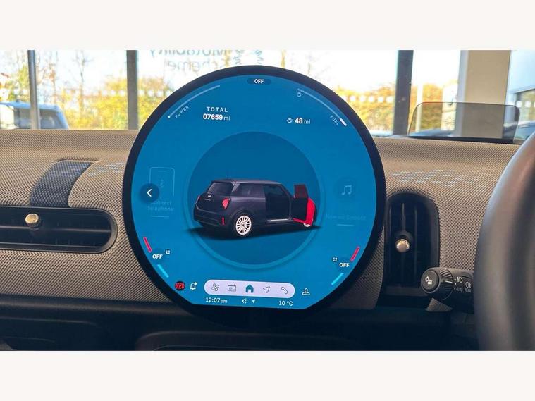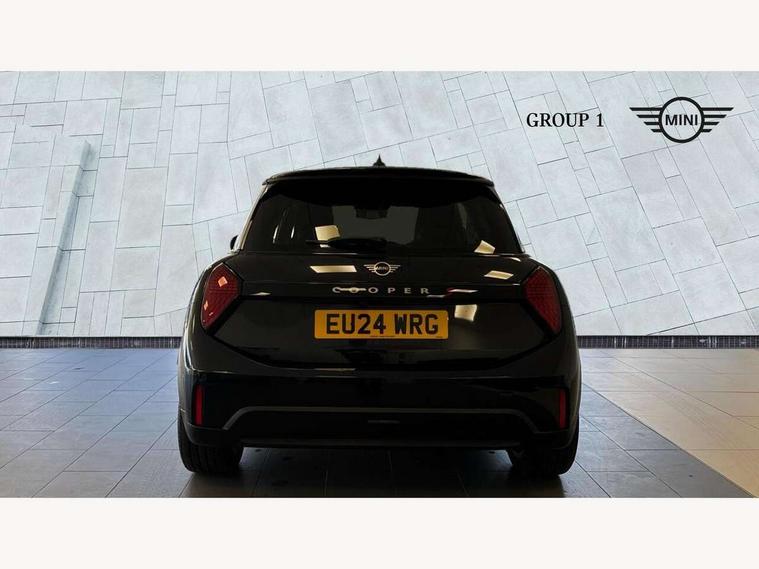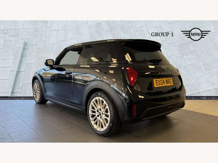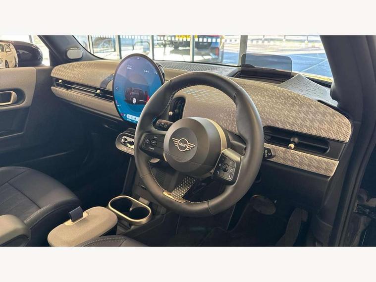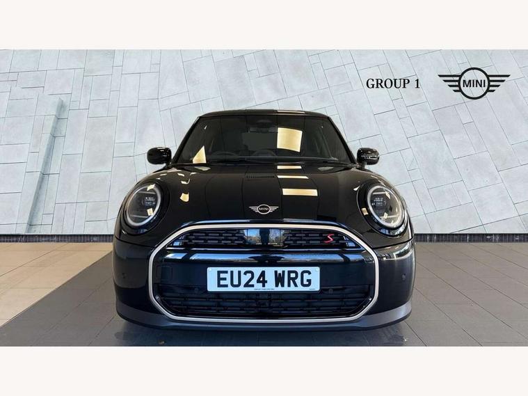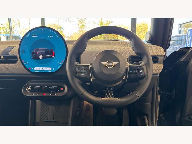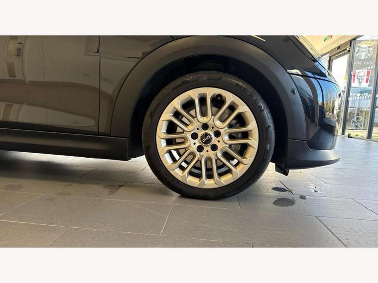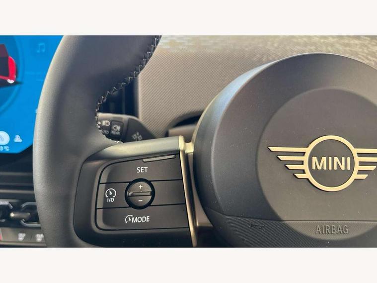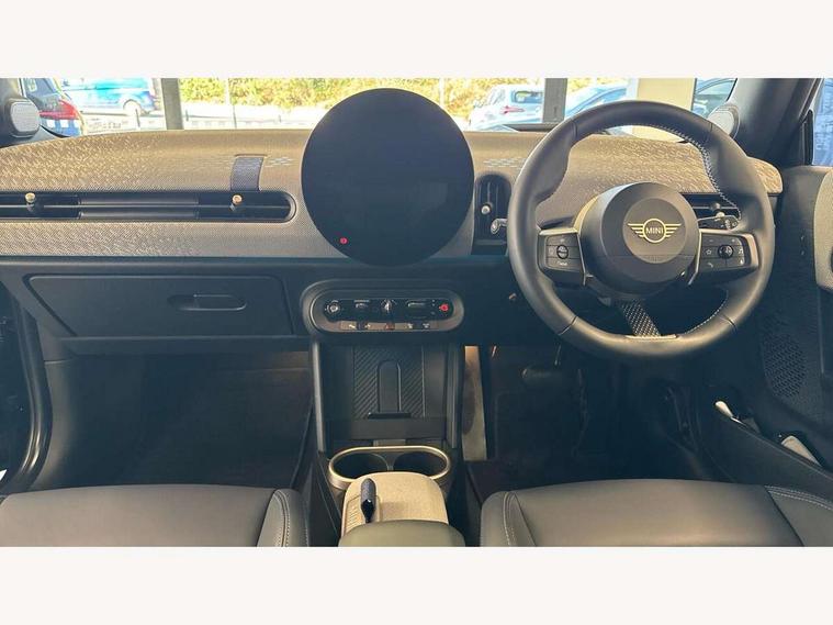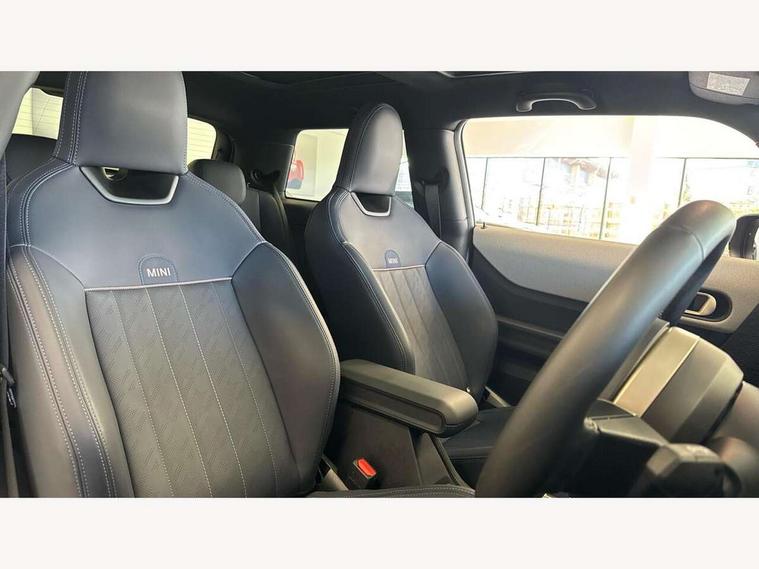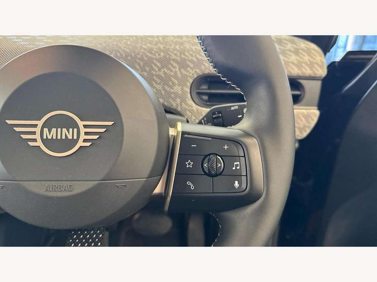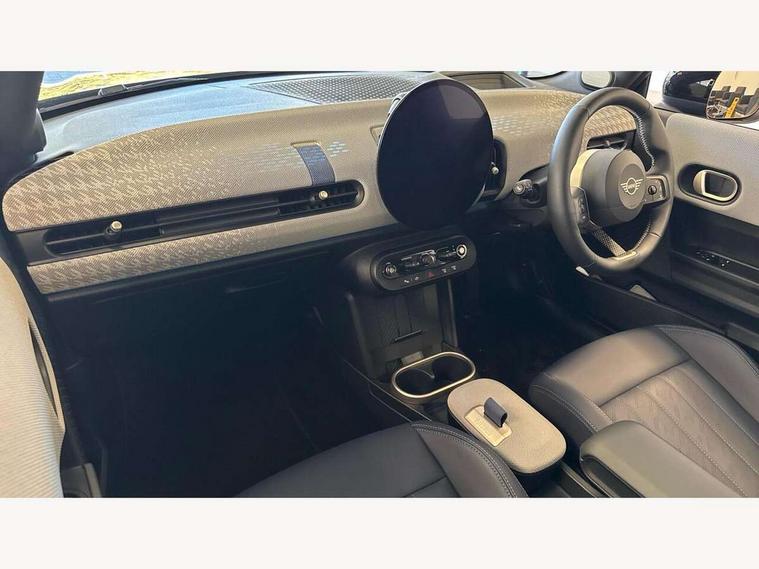 Central toggle bar, Circular OLED Screen, Compatible mobile phone bluetooth with audio streaming, Cruise control, Digital instrument cluster, Electro-mechanical speed dependant steering assistance, Emergency call service, MINI Experience Modes, Mini navigation system, On board computer, Service interval indicator, 7 speed steptronic transmission with double clutch, DAB Digital radio, Auto headlights, Electric adjustable heated door mirrors, Electric front windows, Heated rear window, Heated windscreen washer jets, LED daytime running lights, LED indicator lights, LED rear lights, Logos in Vibrant Silver, Rain sensor window wipers, Rear fog lights, Rear window wiper, Vibrant silver grille surround, 2 seat bench in second row, 2 zone automatic air conditioning, 60/40 rear seat bench, Ambient lighting, Cupholders, Dark headliner, Floor mats, Front and rear head restraints, Front compact armrest, Heated steering wheel, Height adjustable passenger seat, Lidded storage box in grey knit, Luggage compartment lighting, Single front passenger seat, Sport Vescin Steering Wheel, Sunvisors with vanity mirrors, Vescin synthetic leather upholstery, Driving assistant pack - Cooper Hatchback, Level 1 pack - Mini Hatchback, Park assistant pack - Cooper Hatchback, 3 point seatbelts on all four seats, 6 Airbags - front, side, head and seat belt tensioners, Acoustic pedestrian protection, Anti-lock braking system (ABS), DSC - Dynamic Stability Control, Electronic parking brake, Front and rear disc brakes, Front ISOFIX (iSize), Front passenger airbag deactivation, Traction control, Tyre pressure monitoring system, Alarm, Immobiliser, Remote central locking, Blue decorative dash strap, Light Beige/Grey dash knit, Tyre repair kit,