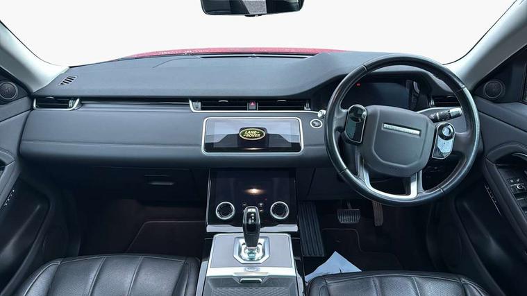 360 degree parking aid, Android Auto, Apple car play, Bluetooth connectivity, Brake pad wear indicator warning light, Clear exit monitor, Driver condition monitor, Duo touch pro, Electronic power assisted steering (EPAS), InControl remote, Interactive Driver display instrument cluster, Land Rover InControl apps, Lane keep assist, Navigation pro system, Park assist - Parallel, perpendicular and parking exit, Pro services and wifi hotspot, Push button starter, Rear traffic monitor, Smart settings, Traffic sign recognition with adaptive speed limiter, Voice control system, All terrain progress control, Efficient Driveline, Passive suspension, Terrain Response 2 Auto, Digital Audio Broadcast radio-DAB, Steering wheel mounted controls, Automatic headlight levelling, Electric windows with one touch open/close and anti trap, Evoque badge, Flush deployable exterior door handles, Heated rear window with timer, Heated washer jets, Heated windscreen, Power fold, auto-dimming, heated door mirrors with memory and approach lights, Rain sensing windscreen wipers, Rear fog lights, Rear wing door, Tailgate spoiler, Third brake light, 40:20:40 split folding rear seats, Isofix system on outer rear seats, Overhead lighting console, Overhead stowage for sunglasses, Passive front head restraints, Rear air vents, Rear centre headrest, Sunvisors with illuminated vanity mirrors, Twin front cupholders with cover, Twin sliding front centre armrest, 3 rear 3 point seatbelts, Anti-lock braking system (ABS), Customer configurable autolock, DSC - Dynamic Stability Control, Electronic brake force distribution, Electronic parking brake, Electronic traction control, Front and rear seatbelt reminder, Hill descent control, Hill launch assist, Low traction launch, Power operated child locks, Roll stability control, Six airbags - Driver and passenger airbags/driver knee airbag/front side airbag and curtain airbags, Torque vectoring brake, Tyre pressure monitoring system, Alarm, Immobiliser, Intrusion sensor, Locking wheel nuts,