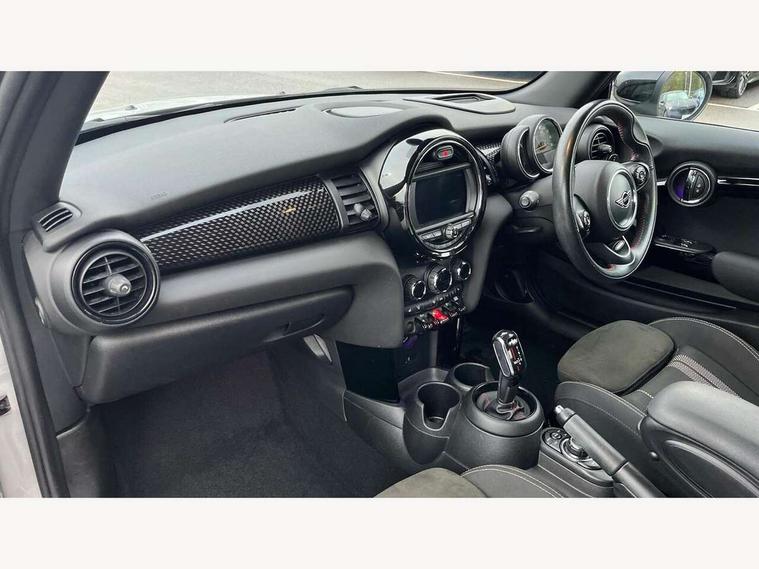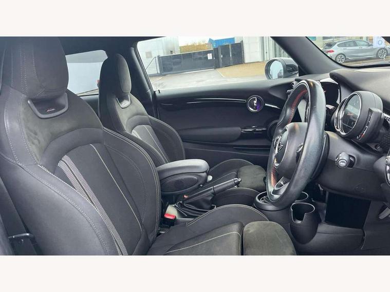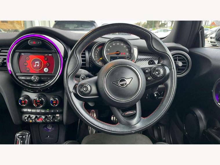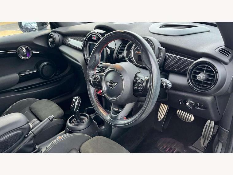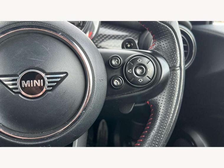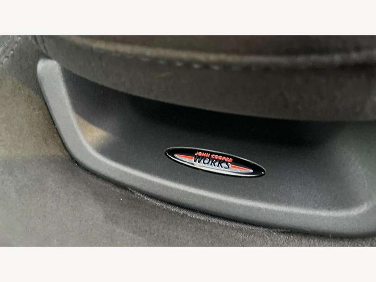 Automatic start/stop function with brake energy recuperation, Compatible mobile phone bluetooth with audio streaming, Electro-mechanical speed dependant steering assistance, Instrument cluster, Mini E-call, MINI TeleServices, On board computer, Service interval indicator, Double Vanos system, Fully variable valve control, High precision injection, Performance Control, Steptronic sport transmission with double clutch and steering wheel paddles, 6.5" touchscreen with LED ring, FM tuner and DAB digital radio, Automatic headlight activation switch, Bonnet scoop, Chrome border honeycomb structure radiator grille with S badge, Chrome plated fuel cap, Dynamic brake lights, Electric front+rear windows, Heated rear window, Heated windscreen washer jets, John Cooper Works - aerodynamic kit (front and rear apron, spoiler), front and rear sport bumpers and part-painted side sills with door sill finishers, John Cooper Works rear spoiler, LED headlight with closed ring and daytime driving lights, Metal door sill strips with Cooper S imprint, Model logo Cooper S on right of tailgate, Rain sensor window wipers, Rear fog lights, Rear LED lights with union jack design, Rear window wiper, Side scuttle panel with integrated indicator, Sun/heat protection glass, Two central exhaust tailpipes with chrome finisher, White indicator lenses, 12V Accessory socket in centre console, 4 lashing eyes in luggage compartment, 60/40 split folding rear seat, Anthracite headlining, Chrome interior highlights, Cupholders, Front and rear head restraints, Front and rear isofix with front passenger airbag deactivation, Glove compartment, Height and length steering column adjustment, Interior lighting with 12 basic colours selectable via toggle switch in roof, John Cooper Works leather steering wheel with contrasting stitching in Chilli Red with John Cooper Works logo, John Cooper Works Logo in seat, Leather gearshift lever and handbrake gaiters, LED reading lights, vanity mirror lights, front foot well light and spotlight on front seats, Manual air conditioning, Mechanical seat adjustment, driver seat height adjust, forward/back and front seats backrest, Mini logo projection on floor from drivers exterior mirror, Multifunction steering wheel, Storage compartments in doors, Storage pocket on back of front seats, Sunvisors with vanity mirrors, 3 point seatbelts on all four seats, 6 Airbags - front, side, head and seat belt tensioners, Anti-lock braking system (ABS), DSC - Dynamic Stability Control, Front and rear disc brakes, Hill start assist, Two tone horn, Tyre pressure monitoring system, Alarm system with tilt sensor, monitoring doors, bonnet interior and tailgate, Electronic vehicle immobiliser, Start/stop toggle with keyless go, Tool kit,