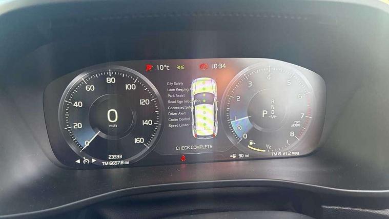 12.3" Active TFT crystal driver's instrument display, 9" Touch screen, Adjustable steering wheel force, Bluetooth hands free telephone kit, Drive mode selector, Front park assist, Lane keep assist with driver alert control, Oncoming Lane Mitigation, Power operated tailgate, Sensus navigation system, Speed limiter, Speed sensitive steering, Voice control system, Volvo on call, DAB Digital radio, Steering wheel mounted remote controls, Active bending headlights, Adaptive brake lights, Auto dimming interior mirror, Automatic headlamp levelling, Body colour door mirrors, Chrome window surround, Dual exhaust pipes, Electrically adjustable and heated door mirrors, Embossed rear side roof pillar, Front and rear electric windows, Front tread plates, Headlamp cleaning system, Heated front windscreen, Heated washer nozzles, High gloss black grille with chrome inserts, Home safe and approach lighting, LED front fog lights with static cornering light function, LED Headlights + Active high beam incorporating daytime running lights, Matt silver front and rear skid plate, Rain sensor windscreen wipers, Rear wiper, Roof antenna, Roof spoiler, Silver roof rails, Visible VIN plate, 12V socket in front tunnel console, 2 zone electronic climate control with air quality system, 3 spoke leather steering wheel with chrome trim, 60/40 split folding rear seat, A-pillar parking ticket holder, Ambient lighting in door panels, Bright metal luggage threshold, Centre console cupholders, Centre console storage box, Cooled glovebox, Courtesy lights, Driver seat height/tilt/lumbar adjust, Driver's lower storage shelf, Extended front seat cushions, Front door pockets, Front footwell illumination, Front tunnel storage net, Front/rear reading lights, Glovebox bag hook, Glovebox illumination, Heated front seats, Height/reach adjustable steering column, High gloss centre tunnel deco, Illuminated driver/passenger vanity mirrors, Illuminated front cupholder, Illuminated luggage compartment, Illuminated tailgate, Isofix attachments on rear seats, Leather coloured key integrated remote, Leather faced upholstery, Load protection net, Luxury floor mats, Multicolour theatre lights, Orrefors Crystal Gear Lever Knob, Passenger seat adjustable for lumbar support, Pollen filter, Power memory driver's seat + door mirror memory, Power passenger seat, Rear armrest / integral cup holders / storage tray, Underfloor stowage compartment, ABS/EBD, City safety, Drivers knee airbag, DSTC-Dynamic Stability and Traction Control, Dual stage driver/passenger airbags, EBA, Electronic parking brake with auto hold, Fasten seatbelt reminder, First aid kit, Front seat side impact airbags, Hill descent control, Hill start assist, Inflatable curtain, Passenger airbag cut-off device, Road sign information display, Run off Road Mitigation, Run off Road Protection, Seatbelt pre-tensioners, Side impact protection, Tyre pressure monitoring system, Warning triangle, WHIPS whiplash protection system - front, Anti-theft alarm including immobiliser/volume sensor + level sensor, Fuel flap with deadlocking system, Key integrated remote control central locking, Locking wheel nuts, Private locking,