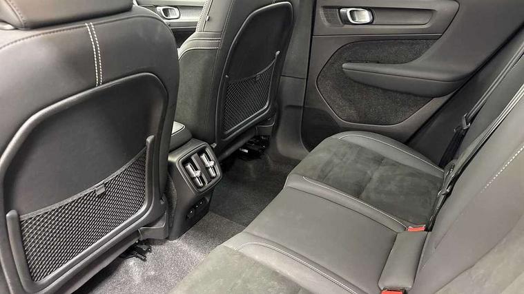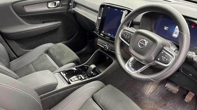 12.3" Progressive Driver Display, 360 degree surround view parking camera with side proximity sensors, 9" centre console portrait touch screen, Adjustable steering wheel force, Android auto (Wired), Apple carplay (wired), Bluetooth handsfree system, Driver alert control, Driver assistance (pilot assist and adaptive cruise control), Driver awareness - Blind spot information system with steer assist, cross traffic alert with autobrake and rear collision warning and mitigation, E-call, Front park assist, Google automotive services - Enabled entertainment apps, navigation with google maps, voice recognition with google assistant, Hands free power tailgate, Intelligent speed assistance, Lane keeping aid, Oncoming Lane Mitigation, Rear park assist, Speed sensitive steering, Volvo cars services with app - Driving journal, emergency and breakdown call, engine remote start, remote door locking/unlocking and vehicle dashboard, Wireless/Inductive Mobile Phone Charging, Automatic transmission with start/stop and manual change functions, Dynamic chassis, DAB Digital radio, Premium Sound by Harman Kardon, Dolby Pro Logic II Surround Sound, Dirac Unison, 12 speakers/600W and subwoofer, Steering wheel mounted remote controls, Active bending pixel LED headlights with adaptive shadow technology, Active high beam incorporating daytime running lights, Adaptive brake lights with high level LED brake lights, Auto dimming feature for exterior door mirrors, Auto dimming interior mirror, Automatic headlamp levelling, Colour coordinated auto folding and heated power door mirrors, Dark tinted windows - rear side windows and rear screen, Front aluminium tread plates, Front and rear electric windows, Headlight cleaning system, High gloss black front and rear skid plate, High gloss black front bumper deco, High gloss black front grille strikethrough and ironmark, High gloss black rear model, engine and volvo logo badges, High gloss black window trim, Home safe and approach lighting, Integrated roof rails in high gloss black, LED front fog lights with cornering function, Power glass tilt and slide panoramic sunroof with sun curtain, Puddle lights, Rain sensor with automatic windscreen wiper activation, Rear side wing doors, Rear wiper, Roof antenna, Roof spoiler, Visible VIN plate, 12V socket in front tunnel console and luggage compartment, 2-Zone electronic climate control with CleanZone air quality system and pollen filter, 3 seat bench in 2nd row, 3 Spoke tailored steering wheel with chrome trim, 60/40 versatile split folding rear seat, Centre console cupholders and storage, Charcoal headlining, Connect textile/microtech upholstery, Flexible load floor and grocery bag holder, Floor mats, Front cabin courtesy lights, Front door pocket, front cupholder, ambient front door, rear reading, rear courtesy, instrument panel and tailgate lighting, Front footwell illumination, Front headrests, Front reading lights, Front seat cushion extensions, Front side step illumination (under door), Glovebox bag hook, Heated front seats, Height/reach adjustable steering column, High gloss centre tunnel deco, Illuminated glovebox, Illuminated luggage compartment, Illuminated vanity mirrors + ticket holder, Integrated waste bin, Isofix attachments on outer rear seats, Load cover, Load protection net, Multi directional lumbar support for driver and passenger seat, Power driver seat with memory + exterior mirrors memory, Power folding rear headrests, Power passenger seat, Rear armrest with cupholders, Single front passenger seat, Underfloor cargo storage, Climate pack without heated front seats - XC40, 3x3 point rear seatbelts, City safety with steering support with Pedestrian + cyclist + front collision warning with full auto brake and rear auto brake, Driver and passenger airbags, Drivers knee airbag, Electronic parking brake with auto hold, First aid kit, Front and outer rear seatbelt reminder and pretensioners, Front seats SIPS airbags, Hill descent control, Hill start assist, Inflatable curtain, Passenger airbag cut-off device, Power child locks on rear doors, Road sign information display, Run off Road Protection, SIPS (Side Impact Protection System), Slippery road and hazard light alert, Stability and Traction Control with Spin control, Engine Drag Control and Corner Traction Control, Tyre pressure monitoring system, Vehicle deceleration control with Anti-lock Brake System, Electronic Brake Distribution and Emergency Brake Assist, Warning triangle, WHIPS whiplash protection system - front, 2 x Key integrated remote control central locking including with deadlocking system and auto open/close windows and sunroof, Anti-theft alarm including immobiliser/volume sensor + level sensor, Keyless drive includes keyless entry and keyless start, Locking wheel nuts,