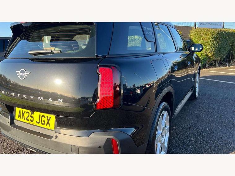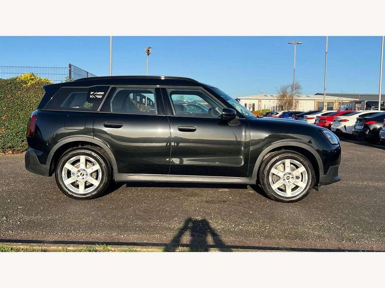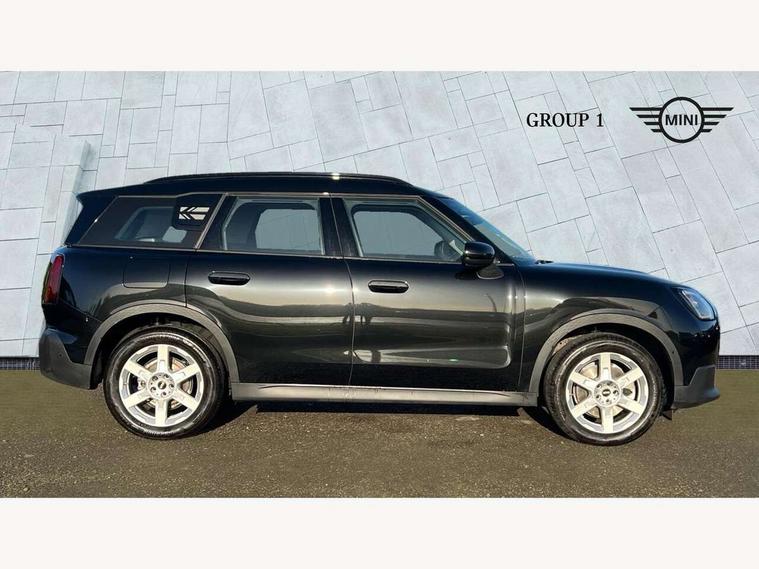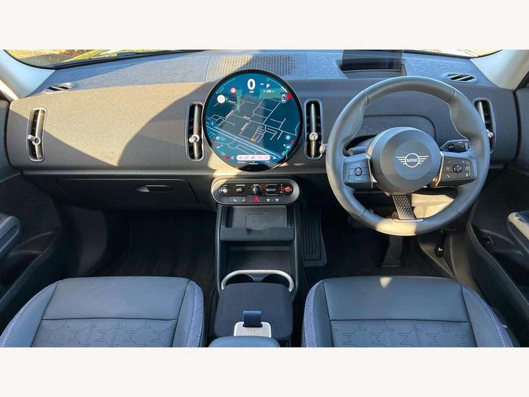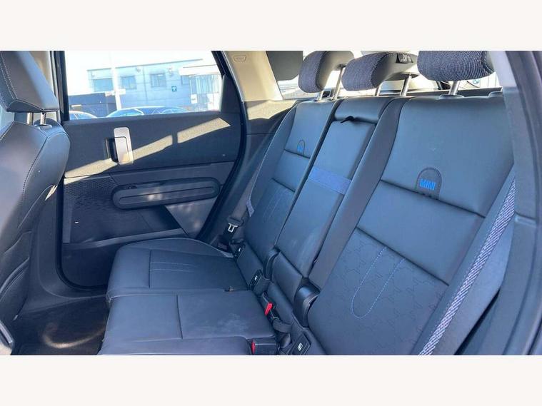 Bluetooth connection, Circular OLED Screen, Compatible mobile phone bluetooth with audio streaming, Cruise Control (DCC), Digital dashboard display, Driving assistant, E-call, Electro-mechanical speed dependant steering assistance, MINI Experience Modes, Mini navigation system, MINI TeleServices, Parking assistant in camera and ultrasound based assistance system, rear view camera, parking aid and distance control, Auto transmission with Paddles, Larger capacity fuel tank, 6 speakers, DAB Digital radio, Personal eSim, Auto tailgate, Electric adjustable heated door mirrors, Front and rear electric windows, Heated rear window, LED daytime running lights, LED Headlights, LED rear lights, LED third brake light, Rain sensor with auto headlights, Rear side wing doors, Rear window wiper, Roof rails, 3 seat bench in 2nd row, 60/40 split rear bench seat, Auto air conditioning, Floor mats, Front armrest, Front headrests, Heated steering wheel, Height and length steering column adjustment, Light headliner, Rear headrests, Single front passenger seat, Sport Vescin Steering Wheel, Sunvisors with vanity mirrors, Vescin/Cloth upholstery, 3x3 point rear seat belts, 6 Airbags - front, side, head and seat belt tensioners, ABS, DSC - Dynamic Stability Control, Electronic handbrake, Electronic Stability Programme (ESP), Front ISOFIX (iSize), Hill hold assist, Hill start assist, Manual rear child locks, Traction control, Tyre pressure monitoring system, Warning triangle, Alarm system with tilt sensor, monitoring doors, bonnet interior and tailgate, Auto drive away locking, Deadlocking function, Electronic vehicle immobiliser, Locking wheel bolts, Remote control locking, Start/stop toggle with keyless go, Black/Blue dashboard knit, MINI Mobility Kit,