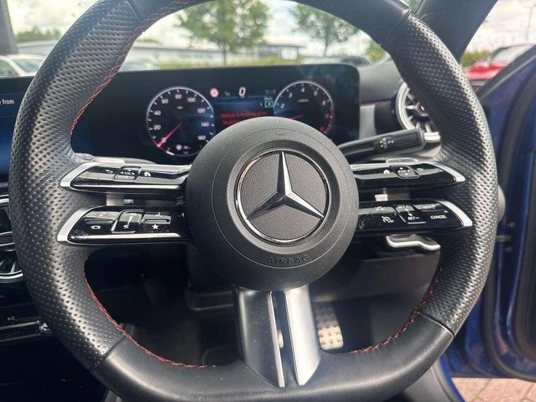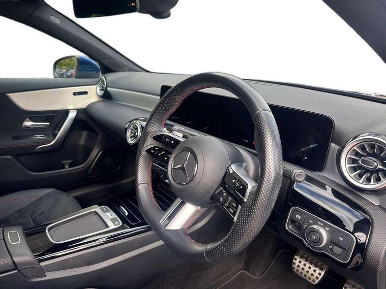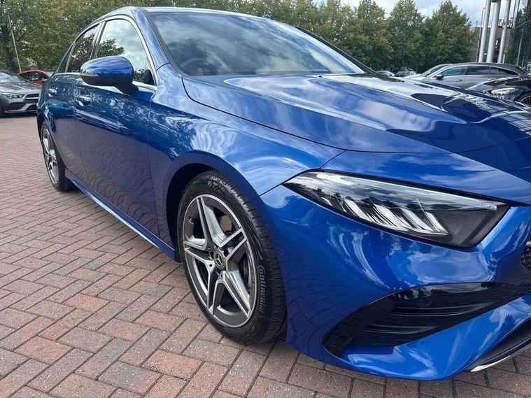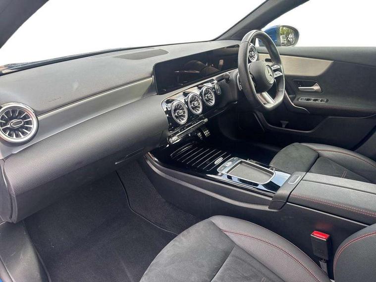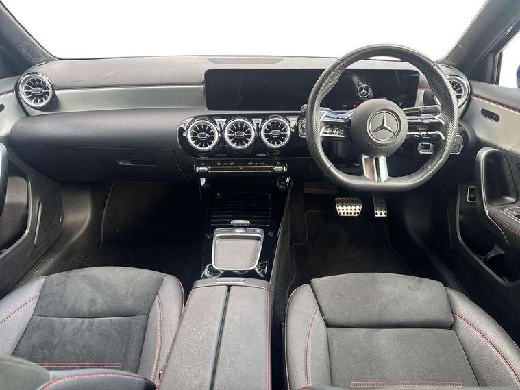 10.25 inch touchscreen central media display, 10.25" Digital instrument cluster display screen, Attention assist, Blind spot assist, Brake pad wear indicator warning light, Car wash mode, Cruise control + speed limiter, Direct steering, Direction indicators with lane change function, Dual bluetooth interfaces, DYNAMIC SELECT with a choice of driving modes (ECO, Comfort, Sport and Individual), ECO start/stop function, Engine start/stop button, Fingerprint scanner, Fluid level warning indicator for fuel, oil, coolant and washer fluid, Fluorescent jacket for driver, Hard-disk navigation, Hey Mercedes Voice activation, Lamp failure indicator, Lane keeping system, Mercedes me connect including emergency call system, accident recovery, breakdown and maintenance management, Mercedes me remote services, Outside temperature gauge, Owners manual in English, Pre-installation of private car share, Preinstallation for Mercedes Benz link, Remote boot closing, Service indicator (ASSYST), Smartphone integration with Apple CarPlay and Android auto, Speed limit assist, Speed sensitive power steering, Trip computer in multifunction display with current consumption indicator, Wireless charging, Lowered comfort suspension, DAB Digital radio, MBUX multimedia system, Mercedes Benz sound system (100 W) with 6 speakers, 4 Electric Front and Rear windows, Adaptive brake lights, AMG body styling - AMG front apron with front splitter and AMG rear apron and visible exhaust tailpipe trim elements, Body colour bumpers, Body colour door handles with chrome inserts, Body colour side skirt, Body coloured door mirrors, Chrome beltline strips, Diamond radiator grille with pins in fine star pattern, Electric adjustable and heated door mirrors with integrated LED side indicators, Exhaust system with 2 visible tailpipe trim elements and rear apron, Headlamp assist automatic headlamp activation, Heat insulating dark tinted rear and rear side windows, Heated glass rear windscreen + timer control, LED High Performance headlamps including integral LED daytime running lamps and adaptive highbeam assist, LED tail lamp, Privacy glass, Radio aerial, Rain sensing windscreen wipers with two sensitivity settings, Rear boot, Rear fog lights, Rear side wing doors, Third brake light featuring LED technology, Window line trim strip in chrome, 3 seat bench in 2nd row, 3 Spoke flat bottom leather multi function steering wheel with perforated leather in grip area, 4 way lumbar support, 40:20:40 split folding rear seats, Air conditioning - One zone thermatic automatic climate control with automatically controlled air distribution, AMG floor mats, Automatic child seat recognition sensor, Black air vents with surround in silver chrome, Black roof lining, Brushed stainless steel sports pedals with rubber studs, Front centre armrest with stowage, Front door sills with Mercedes Benz lettering, Front seat backs luggage nets, Galvanished gear shift paddles on steering wheel, Heated front seats, Height/reach adjustable steering column, Interior lighting - 64 colour Ambient lighting, Interior mirror with reading lamps in black and frameless, Rear armrest with 2 cupholders, Seat occupancy sensor for front passenger seat, Single front passenger seat, Sports seats with adjustable head restraints, Stowage compartment in centre console with retractable cover, Sunvisors with illuminated vanity mirrors, Twin front cupholders, Keyless go comfort pack - A Class, Light and sight package - A Class, Mirror package - A Class, Parking pack with 180 degree view - A Class, Seat comfort pack - A Class, USB pack plus - A Class, 3 rear 3 point seatbelts, ABS with Brake Assist, Active bonnet, Active brake assist includes forward collision warning system with autonomous braking, Adaptive brake assist with hold function and hill start assist, Black seatbelts, Bonnet with power domes, Childproof locks manually operated for rear doors and electrically operated for rear power windows, Crash responsive emergency lighting, Driver and passenger head and side airbags, Drivers knee airbag, Dual stage driver/passenger airbags, Electronic parking brake, ESP curve dynamic assist, ESP with ASR, Front and rear seatbelt reminder, ISOFIX and top tether child seat fixing points in two outer rear seats, Tyre pressure monitoring system, Warning triangle and first aid kit, Window airbags, Alarm system/interior protection/immobiliser, Guard 360 degree vehicle protection, Remote central locking and crash sensor with emergency opening function, Light longitudinal grain aluminium trim, 18" AMG 5 twin spoke light alloy wheels, aerodynamically optimised, painted in black with high sheen finish, Summer tyres, Tirefit sealant kit,