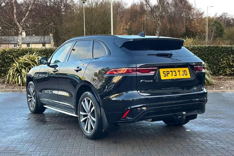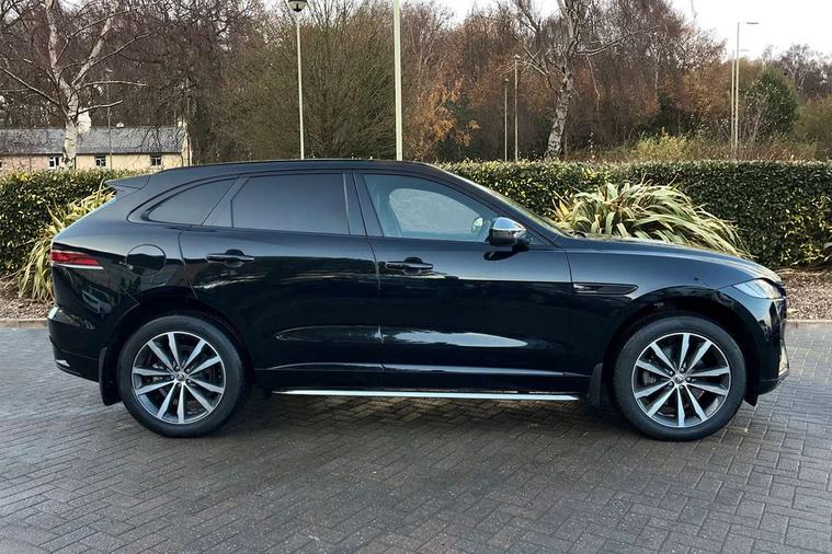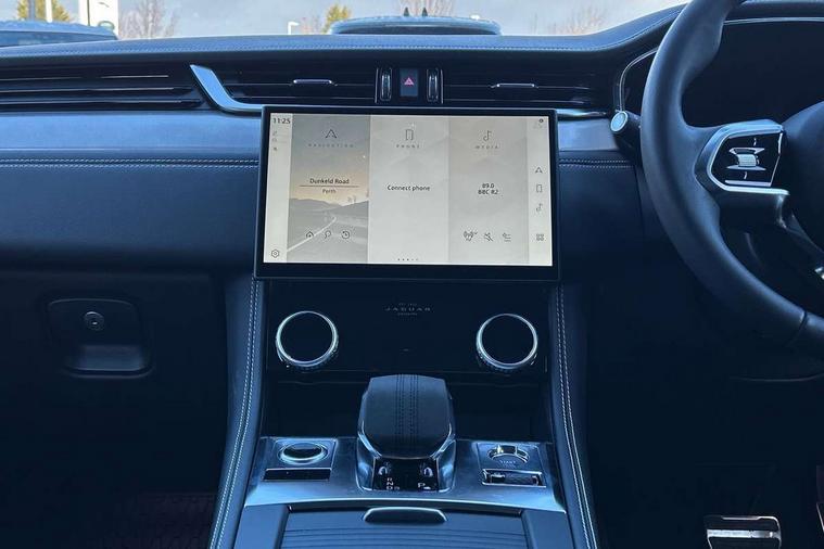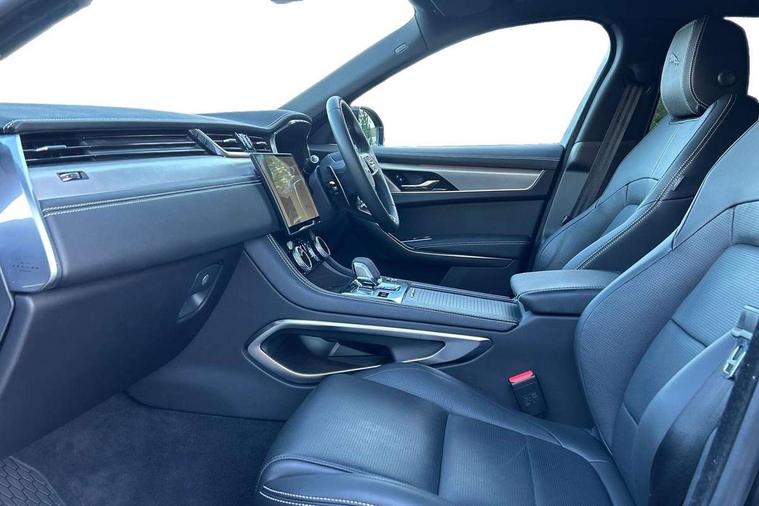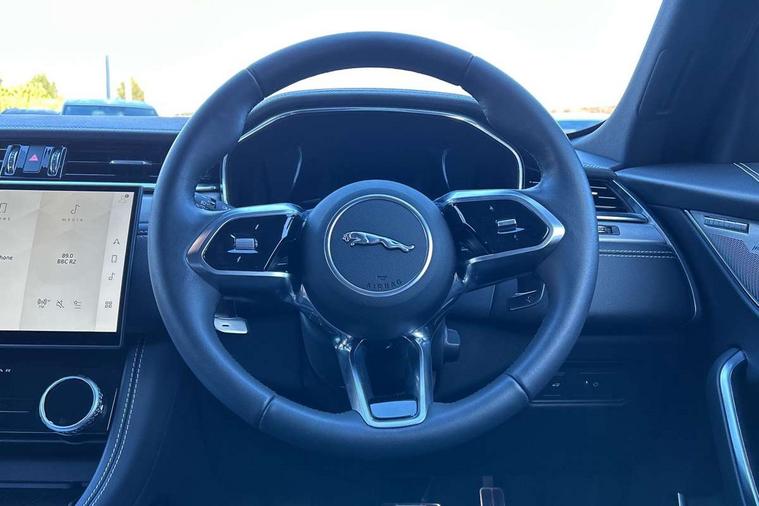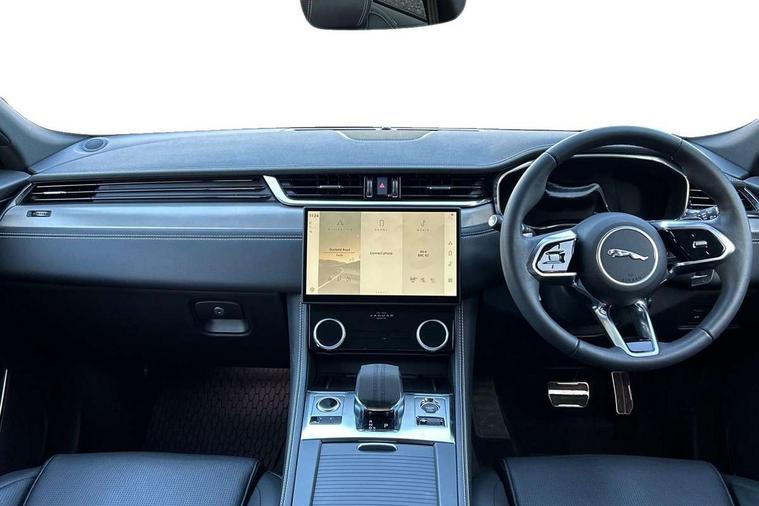 11.4" touchscreen, Android Auto, Apple car play, Blind spot assist, Bluetooth connectivity, Clear exit monitor, Driver alert system, Driver condition monitor, eCall emergency call system, Eco driving style assistant, Electric power assisted steering, InControl remote, Interactive driver display digital with 12" TFT display, Jaguar Toggle shift selector, Lane departure warning system, Lane keep assist, Outside temperature gauge, Personalisation profile management, Pivi pro connected navigation system with app interface and media storage, Pro services and wifi hotspot, Push button starter, Rear traffic monitor, Service interval indicator, Speed proportional steering, Start up sequence with movement in dials and lighting, Traffic sign recognition with adaptive speed limiter, Trip computer, Voice control system, Wireless device charging, 8 speed automatic transmission, All terrain progress control, All Wheel Drive (AWD), Open differential with torque vectoring by braking, AM/FM radio, Bluetooth streaming, DAB Radio (Digital Audio Broadcasting), Dynamic volume control, InControl apps, InControl protect, iPod integration, 3 flash lane change indicators, Animated directional indicators, Approach Illumination, Auto dimming rear view mirror, Auto high beam assist, Automatic headlights, Electric heated/power fold memory door mirrors with approach lights and auto dimming driver side, Electric windows with one touch open/close and anti trap, F-Pace and R Dynamic badge, Green tinted glass, Heated front windscreen + heated washer jets, Heated rear window with timer, Jaguar script and leaper, LED High level third brake light, LED tail lights, Metal load space scuff plates, Non acoustic front windscreen, Privacy glass, R Dynamic badge on side door, Rain sensor windscreen wipers, Rear fog lights, Rear metal tread plates, Rear side wing doors, Rear wiper, Trailer stability assist, Variable front intermittent wipers, 12V power point front, 3 rear headrests, 3 seat bench in 2nd row, Additional power sockets - Two additional USB sockets in rear centre console and one 12V socket in trunk, Air distribution speed, Bright metal foot pedals, Centre armrest console, Centre console with side storage, Configurable cabin lighting, Deletion loadspace storage rails, Door sill tread plates, Fold flat front seats, Front centre armrest with storage compartment, Front door storage space, Glovebox finisher with jaguar script, Heated steering wheel, Hooks in loadspace, Illuminated glovebox, Interior front door handles with separate locking switches, ISOFIX on outer rear seats, Jaguar sense, Leather steering wheel, Luggage tie downs in loadspace, Mist sensing, Multifunction steering wheel, Overhead lighting console, Overhead stowage for sunglasses, Passive front head restraints, Premium carpet mats, Rear air vents, Rear armrest with twin cupholders, Rear centre headrest, Rear door storage space, Reversible boot floor, Satin chrome gearshift paddles, Shopping bag hook, Single front passenger seat, Sunvisors with illuminated vanity mirrors, Twin front cupholders with cover, Online Pack with data plan - F-Pace, 355mm front brakes and 325mm rear brakes, 3x3 point rear seatbelts, ABS, All surface progress control (ASPC), Brake pad warning light, DSC - Dynamic Stability Control, Electric parking brake (EPB), Emergency brake assist, Front airbags with passenger seat occupant detector, Front and rear seatbelt reminder, Front side airbags, Full length side window curtain airbag, Hill launch assist, Power operated child locks, Traction control, Tyre pressure monitoring system, Immobiliser, Keyless entry, Keyless Start, Locking wheel nuts, Perimeter alarm, Remote central locking, Valet mode,