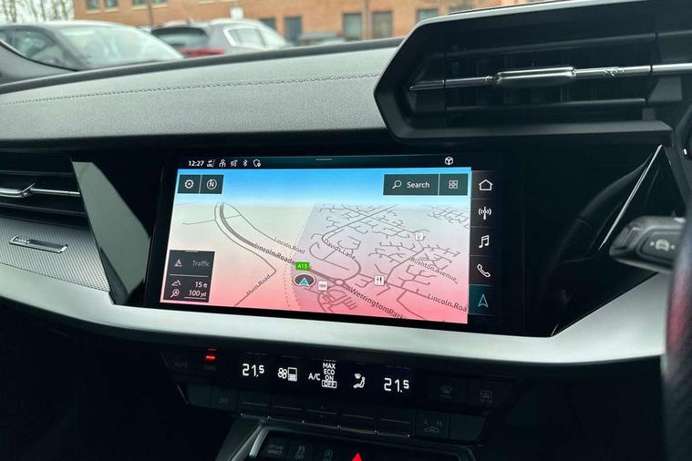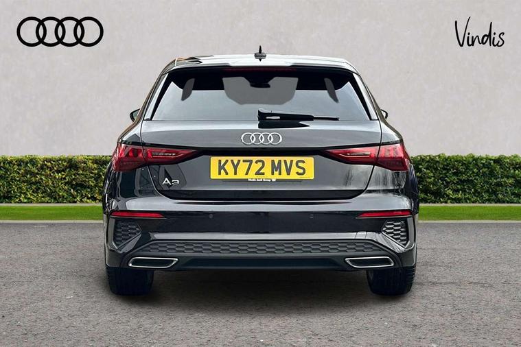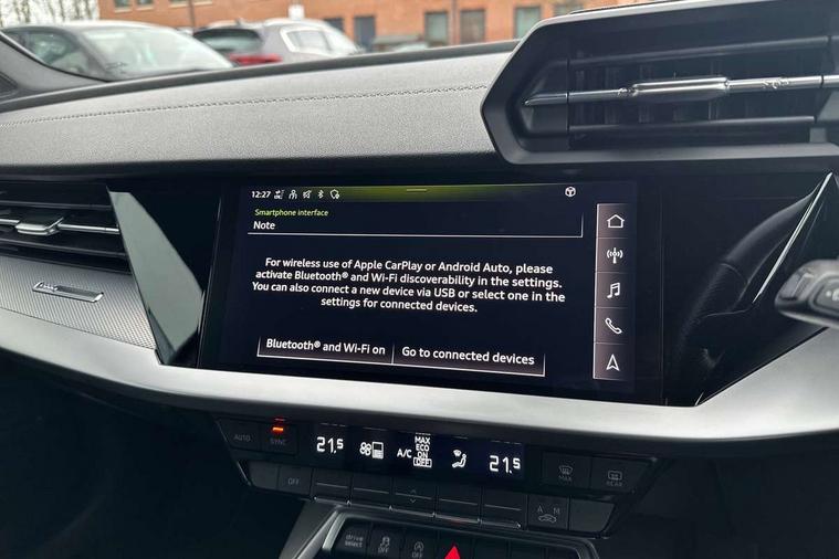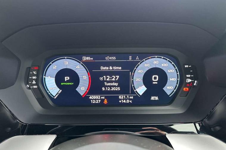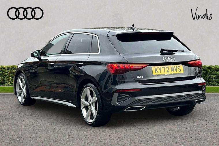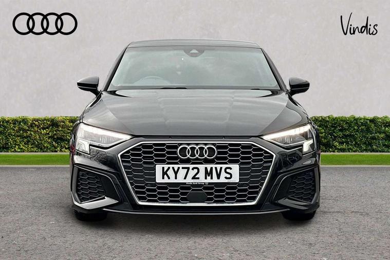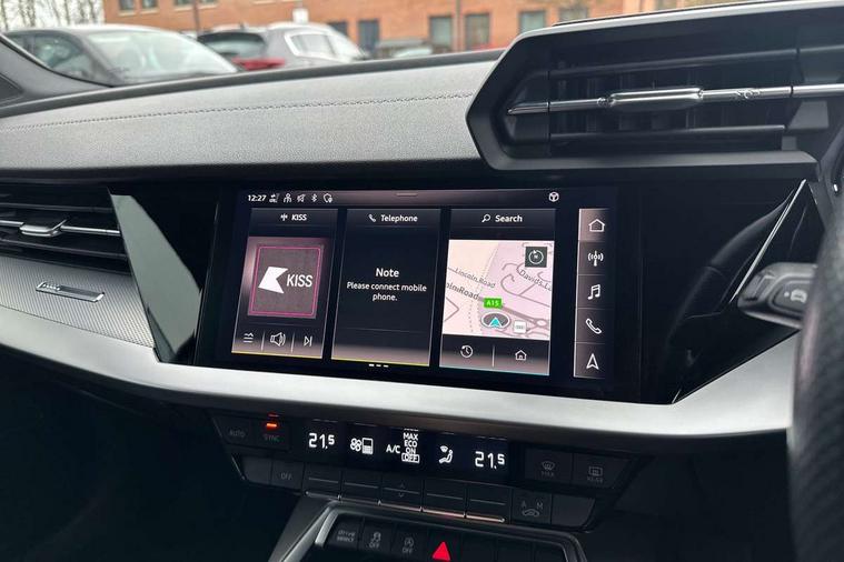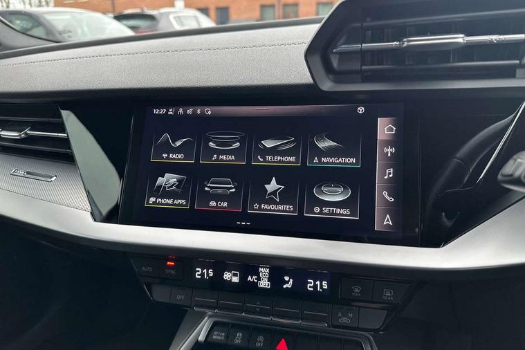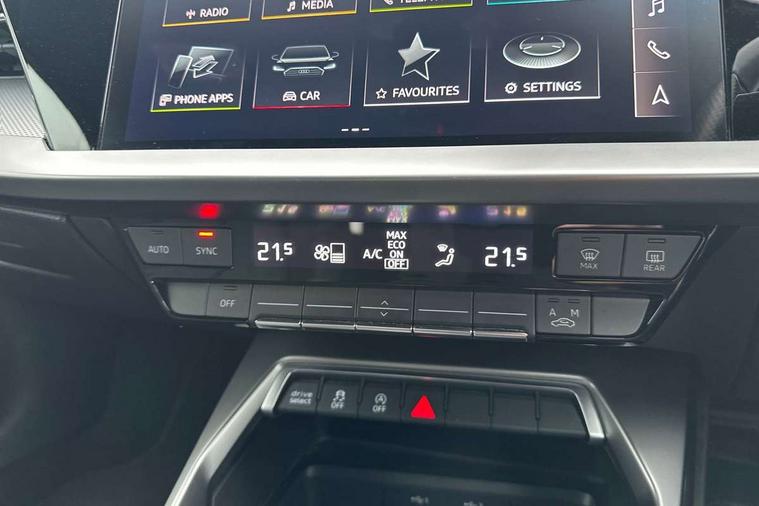 Audi drive select (Auto, Comfort, Dynamic, Efficiency and Individual), Audi smartphone interface, Audi Virtual Cockpit - 10.25" digital and colour instrument cluster, Automatic start/stop system with recuperation, Bluetooth interface, Collision avoidance assistant, e-Call (emergency call), Electromechanical power speed sensitive steering, Lane departure warning system, MMI Navigation Plus with high resolution 10.1" colour touch screen display, Service indicator, Trip computer, Voice control system with natural language interaction, 2xUSB-C connection with data and charging functions, 6 passive loudspeakers, DAB Digital radio, 3rd brake light, Acoustic glass windscreen, Aluminium window trim, Auto dimming frameless rear view mirror, Electrically adjustable/heated/folding/dimming door mirrors with kerb view includes integrated LED indications + kerb view function for passenger side, Front electric windows, Illuminated aluminium inserts front door sills with S logo, LED daytime running lights, LED headlights with LED rear lights and dynamic rear indicators, Light and rain sensors, Privacy glass - dark tinted rear window, rear door and side windows, Rear electric windows, Rear side air outlets in grained matt black, Rear side wing doors, Rear wiper, S line bumpers, S roof spoiler, 12V socket and storage compartment in front centre console, 3 seat bench in 2nd row, 40/20/40 split folding rear seat bench with cupholder, Black cloth headlining, Dual zone electronic climate control, Front and rear centre armrest in leather, Front and rear headrests, Front/rear floor mats, Height and reach adjustable steering wheel, Illuminated vanity mirror, Interior lighting - glove compartment light and right hand side, Luggage compartment floor covering, Manual boot compartment lid, Manually adjustable front seats, Seat side bolsters, Single front passenger seat, Stainless steel pedals and front footrest in black, Twin leather upholstery with front sports seats S embossed logo, Aluminium interior elements pack - A3 Sportback, S line styling pack - A3 Sportback, 3x3 point rear seat belts, Audi pre sense front, Driver and front passenger airbag with passenger airbag deactivation, Electronic Stabilisation Control (ESC) including ABS, ASR and EDL, First aid kit with warning triangle and 2 safety vests, Front side airbags with head airbags and interaction airbag, Pre-sense front with pedestrian and cyclist detection, Seatbelt monitoring, Tyre pressure loss indicator, Anti theft alarm, Anti-theft wheel bolts, Immobiliser, Manual child locks, Remote control central locking, Accent surfaces in the dashboard and centre console in platinum grey silk effect paint finish, Dark spectrum aluminium inlays,