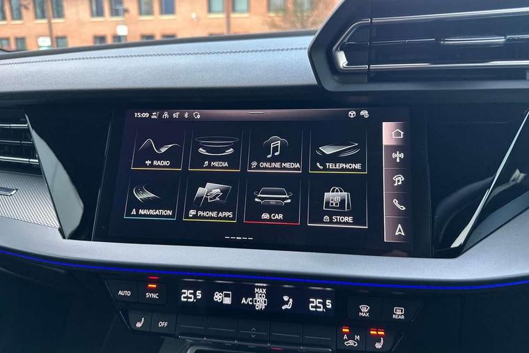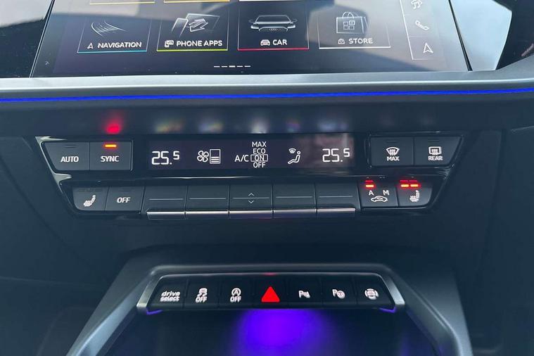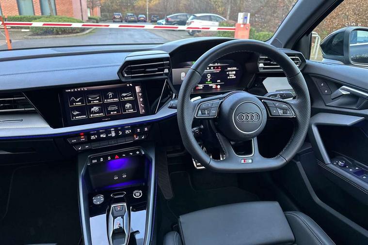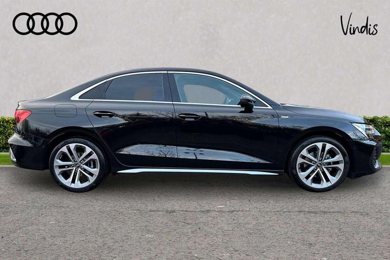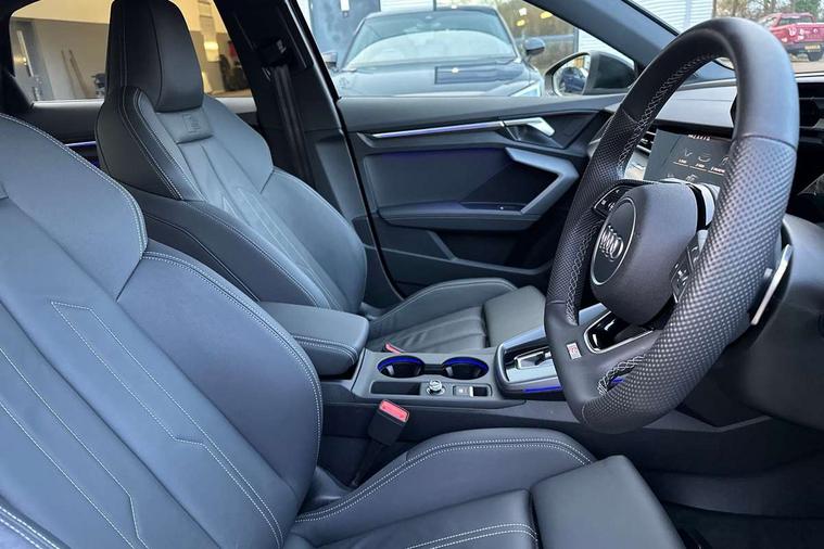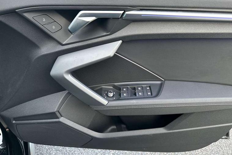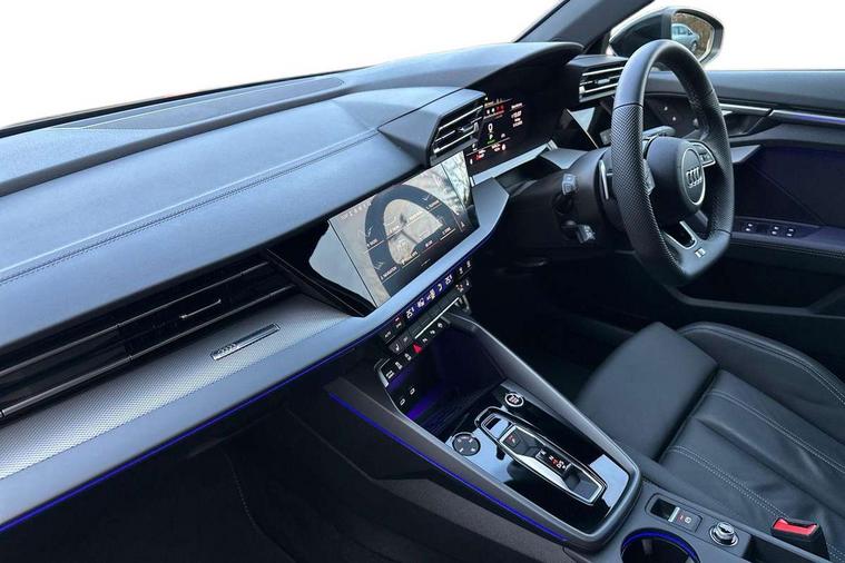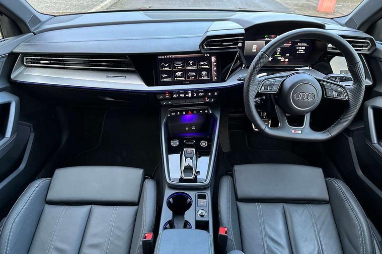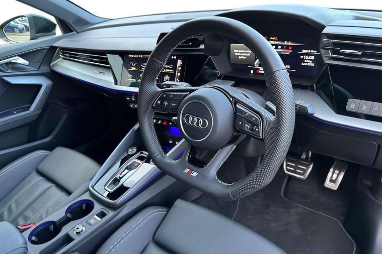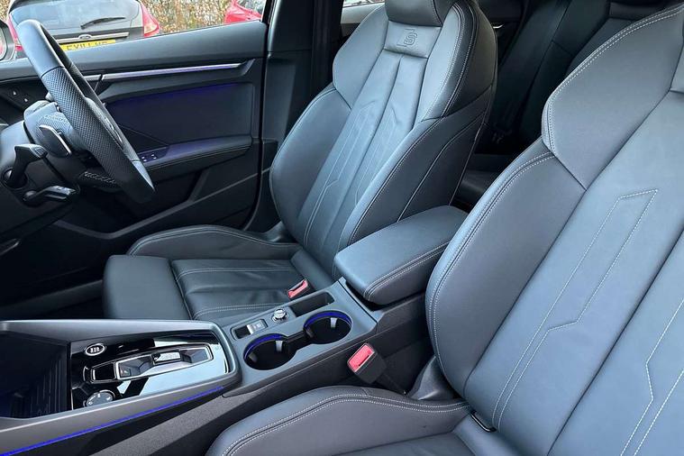 Adjustable speed limiter, Audi drive select, Audi smartphone interface with app store includes wireless Apple carplay, Android auto and Amazon alexa integration, Audi virtual cockpit plus - 12.3" full HD resolution dynamic digital instrument cluster, Automatic start/stop system with recuperation, Bluetooth interface, Camera based traffic sign recognition, Collision avoidance assistant, Cruise control, Distraction and Fatigue warning, e-Call (emergency call), Electromechanical power speed sensitive steering, Lane departure warning system, MMI Navigation Plus with high resolution 10.1" colour touch screen display, Park Assist with parking system Plus, Service indicator, Trip computer, Voice control system with natural language interaction, Sports suspension, Audi Phonebox light with wireless charging, Audi sound system - 10 loudspeakers including centre loudspeaker and subwoofer, DAB Digital radio, USB ports with charging function in the rear, Acoustic glass windscreen, Aluminium window trim, Auto dimming frameless rear view mirror, Body colour exterior mirrors, Chrome exhaust tailpipes, Electrically adjustable/heated/folding/auto dimming door mirrors with integrated LED indications + kerb view function for passenger side, Exterior model badging, Front and rear side air inlets in grained matt black with dark liquid chrome frame, Front electric windows, Front radiator grill in high gloss dark chrome, Heat insulating glass windscreen, Illuminated door sills with aluminium inserts at the front with S logo, LED 3rd brake light, LED daytime running lights, LED headlights with LED rear lights and dynamic rear indicators, Light and rain sensors, Privacy glass - dark tinted rear window, rear door and side windows, Rear boot, Rear diffuser and grill in grained matt black with inlay in dark liquid chrome, Rear electric windows, Rear side wing doors, S line bumpers, Side S line emblems on front wings, Side sill trim in dark liquid chrome, 12V socket and storage compartment in front centre console, 3 seat bench in 2nd row, 3 spoke flat bottomed leather multifunction sport steering wheel with gear shift paddles, 3-zone deluxe automatic air conditioning, 4 way electrically adjustable lumbar support for driver and front passenger, 40/20/40 split folding rear seat bench, Black cloth headlining, Front and rear centre armrest in artificial leather, Front and rear centre armrest in artificial leather with contrasting stitching on armrests and instrument panel, Front and rear headrests, Front/rear floor mats, Heated front seats, Height and reach adjustable steering wheel, Manual boot compartment lid, Manually adjustable front seats, Rear cup holders, S badging on the steering wheel, Seat side bolsters, Single front passenger seat, Stainless steel pedals and front footrest in black, Twin leather upholstery with front sports seats S embossed logo, Aluminium interior elements pack - A3, Multi-coloured LED interior lighting package - A3, 3x3 point rear seat belts, Driver and front passenger airbag with passenger airbag deactivation, Electronic Stabilisation Control (ESC) including ABS, ASR and EDL, First aid kit with warning triangle and 2 safety vests, Front side airbags with head airbags and interaction airbag, Hill hold assist, Pre-sense front with pedestrian and cyclist detection, Seatbelt monitoring, Tyre pressure loss indicator, Anti theft alarm, Anti-theft wheel bolts, Electronically operated child locks, Immobiliser, Remote central locking with safelock, Dash & door Inlay in dark aluminium Spectrum,