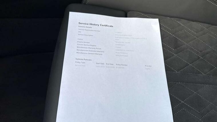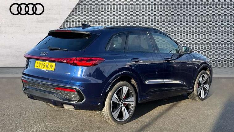 Adaptive cruise control, Advanced driver attention alert, Audi application store, Audi connect emergency call and service, Audi drive select, Audi smartphone interface, Audi virtual cockpit plus with 11.9" OLED colour display, Camera based traffic sign recognition, Fatigue monitor, Front cross traffic intersection assist, Lane change assistant with exit warning system, rear cross traffic alert and rear turn assist, Lane departure warning with emergency assist, MMI 10.9" front passenger touch display, MMI navigation plus with high resolution 14.5" OLED touchscreen colour display, Park assist plus, Parking system plus with 360 display, PAS, Reversing camera, Swerve assist and turn assist, Top view camera, Traffic sign based speed limiter, 2 USB-C ports in both the front and rear, Audi sound system impressive sound with 8 loudspeakers including centre speaker and subwoofer, 6-channel amplifier with a total output of 180 watts, DAB Digital radio, Smartphone compartment with wireless charging, Active digital light signatures - Six additional combinations of active daytime running light signature, Auto dimming rear view mirror, Black roof rails, Coming/leaving home lighting function, Electrically adjustable heated and folding + automatically dimming exterior mirrors, Exhaust tailpipes in dark chrome, Front and rear electric windows, Front door sill trims with aluminium inlays, illuminated with 'S' logo, Full body paint finish, Grill frame, inlay and front air inlets in matt anthracite chrome, Headlight cleaning system, Heated rear window, High beam assist, High gloss window surrounds, LED rear lights pro incl. dynamic rear indicators and illuminated light strip with animated coming and leaving home function, Logo projection light in exterior mirrors, Matrix LED headlights, Memory function for door mirrors, Privacy glass, Projection third brake light for rear window in LED, Radiator grille in phantom black, Rear and side windows with heat insulating glass, Rear honeycombe grille in matt black with inlay in matt anthracite chrome, Rear side wing doors, Rear wash/wipe, S Line badge on the front wings, Towbar preparation, Windscreen with acoustic glazing, 3 rear head restraints, 3 seat bench in 2nd row, 3 spoke leather steering wheel with multi-function buttons with touch control, flattened on top and bottom, with S badging and contrast stitching, 4 way electric lumbar support for driver and front passenger, 40:20:40 split folding rear seat bench with centre armrest and cup holders, Comfort centre armrest, Deluxe 3 zone electronic climate control, Dinamica microfiber/leather upholstery, Electrically adjustable front seats with memory function for driver's side, Front and rear floor mats, Front sport seats with integrated head restraints, Headlining in black cloth, Heated front seats, i-Size child seat mounting on the front passenger side and outer rear seats, i-Size and top tether on the outer rear seats, Interior trim in aluminium look, Luggage compartment lid, electrically opening and closing, Manual steering column adjustment, Single front passenger seat, Softwrap in Dinamica, Stainless steel pedals and footrest, Steering wheel grips in perforated leather and shift paddles, Ambient lighting package plus - Q5, Black styling package plus - Q5, Storage and luggage compartment pack - Q5, 3x3 point rear seatbelts, ABS, Acoustic vehicle alerting system, Convenience key with safelock, Driver and front passenger airbag with passenger airbag deactivation, Electric child safety locks, First aid kit with warning triangle and high visibility vests, Front emergency brake assist, Front side airbags with head airbag system and front interaction airbag, Hill hold assist, Occupant detection in rear seat area, Proactive passenger protection system for front, sides and rear, Red brake calipers, Side airbags in front and rear with head airbag system and front interaction airbag, Tyre pressure loss indicator, Anti theft alarm, Anti-theft wheel bolts, Remote control key with SAFELOCK and keyless go, Accent surfaces and control buttons in gloss black, Black dashboard with contrast stitching, Steel grey seat stitching, Upper and lower interior elements in dinamica microfiber, Tyre repair kit,