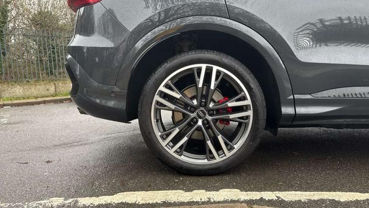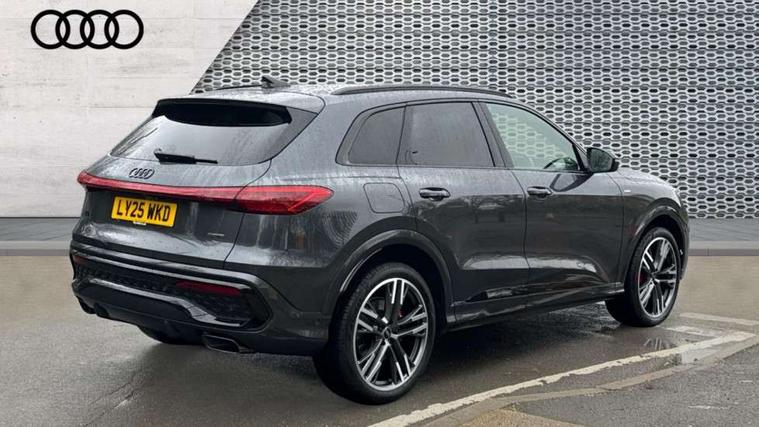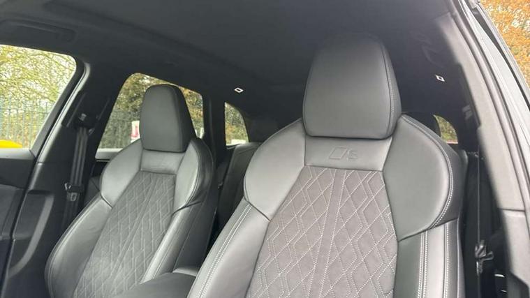 Adaptive cruise control, Advanced driver attention alert, Audi application store, Audi connect emergency call and service, Audi drive select, Audi smartphone interface, Audi virtual cockpit plus with 11.9" OLED colour display, Camera based traffic sign recognition, Fatigue monitor, Front cross traffic intersection assist, Lane change assistant with exit warning system, rear cross traffic alert and rear turn assist, Lane departure warning with emergency assist, MMI 10.9" front passenger touch display, MMI navigation plus with high resolution 14.5" OLED touchscreen colour display, Park assist plus, Parking system plus with 360 display, PAS, Reversing camera, Swerve assist and turn assist, Top view camera, Traffic sign based speed limiter, 2 USB-C ports in both the front and rear, Audi sound system impressive sound with 8 loudspeakers including centre speaker and subwoofer, 6-channel amplifier with a total output of 180 watts, DAB Digital radio, Smartphone compartment with wireless charging, Active digital light signatures - Six additional combinations of active daytime running light signature, Auto dimming rear view mirror, Black roof rails, Coming/leaving home lighting function, Electrically adjustable heated and folding + automatically dimming exterior mirrors, Exhaust tailpipes in dark chrome, Front and rear electric windows, Front door sill trims with aluminium inlays, illuminated with 'S' logo, Full body paint finish, Grill frame, inlay and front air inlets in matt anthracite chrome, Headlight cleaning system, Heated rear window, High beam assist, High gloss window surrounds, LED rear lights pro incl. dynamic rear indicators and illuminated light strip with animated coming and leaving home function, Logo projection light in exterior mirrors, Matrix LED headlights, Memory function for door mirrors, Privacy glass, Projection third brake light for rear window in LED, Radiator grille in phantom black, Rear and side windows with heat insulating glass, Rear honeycombe grille in matt black with inlay in matt anthracite chrome, Rear side wing doors, Rear wash/wipe, S Line badge on the front wings, Towbar preparation, Windscreen with acoustic glazing, 3 rear head restraints, 3 seat bench in 2nd row, 3 spoke leather steering wheel with multi-function buttons with touch control, flattened on top and bottom, with S badging and contrast stitching, 4 way electric lumbar support for driver and front passenger, 40:20:40 split folding rear seat bench with centre armrest and cup holders, Comfort centre armrest, Deluxe 3 zone electronic climate control, Dinamica microfiber/leather upholstery with diamond stitching, Electrically adjustable front seats with memory function for driver's side, Front and rear floor mats, Front sport seats with integrated head restraints, Headlining in black cloth, Heated front seats, i-Size child seat mounting on the front passenger side and outer rear seats, i-Size and top tether on the outer rear seats, Interior trim in aluminium look, Luggage compartment lid, electrically opening and closing, Manual steering column adjustment, S embossed logo on front sport seats, Single front passenger seat, Softwrap in Dinamica, Stainless steel pedals and footrest, Steering wheel grips in perforated leather and shift paddles, Ambient lighting package plus - Q5, Black styling package plus - Q5, Storage and luggage compartment pack - Q5, 3x3 point rear seatbelts, ABS, Acoustic vehicle alerting system, Convenience key with safelock, Driver and front passenger airbag with passenger airbag deactivation, Electric child safety locks, First aid kit with warning triangle and high visibility vests, Front emergency brake assist, Front side airbags with head airbag system and front interaction airbag, Hill hold assist, Occupant detection in rear seat area, Proactive passenger protection system for front, sides and rear, Red brake calipers, Side airbags in front and rear with head airbag system and front interaction airbag, Tyre pressure loss indicator, Anti theft alarm, Anti-theft wheel bolts, Remote control key with SAFELOCK and keyless go, Accent surfaces and control buttons in gloss black, Black dashboard with contrast stitching, Steel grey seat stitching, Upper and lower interior elements in dinamica microfiber, Tyre repair kit,