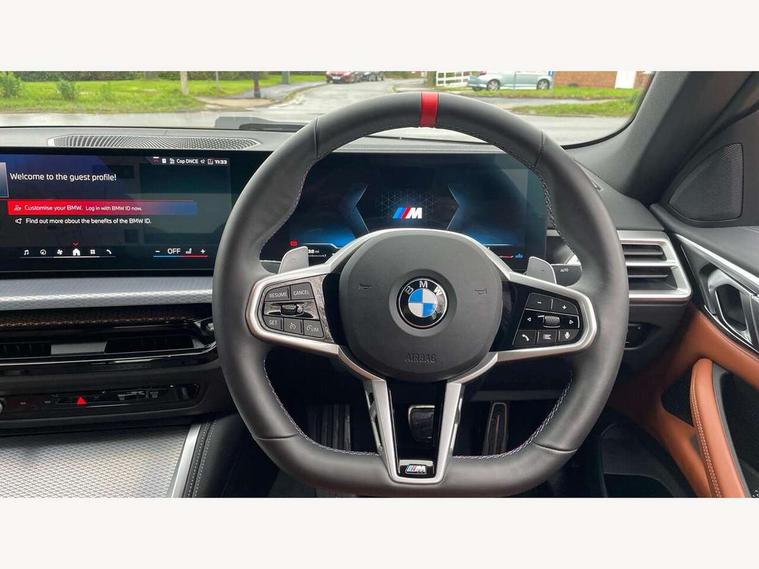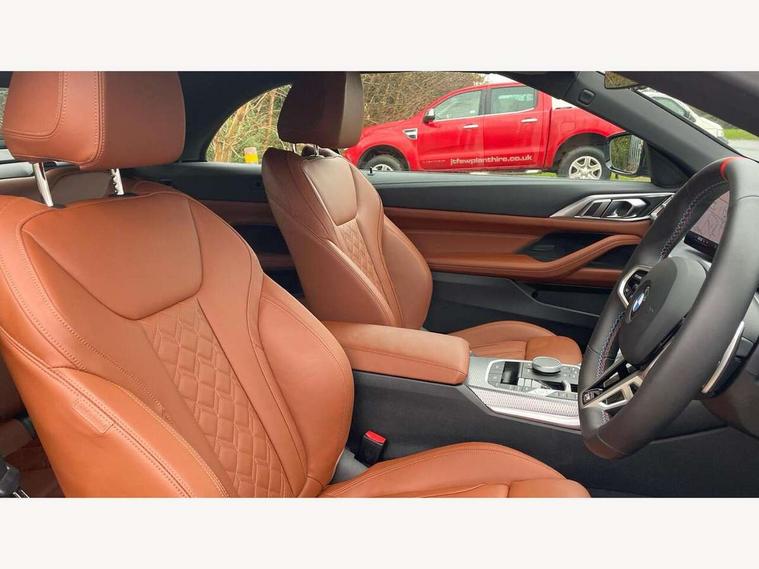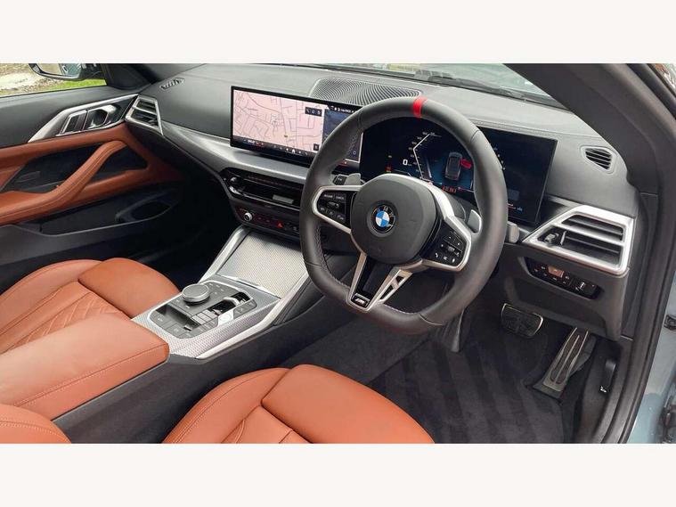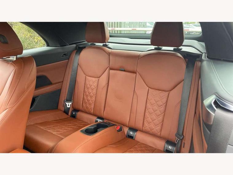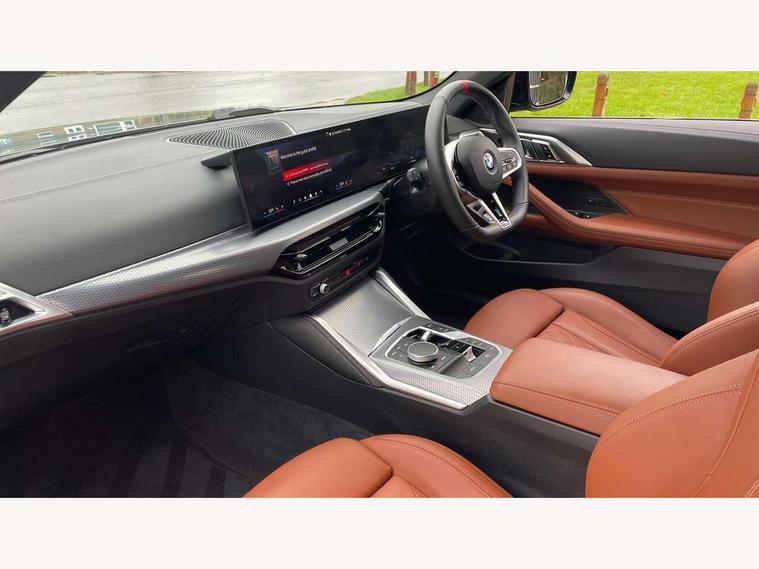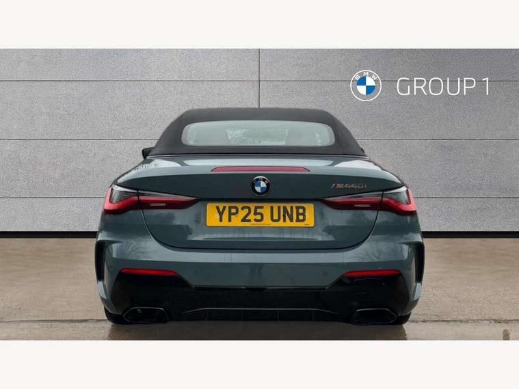 Active guard plus, Attentiveness assist, Auto start-stop, Bluetooth hands free facility with USB audio interface with audio streaming, BMW ConnectedDrive online services, BMW iDrive controller on centre console, BMW service history, BMW Teleservices, Brake pad wear indicator in front and rear, Check Control warning system for monitoring of lights and door/luggage compartment open warning, Condition based service, Electric power steering with Servotronic steering optimised at all speed ranges, Gearshift time display in manual mode, Instrument cluster with speedometer with mph readout, tachometer, fuel gauge and oil temperature gauge, Integrated owners handbook, Language version English, Oil sensor for level and grade, warning by check control system, On board computer - average speed, fuel consumption, outside temp display with acoustic warning, clock/date, service interval, odometer/trip meter, Optimum shift indicator, Run flat indicator, Shifting point display, Variable sport steering, 48V Mild hybrid technology, 8 speed automatic steptronic transmission with gearshift paddles, Active sound design, Balanced 50/50 weight distribution, Double joint spring strut front axle, Drive performance control - ECO PRO, comfort and sport modes, Low centre of gravity, M Sport differential, Petrol Particulate Filter, Sprint mode, Stroke dependent dampers, xDrive system permanent all-wheel drive variable torque distribution, 1x USB type A with data transfer and 1.5 Amp charging function in the centre console, 1x USB type C with 3 Amp charging function in the front centre armrest, DAB tuner, Electronic service booklet, Personal eSim, Acoustic glazing, Automatic headlight beam throw control with load dependent regulating reaction, dynamic compensation of braking dive and acceleration squat, Automatic windscreen wipers and automatic headlight, Automatically dimming electrochromatic rear view mirror, BMW emblem on engine compartment lid and tailgate, Body colour fuel filler flap, Body colour roof fin, Bonnet and tailgate badge, Brushed aluminium inserts in the front door sill finishers with BMW designation, Design of radiator grille ring in Black high-gloss with horizontal look and an M badge on the left side, Door sill strips, Dynamic brake lights, Electric windows - front and rear, with open/close fingertip control, anti trap facility and comfort closing function all round, Exterior mirrors - electrically folding with anti-dazzle, Fading support, Follow me home headlights, Free form tailpipe finisher and side frame trim strip in high gloss black, Front and rear bumper system, Front apron plastic in body colour, Green tinted heat protection glazing, High gloss shadow line exterior trim, Illuminated bow type door handles in body colour drivers side with door lock, Interior rear view electrochromatic mirror with automatic anti dazzle function, LED 3rd brake light, LED daytime running lights, LED front fog lights, LED front indicators, Licence plate panel integrated into front bumper and tailgate, Lightweight engineering, M designation on front side panels, left and right, Model and M badges in pearl chrome, One piece front bumper cover including towing eye cover in body colour, Rear boot, Reversing light, Two part LED tailights in L-shape with components in smoked glass, brake light, LED turn indicator and rear fog light, Visible exhaust tailpipe finisher, Visible VIN plate, Welcome lights in interior and door handle area, Widened track and increased camber values for max transverse dynamics, agility and steering precision, Wind deflector, Window recess cover black high gloss, Windscreen wipers with integrated heated washing jets, 12V power socket in front centre console, 2 2nd row folding seats, 2 front cupholder in centre console with clamping elements and matt black inlay, 2 Rear seat headrests, 2 zone automatic air conditioning, 2nd row centre armrest with built-in cupholders, 3 spoke flat bottom M sport leather multifunction steering wheel, 4 pieces lashing eyelets in luggage compartment, Anthracite headlining, Armrest integrated in front and rear door trim + front centre console armrest, Battery in luggage compartment, BMW ID, Driver seat backrest width adjustment, Electric memory seats - electrically adjustable seats with drivers seat memory, exterior mirrors memory and automatic parking function, Extended storage - Luggage compartment partition net on left side trim panel, Bag hook on both sides of the luggage compartment, Front and rear door pockets, Front and rear reading lights, Front footwell lights, Front sport seats, Heated driver and front passenger seats, Height adjustable front headrests, Height adjustable mechanically and infinitely variable steering column, Illuminated armrest storage compartment, Illuminated glove compartment with separate small compartment, Luggage compartment light, Make-up mirror lights, Single front passenger seat, Storage compartment in rear centre console, Sunvisors with illuminated vanity mirrors and ticket pocket, Toolkit located in luggage compartment, Velour front floor mats, Ambient lighting pack - 4 Series, Connected professional package - 4 Series, M sport exterior styling pack - 4 Series M440i, 2 x 3-point rear seatbelts, Battery safety cut-off, BMW emergency call, Brake energy regeneration, Braking pre-tensioning, Child seat ISOFIX attachment for the two outer rear seats, Coasting in idle in ECO PRO mode, Cornering brake control (CBC), Crash sensor activating of airbags, Unlocking doors, hazard warning lights, fuel cut off, interior lighting+activation of safety battery terminal clamp, Driver and front passenger side airbags, integrated in the door side seat backrest bolsters for all seat variants, Driver/Front Passenger airbags, Dry braking, Dynamic brake control, Dynamic stability control + (DSC+) - Anti-lock Braking System (ABS) with brake assist and cornering brake control + Automatic Stability Control (ASC), Dynamic Traction Control - DTC, Electric pa