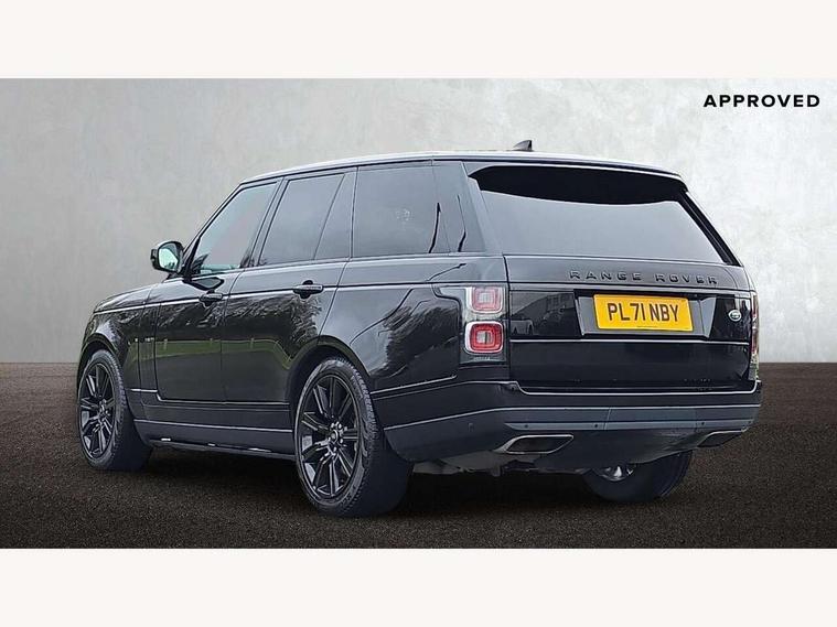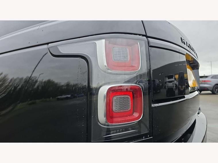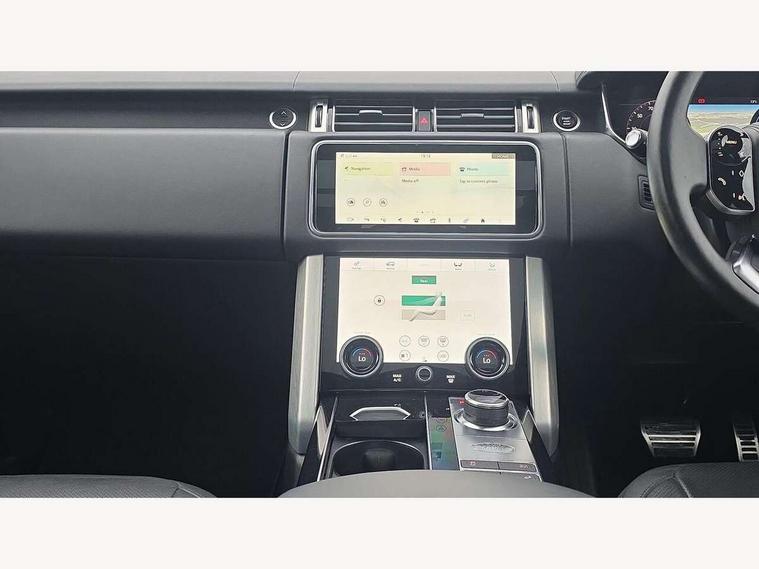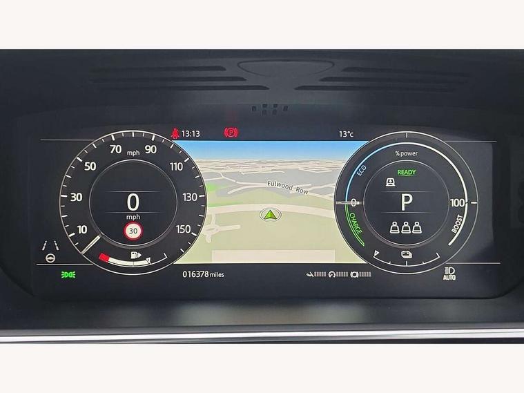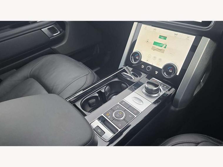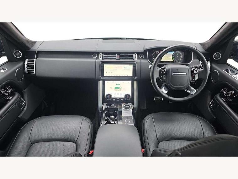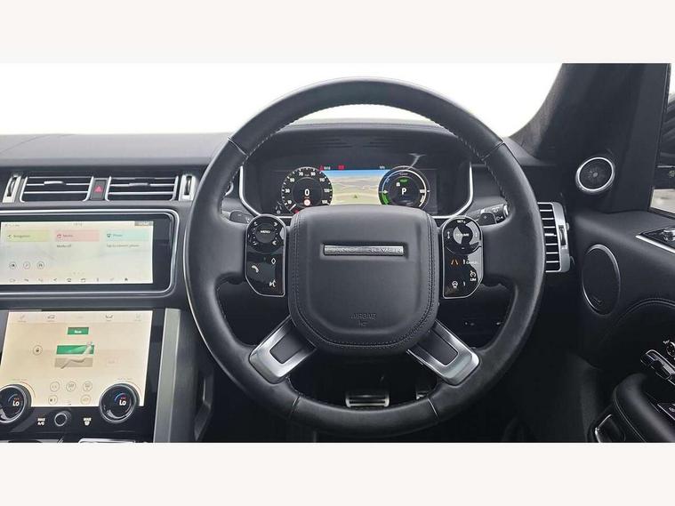 Android Auto, Apple car play, Bluetooth mobile phone connection, Dynamic route guidance, Electric power assisted steering (EPAS), Interactive Driver display instrument cluster, Lane departure warning system, Navigation pro system with 10" touch screen, app interface and media storage, Powered gesture tailgate/boot lid, Push button starter, Rear camera wash, Rotary shifter, Service interval indicator, Touch pro duo system, Trip computer, Voice control system, 8 speed automatic transmission, Adaptive dynamics, All Wheel Drive (AWD), Automatic access height, Electronic air suspension, Terrain Response 2 Auto, Twin speed transfer box, Digital Audio Broadcast radio-DAB, Digital TV, InControl app, Meridian 825W surround sound system, USB socket, Acoustic windscreen, Auto dimming interior rear view mirror, Auto self levelling headlights, Automatic headlights, Body coloured bumpers, Centre high mounted stop light, Door/quarter lights in toughened plate glass, Electric windows with one touch open/close and anti trap, Electrical towing preparation, Follow me home headlights, Front and rear recovery eyes, Front fog lights, Headlamp power wash, Heated rear window, Heated windscreen includes heated washer jets, Illuminated metal treadplates with brand name script, Integrated twin tailpipes, LED rear lamps, LED tail lights, No badges, P400e badge, Power fold, auto-dimming, heated door mirrors with memory and approach lights, Power front/rear windows with global close, Privacy glass, Rain sensing windscreen wipers, Rear fog lights, Rear wash/wipe, Side repeater indicators in mirror, Sliding Panoramic roof includes gesture sunblind and auto sunblind, Trailer stability assist, 12V power point in luggage area, 12V power sockets, 3 rear headrests, Black gearshift paddles, Bright metal pedals, Carpet mats, Centre console with storage and armrest, Configurable Ambient interior lighting, Customer configurable single point entry, Driver and passenger front seat armrests, Easy boot loading, Electrically adjustable steering column, Folding rear seats, Front and rear cupholders, Front and rear grab handles, Front headrests, Front seat back map pockets, Heated steering wheel, Loadspace cover, Loadspace light, Lockable glovebox, Luggage compartment lighting, Luggage tie down in loadspace, Perforated Windsor leather upholstery, Rear centre armrest, Rear ISOFIX, Soft close doors, Suede cloth headlining, Through load facility, Twin blade sunvisors with Illuminated vanity mirrors, Black exterior pack - Range Rover, Smartphone pack - Range Rover, 3 rear 3 point seatbelts, Anti-lock braking system (ABS), Auto lock system when vehicle in motion, Cornering brake control (CBC), Curtain airbags, Customer configurable autolock, Driver/front passenger head+thorax airbag, Drivers knee airbag, DSC - Dynamic Stability Control, Electronic brake force distribution, Electronic parking brake, Electronic traction control, Emergency braking, ESP, Front airbags with passenger seat occupant detector, Front seatbelt pretensioners with force limiters, Front side airbags, Height adjustable front seatbelts, Hill descent control, Hill launch assist, Low traction launch, Power operated child locks, Roll stability control, Tyre pressure monitoring system (TPMS), Immobiliser, Intrusion sensor and alarm, Keyless entry, Locking wheel nuts, Remote central locking, 21" 9 Spoke gloss black finish alloy wheels - Style 9001, Tyre repair system,
