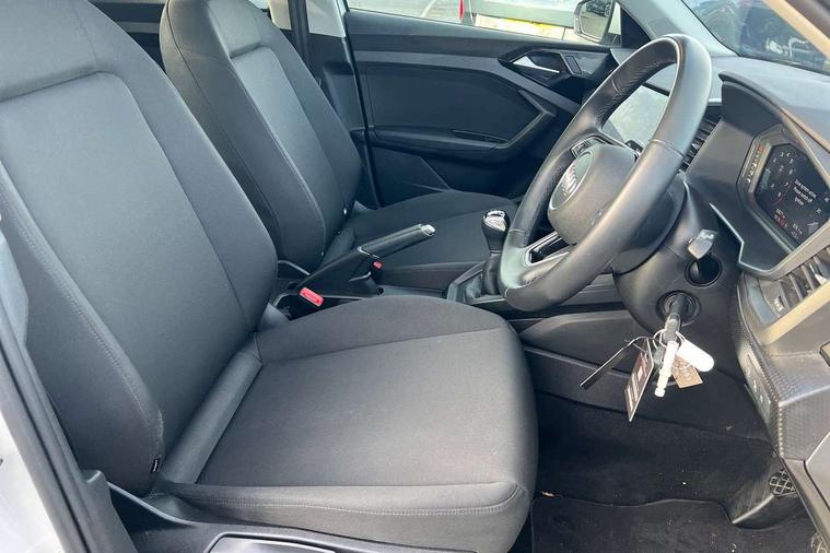 10.25" Digital instrument cluster display classis style instrument dials + speed, odometer, time, outside temperature, telephone menu + fuel level warning, Audi smartphone interface with connect compatible smartphone via USB directly MMI display + Nav, music, third party apps controlled via MMI controller, Automatic start/stop system, Bluetooth interface, Driver's information system, Electromechanical power steering, Emergency e-call, Emergency services call system, Lane departure warning system, Service interval indicator, Speed limiter, Voice control system, Washer fluid level indicator, Dynamic suspension, 1 x SDXC card reader, 2 x USB type C connection points, 6 passive loudspeakers, DAB Digital radio, MMI radio plus with 8.8" colour MMI display screen and MMI touch, Auto dimming rear view mirror, Body coloured bumpers, Body coloured door mirrors, Electric front and rear windows, Electrically adjustable, heated, folding door mirrors with integrated LED side indicator, Front side air inlets with front spoiler lip and rear diffuser in matt black grained, Heat insulating glass windscreen and side windows, Heated rear windscreen, High level LED brake light, LED headlights with LED rear lights + dynamic rear indicators + headlight adjustment and high beam, turning light + LED daytime running lights, Radiator grille in matt black, Rain and light sensors, Rear fog lights, Rear side wing doors, Rear wing door, Rear wiper, 12V socket in centre console with two cup holders, 3 rear seats with headrests, 3 seat bench in 2nd row, 3 spoke leather multifunction plus steering wheel, 40:60 Split folding rear seat or folded fully, Air vents, door handle recesses and centre console in black, Delta cloth upholstery, Driver and passenger seat with manual height adjust with forward and backwards adjustment, Front head restraints, Front passenger seat, Front/rear floor mats, Height and reach adjustable steering wheel, ISOFIX child seat mounting for front passenger and outer rear seats including top tether attachment point of outer rear seats, Leather gear knob with aluminium trim, Leatherette handbrake grip, Luggage compartment light with front and rear reading lights, Manual air conditioning, Titanium grey cloth headlining, Luggage compartment pack - A1, 3x3 point rear seatbelts, Audi pre-sense front with pedestrain and cyclist recognition, Brake assist function, Driver and front passenger airbag with front side and head airbags, Electronic Stability Control including ABS, EBD, ASR and EDL, Front passenger airbag deactivation switch, Hill hold assist, Manual rear child locks, Seatbelt height adjustment for front seats, Seatbelt monitoring, Tyre pressure warning light, Warning triangle and first aid kit, Anti theft alarm, Anti theft wheel bolts and loose wheel warning, Immobiliser, Remote central locking with 2 foldaway keys, Black inlays polygon structure, 15" 5 arm design alloy wheels,
