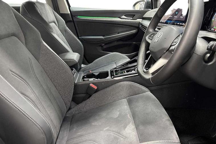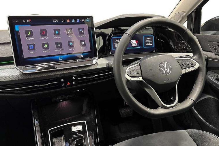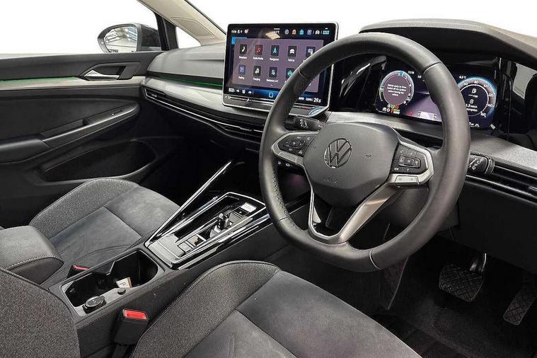 Activated carbon canister, Adaptive cruise control (ACC), Advanced driver attention and drowsiness monitor, Dynamic road sign display, E-Sim card for online connectivity, eCall emergency call system, Multi-color Digital cockpit pro, selection of different info profile possible, Multifunction front facing camera for distance control, Navigation system, Oncoming vehicle braking when turning including swerve support, Side assist blind spot lane change system, rear traffic alert and exit warning system, Speed limiter, Speedo, rev counter, electronic odometer, trip, service interval display, exterior temperature and fuel gauge, Traffic jam assist, Voice enhancer and voice control, Warning signal and warning light for front and rear seatbelts not fastened, We connect plus preparation, We connect preparation, Wireless app connect, Charging cable Mode 2 Type 2 (10A), Charging cable mode 3, type 2 32 A, Hybrid propulsion system, Start-stop system with battery regeneration (recuperation - energy recovery during braking), XDS electronic differential lock for improved traction and handling, 2 USB C ports in front, 2 USB charging sockets on the centre console in the rear charging capacity upto 45W, 6 Speakers - 4 in front and 2 in rear with central speaker, Digital radio reception (DAB), Diversity antenna for FM reception, Gaming platform via car app, Infotainment system with 12.9" display, Mobile phone interface with inductive charging feature, 3rd brake light, Automatic headlamp activation with Coming home and Leaving home feature, Body colour bumpers, Body colour door handles, Body colour door mirrors, Chrome trimmed front air intake surrounds, Chrome trims on the side window bottom, Exterior mirrors convex on the left and aspherical on the right, Front and rear electric windows, Heat insulating windshield made of laminated glass, LED separate daytime running light, Rear exhaust tailpipe, Rear fog light on one side and reversing lights on both sides, Rear side wing doors, Rear windscreen washer and wiper with interval delay, Remote electrically foldable door mirrors, puddle lights and reverse activated passenger's door mirror, Welcome light with surround lighting, 12V socket in front centre console, 12V socket in luggage compartment, 3 rear head restraints, 3 seat bench in 2nd row, Air care climatronic 3 Zone automatic climate control with rear air conditioning control panel, Ambient lighting with 30 colour including LED light unit in front footwell with selectable light colour, Chrome plated radiator grille inserts, air vent surrounds and light switch surrounds, Front + rear black carpet mats, Front centre armrest, ISOFIX anchors for child seats on outer rear bench seats and on front passanger seat compatible for i-Size, Luggage compartment lighting, Plastic gear knob, Rear cupholder and loadthough, Single front passenger seat, Soul black instrument panel, Split folding backrest with centre armrest and unsplit rear seat bench, Standard pedal cluster, Storm grey roof lining, Sun visors with illuminated vanity mirrors, Driver assistance pack - Golf Estate/Hatchback Auto, 3 point height adj front seatbelts + pretensioners, 3 rear three point seatbelts, ABS, Autonomous emergency braking front assist with pedestrian and cyclist monitoring, Child locks on rear doors, Driver and front passenger airbag with front passenger airbag deactivation, Electronic parking brake with auto hold, ESC (Electronic Stability Control), Extended pedestrian protection measures, Hill start assist, Rear disc brakes, Two tone horn, Tyre pressure loss indicator, Volkswagen roadside assistance, Anti theft wheel bolts, Preparation for alcohol interlock, New brushed dark metal decorative inserts for dashboard and front door panels, Tool kit for tyre mobility set, Tyre mobility kit Includes 12V compressor and tyre sealant,